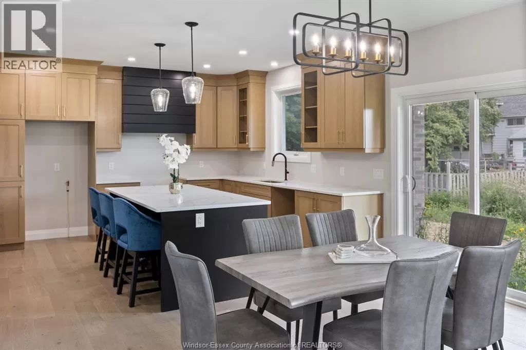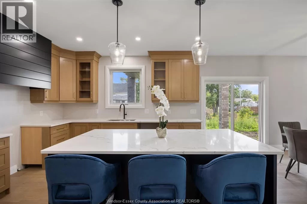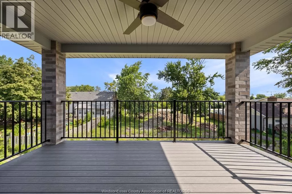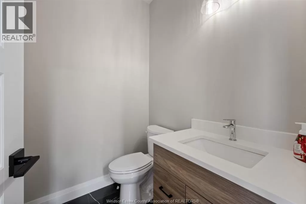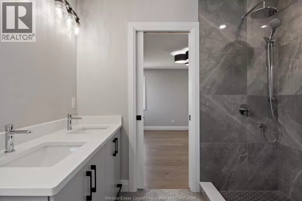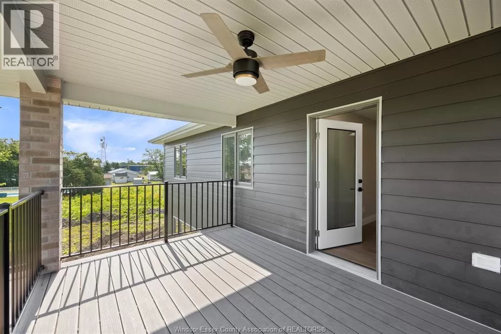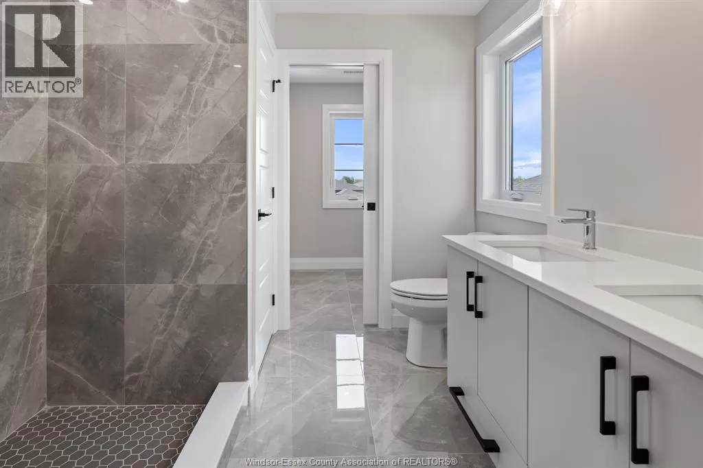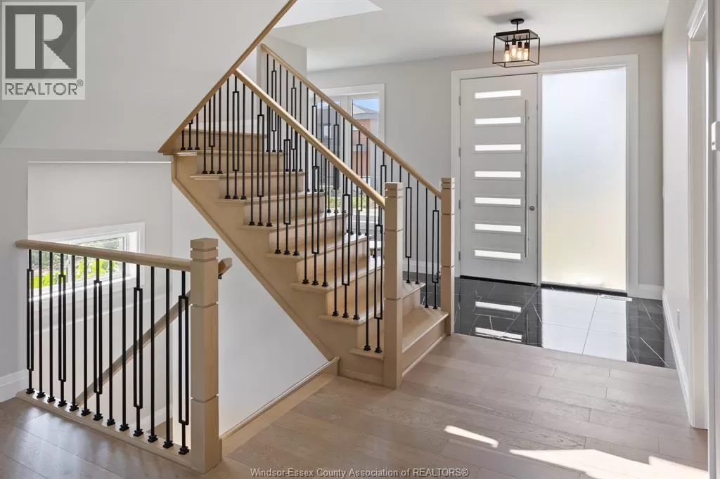 MAIDSTONE AVE. TO PETERS STREET (NEXT TO CANADIAN TIRE) TO BEAR STREET Builderâs model home by Bart DiGiovanni Construction in Essex Town Centre, ready to move in! This stunning 2-story home features 4 bedrooms, 2.5 baths, and a striking stone, brick, and hardboard façade. The main floor boasts 9â ceilings, a spacious great room with a gas fireplace, and an open-concept kitchen with ceiling-height cabinets, quartz countertops, an island, a walk-in butlerâs pantry and access to a covered patio. A mudroom is conveniently located at the daily entry. Upstairs, the hardwood staircase leads to 4 large bedrooms, including a primary suite with a walk-in closet, a covered balcony, and a luxurious ensuite with double sinks and a custom glass shower. The second floor also features a laundry room. Additional highlights include an insulated double garage with a side exit, a concrete driveway, and full basement. *BONUS Kitchen Backsplash and Composite Deck included plus 7-year Tarion warranty. (id:27476)