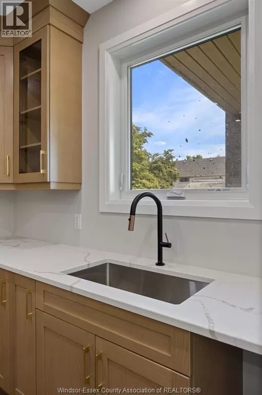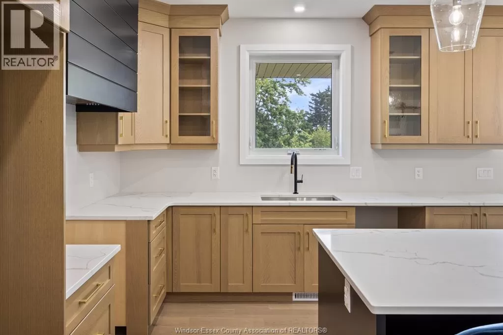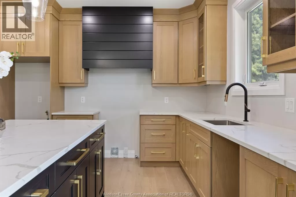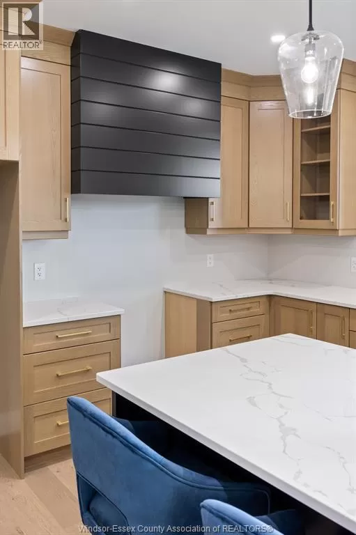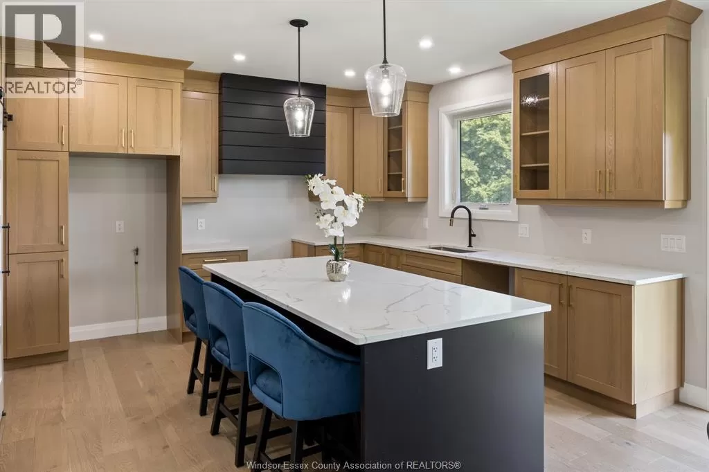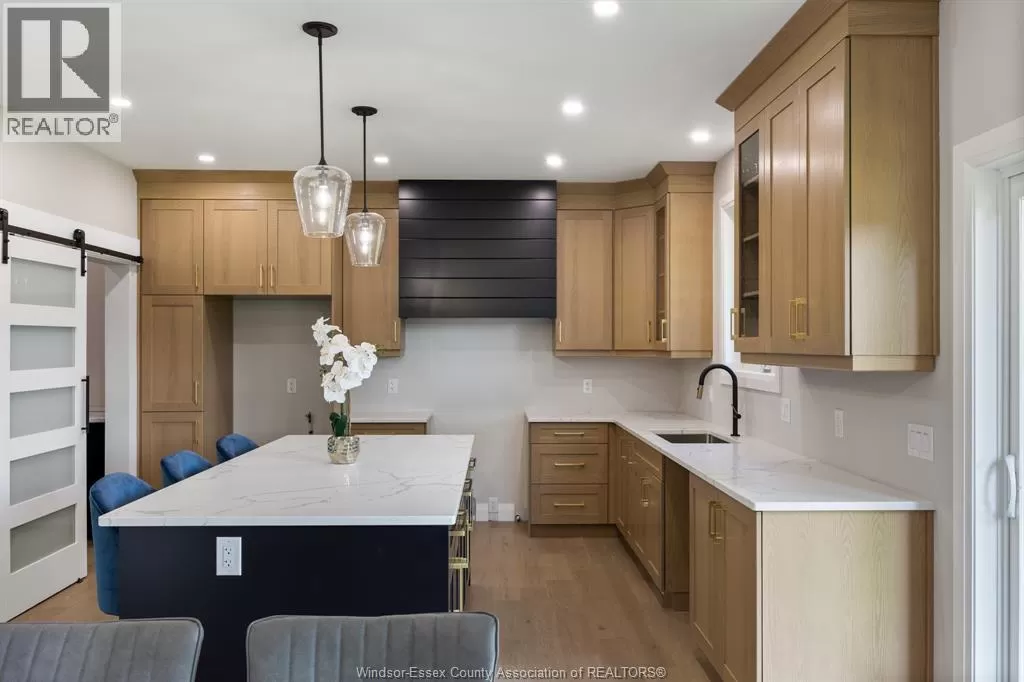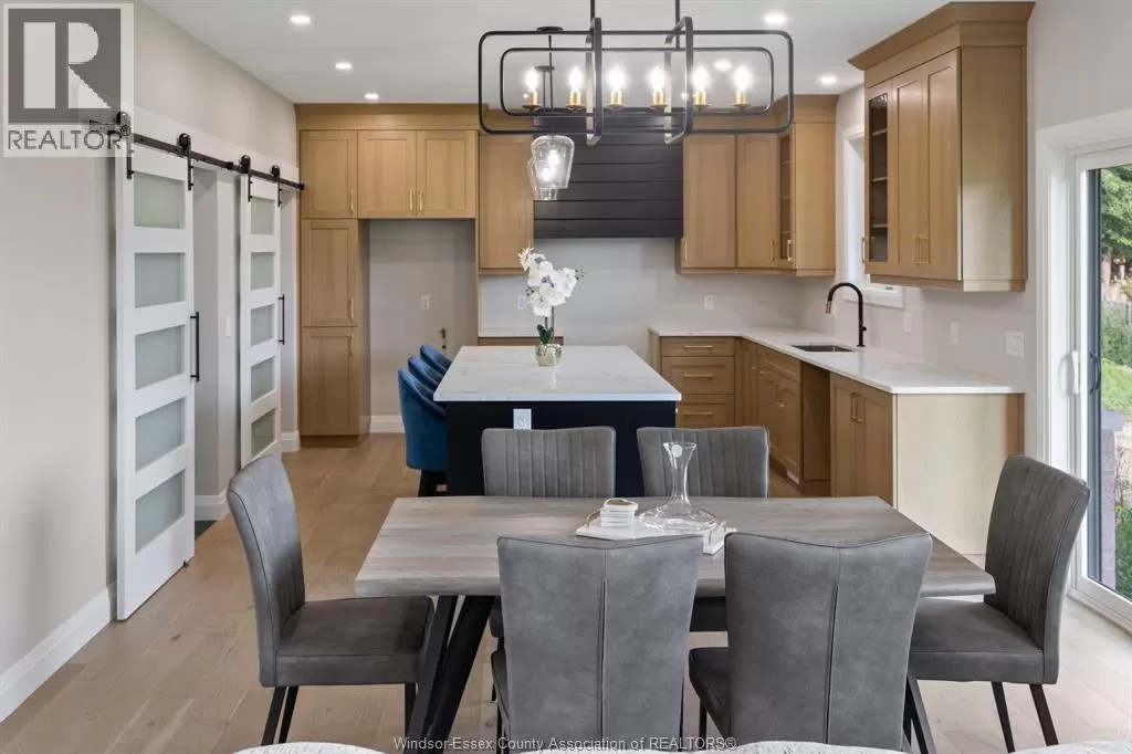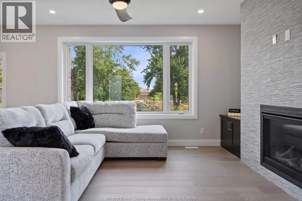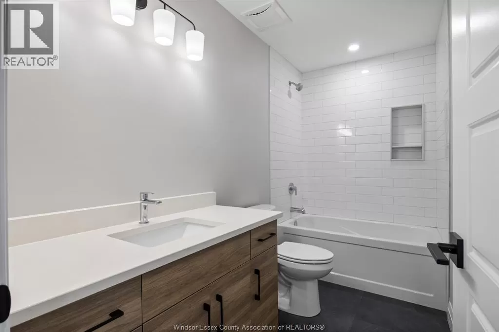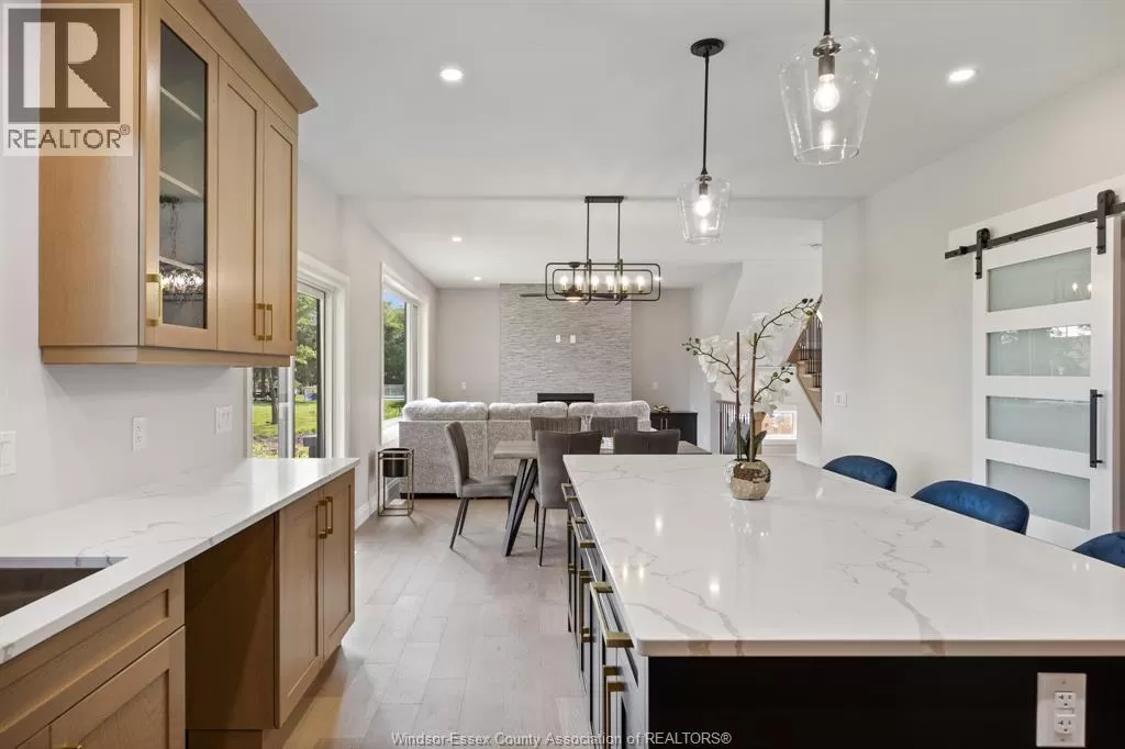 MAIDSTONE AVE. TO PETERS STREET (NEXT TO CANADIAN TIRE) TO BEAR STREET Builderâs model home by Bart DiGiovanni Construction in Essex Town Centre, ready to move in! This stunning 2-story home features 4 bedrooms, 2.5 baths, and a striking stone, brick, and hardboard façade. The main floor boasts 9â ceilings, a spacious great room with a gas fireplace, and an open-concept kitchen with ceiling-height cabinets, quartz countertops, an island, a walk-in butlerâs pantry and access to a covered patio. A mudroom is conveniently located at the daily entry. Upstairs, the hardwood staircase leads to 4 large bedrooms, including a primary suite with a walk-in closet, a covered balcony, and a luxurious ensuite with double sinks and a custom glass shower. The second floor also features a laundry room. Additional highlights include an insulated double garage with a side exit, a concrete driveway, and full basement. *BONUS Kitchen Backsplash and Composite Deck included plus 7-year Tarion warranty. (id:27476)