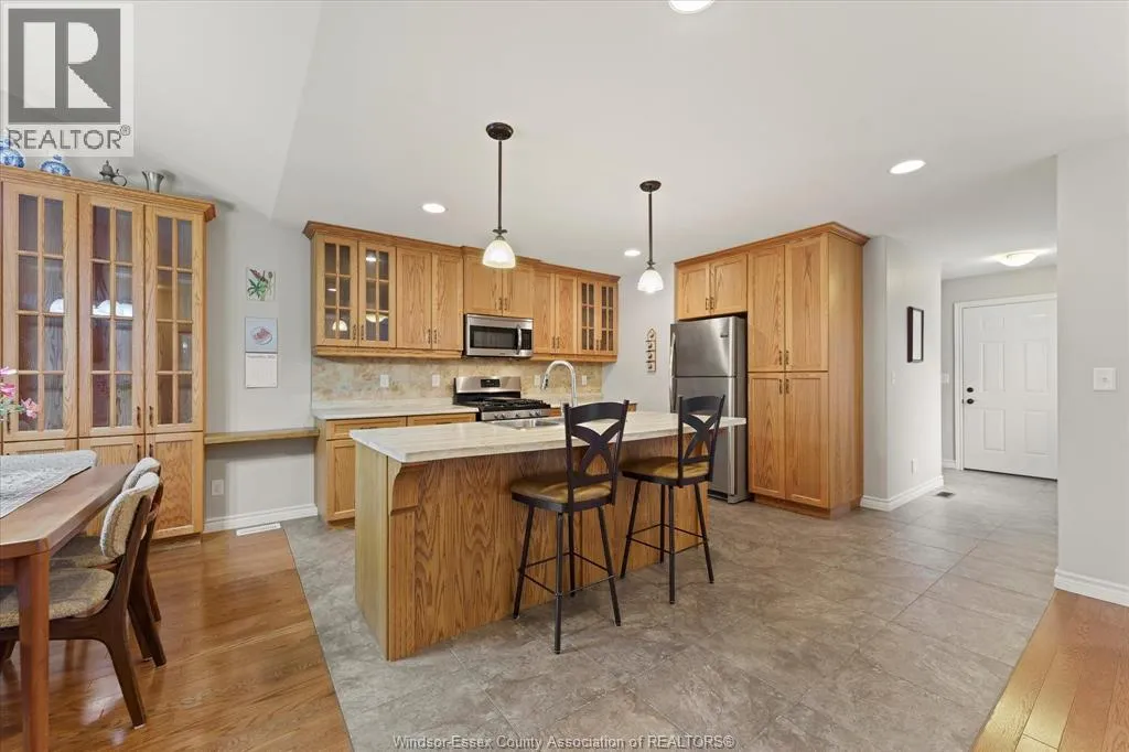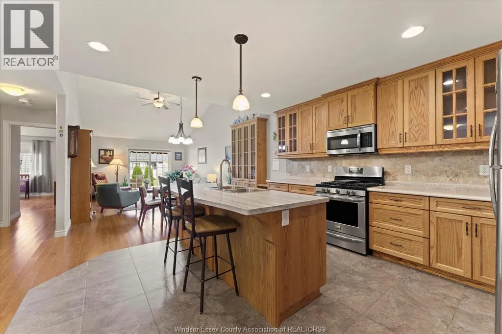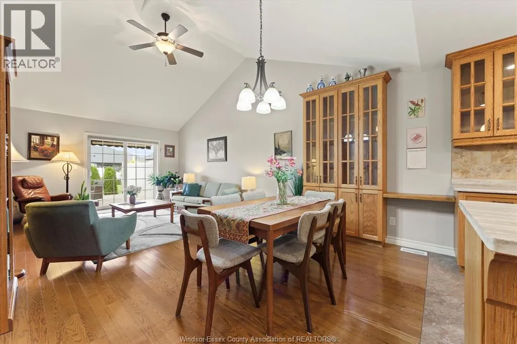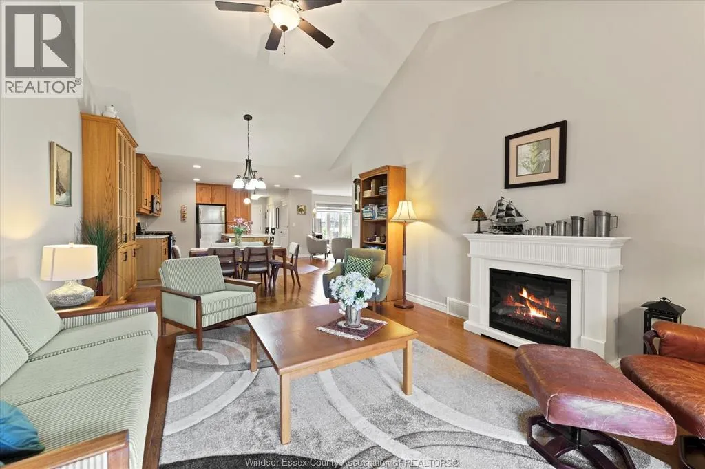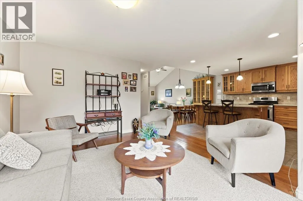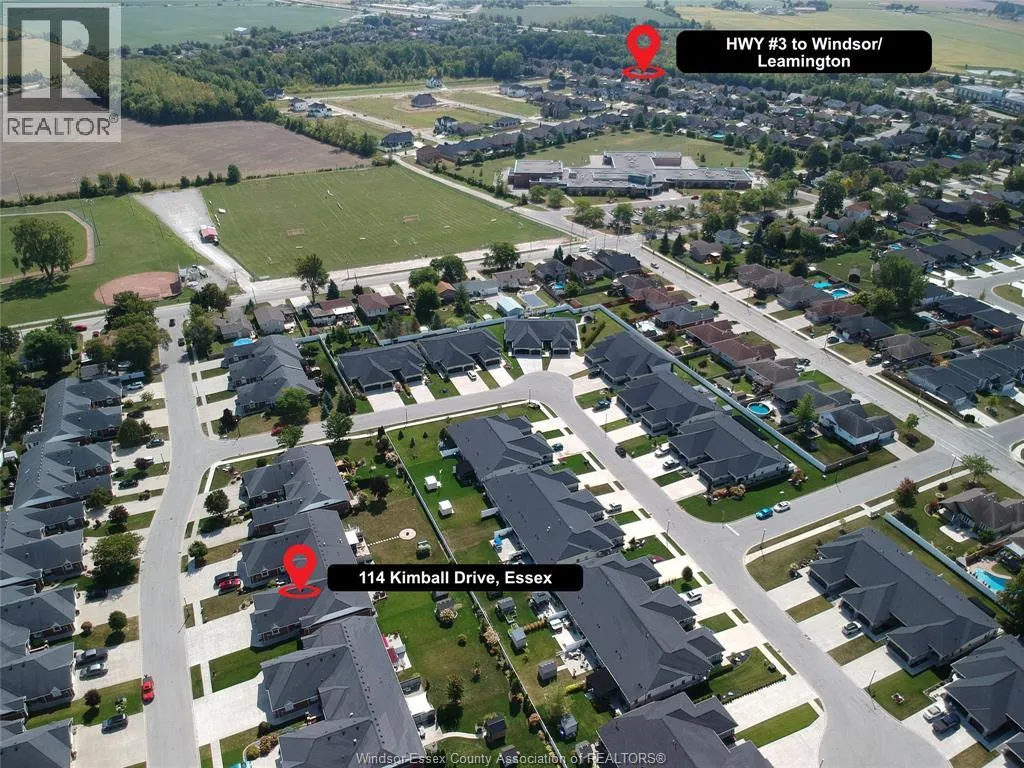 COUNTY RD 34 (TALBOT ST S) TO FAIRVIEW AVE W, THEN RIGHT ON KIMBALL DRIVE Wonderful location in Kimball Estates, walking distance to Parks, Sports Complex, and Beautiful Downtown Essex! This open concept ranch townhome has loads of oak kitchen cabinets w/breakfast island & separate eating area. There's also both a living room & family room with electric fireplace & vaulted ceiling, on the main floor which is great for family gatherings & entertaining. Covered rear deck with power awning, plus a patio area with spacious rear yard. Lower level has a recreation/games room w/computer area or sitting area to read a book. Plus another large bedroom and room to finish yet another. Lots of storage area in the basement as well. Finished garage, cement driveway & walks located on quiet street. Buyer is to acknowledge the $50/month Association Fee for roof & eaves. (id:27476)