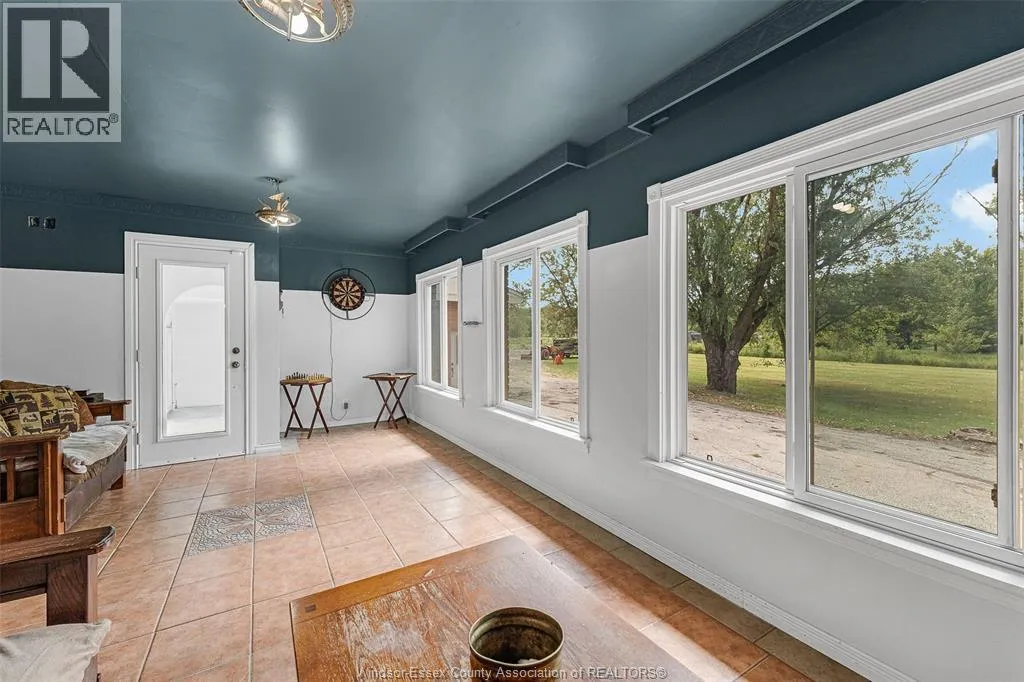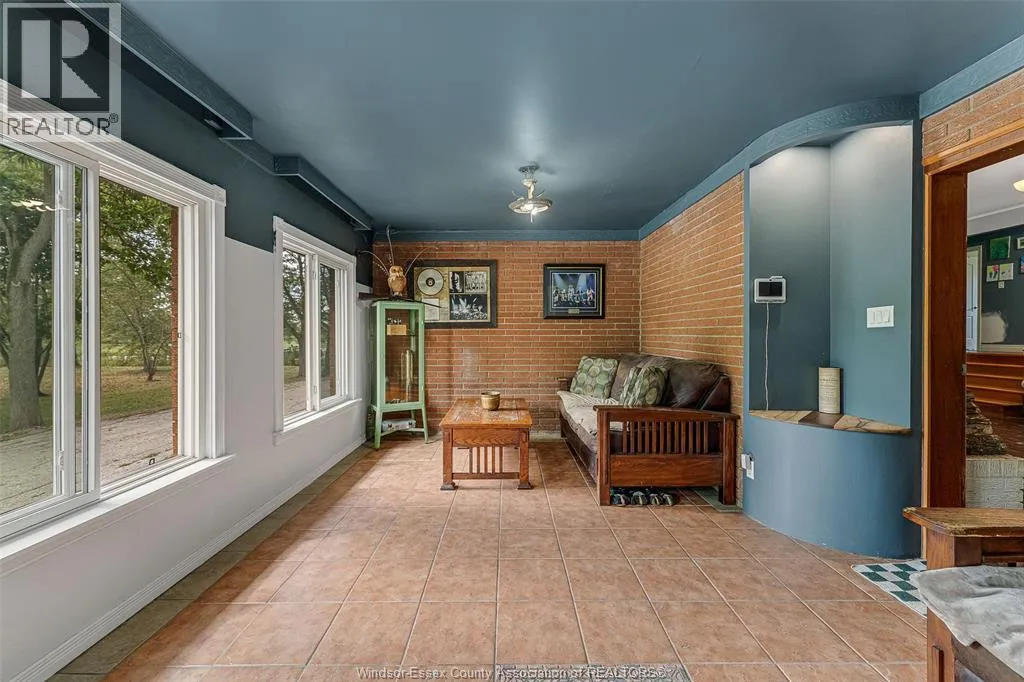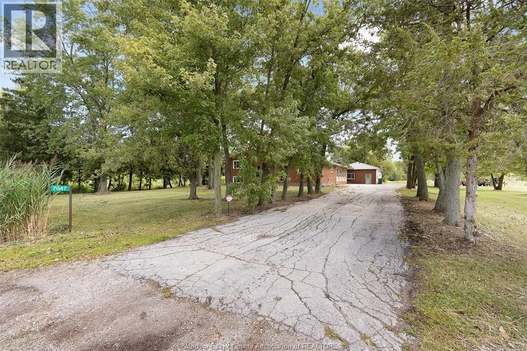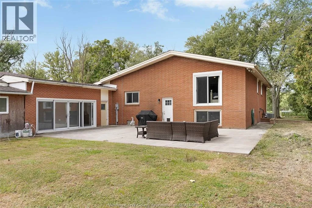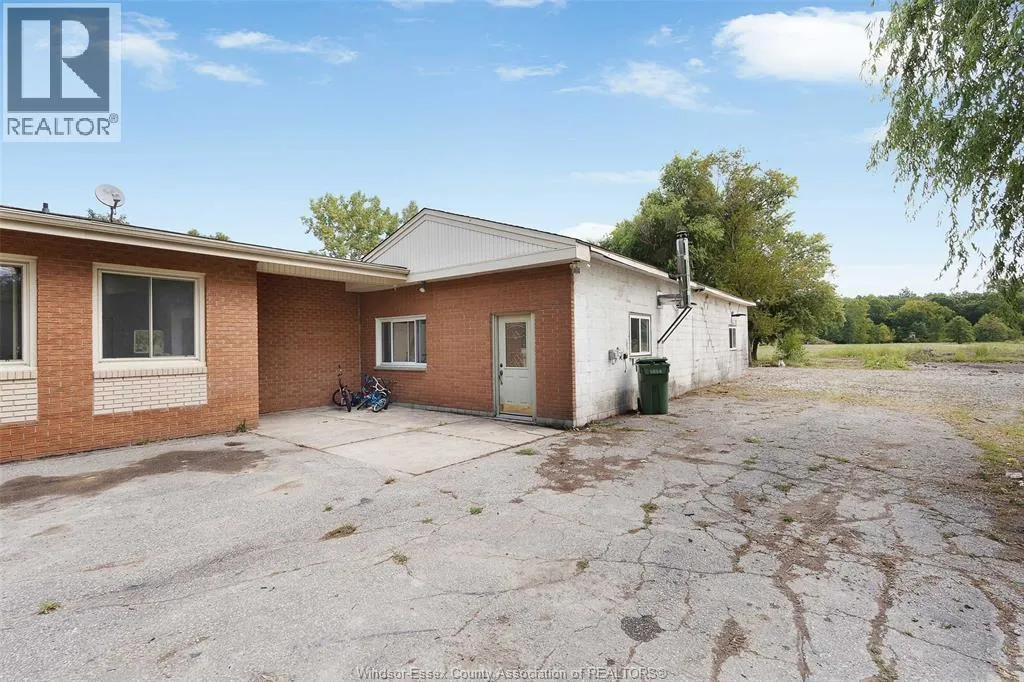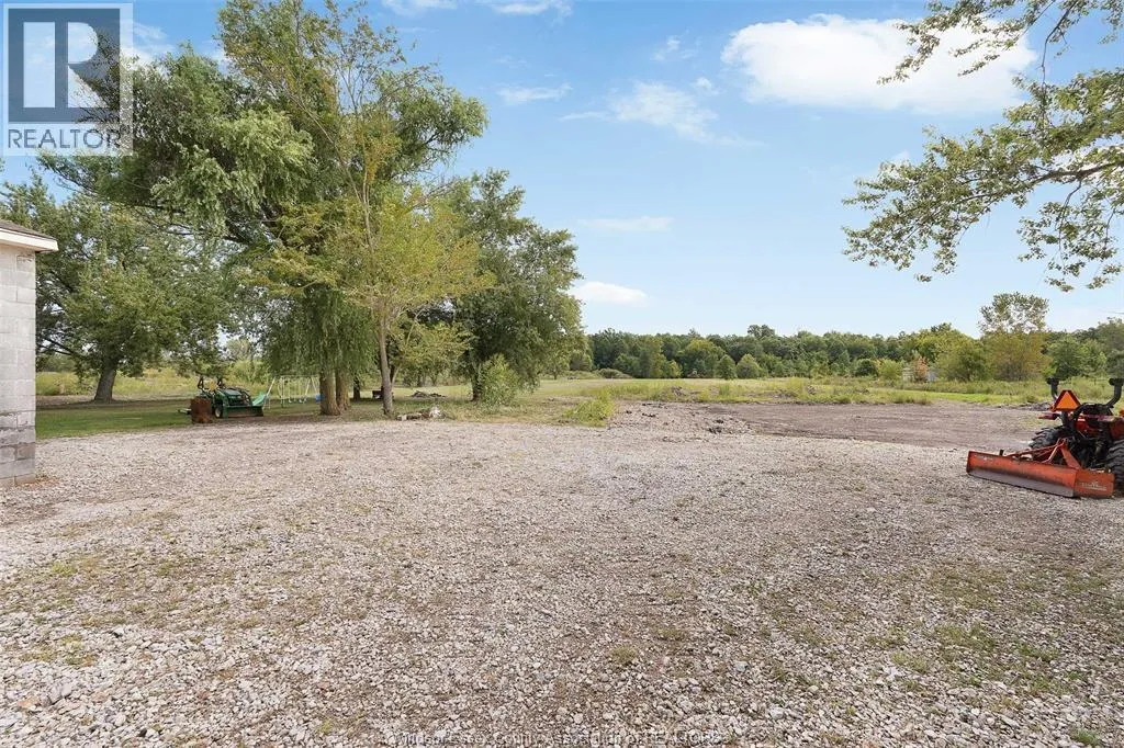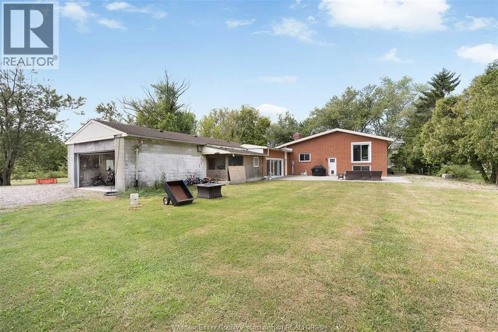 CTY RD 18 to Giardini, north to 7047 Giardini side rd Country living in a great central location with this oversized full brick spilt level, tons of potential here! A unique 4-level on 5.069 acres minutes to Harrow, Essex & McGregor also 20 minutes to Windsor. Approx. 2500 SQFT on 2 levels plus 200 SQFT breezeway mud room with 16 FT patio doors leading to large concrete patio & walk through to a 55 FT x 22 FT Block Garage with Double auto doors. TONS OF POTENTIAL FOR MANCAVE / WORKSHOP with additional 150 SQFT side structure with rough-in for bathroom connected to Arobic septic system currently operating by gravity flow only (service to be completed prior to close). Large rear gravel parking area off of the garage. High 3rd level with approx. 720 SQFT roughed in for 2 bedroom apartment w/ private grade entrance. Huge living / dining room w/ natural fireplace and 10 FT ceilings. Covered front porch, hardwired (6) camera system, 200 Amp. Updates include reinforcement and outside waterproofing of several basement wall areas (2022), sections of the south garage walls underpinned (2000), Furnace , A/C & On demand Hot Water (2021), roofs (2015), most windows & doors (2017). Spacious master bedroom w/ sliding patio doors to rear. (id:27476)