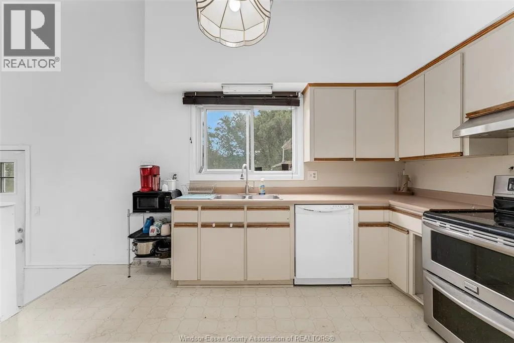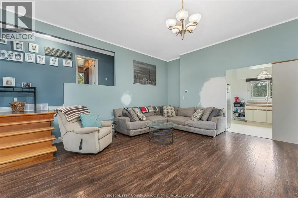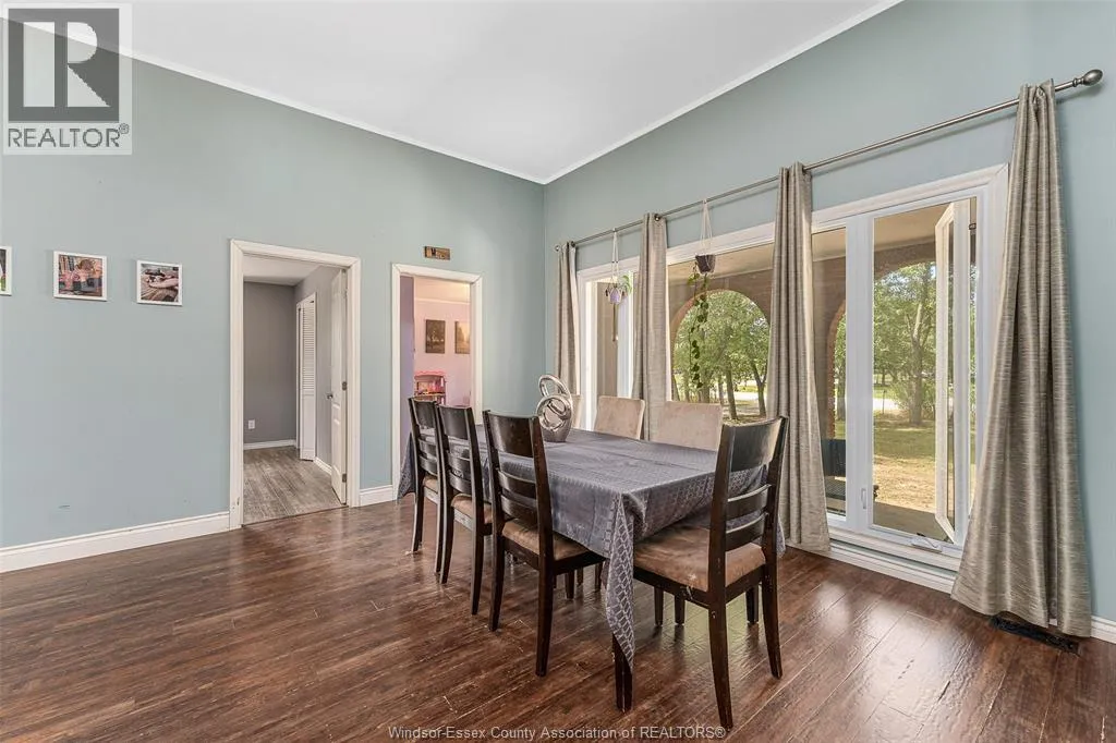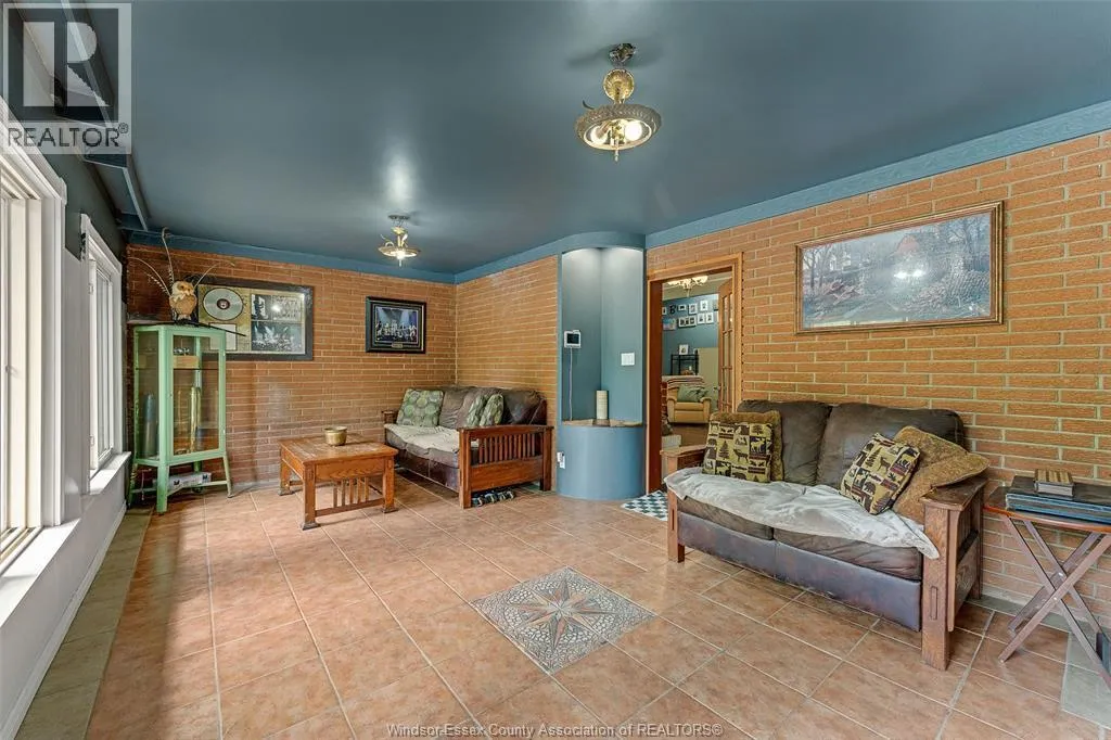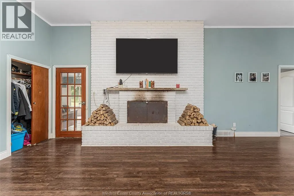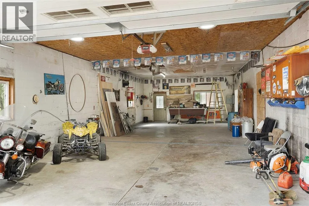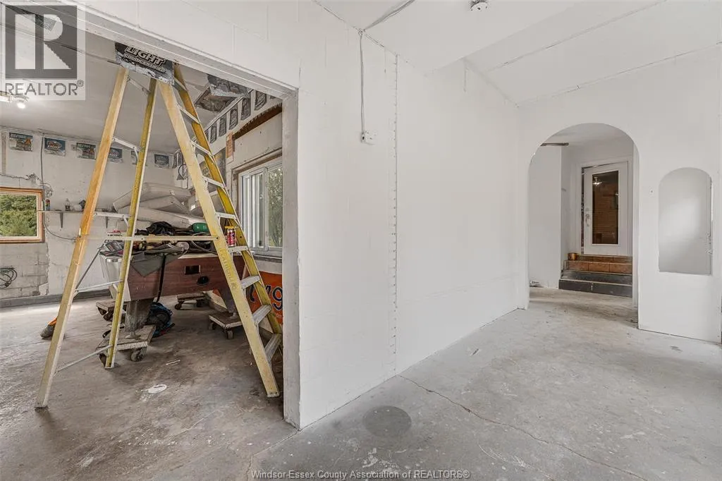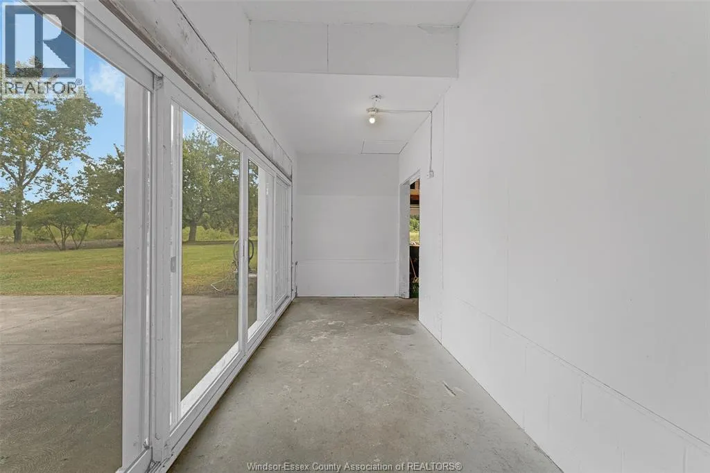 CTY RD 18 to Giardini, north to 7047 Giardini side rd Country living in a great central location with this oversized full brick spilt level, tons of potential here! A unique 4-level on 5.069 acres minutes to Harrow, Essex & McGregor also 20 minutes to Windsor. Approx. 2500 SQFT on 2 levels plus 200 SQFT breezeway mud room with 16 FT patio doors leading to large concrete patio & walk through to a 55 FT x 22 FT Block Garage with Double auto doors. TONS OF POTENTIAL FOR MANCAVE / WORKSHOP with additional 150 SQFT side structure with rough-in for bathroom connected to Arobic septic system currently operating by gravity flow only (service to be completed prior to close). Large rear gravel parking area off of the garage. High 3rd level with approx. 720 SQFT roughed in for 2 bedroom apartment w/ private grade entrance. Huge living / dining room w/ natural fireplace and 10 FT ceilings. Covered front porch, hardwired (6) camera system, 200 Amp. Updates include reinforcement and outside waterproofing of several basement wall areas (2022), sections of the south garage walls underpinned (2000), Furnace , A/C & On demand Hot Water (2021), roofs (2015), most windows & doors (2017). Spacious master bedroom w/ sliding patio doors to rear. (id:27476)