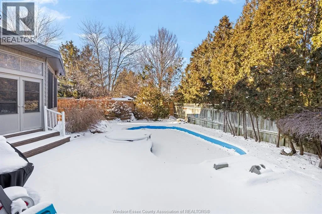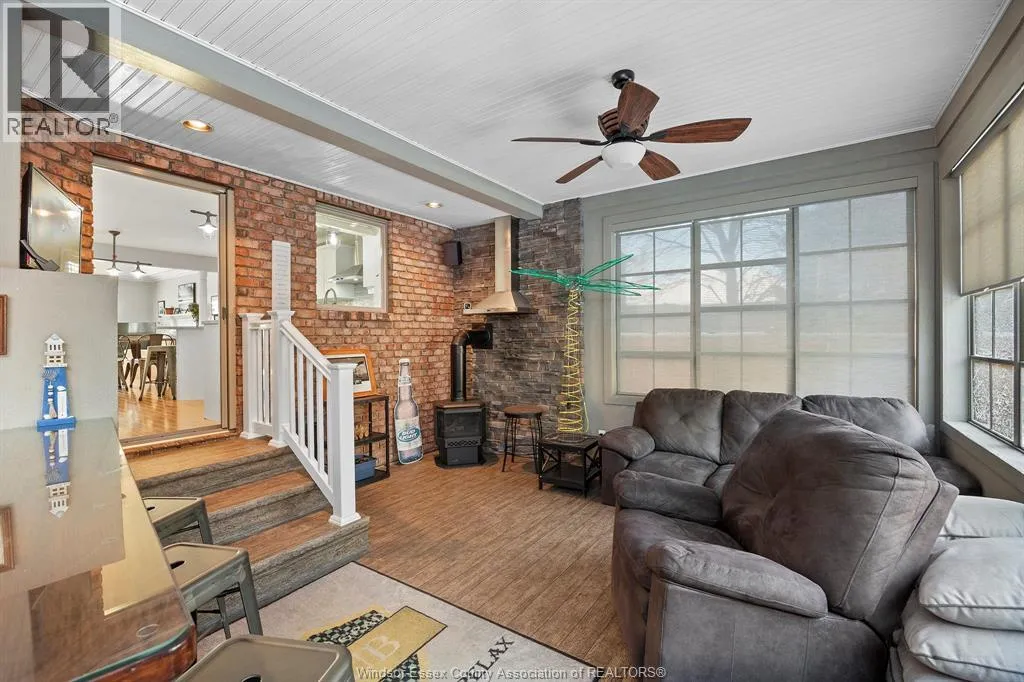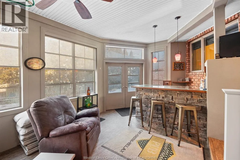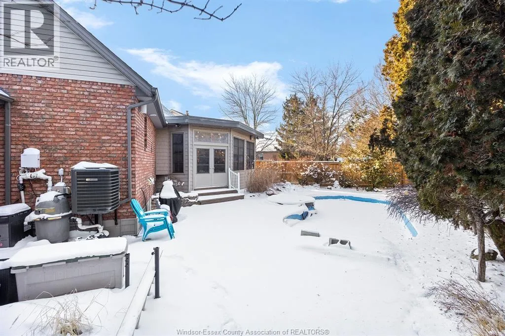 This sprawling brick ranch offers a total of 3+2 bedrooms and 3 baths. This open concept main floor living area houses a private den, a living room featuring a gorgeous tray ceiling, adding elegance to the space. Leading into a tastefully updated kitchen/dining area. Off the kitchen you will find a 3 season sunroom with a fireplace and a bar overlooking an inground, heated, salt water pool with attached spa. Main floor master bedroom with ensuite. Fully finished basement with 2+1 more bedrooms, Laundry/utility room...plus so much more. This home is an entertainers delight! Located in the highly sought after Tully Meadows in Essex! (id:27476)