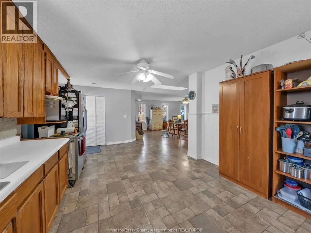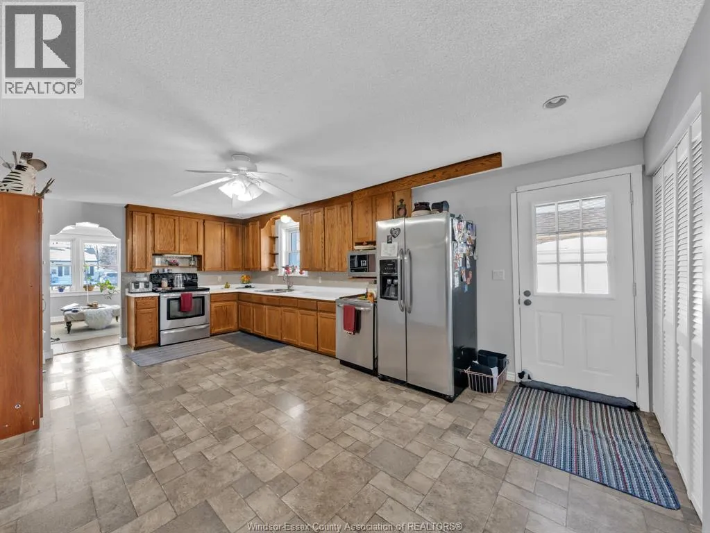 Welcome home and relax watching sunsets from your front porch! Nestled in a peaceful Essex neighborhood, this home is perfect for families of all sizes. With 4 spacious bedrooms and 2 full baths, enjoy the ease of one floor living. Freshly painted throughout with new flooring in all bedrooms and living room. New furnace and central air (2025). New 2nd bath (2024). 280amp wiring. Mostly new plumbing. There is nothing to do but move in. This property also includes a detached 1.5 car garage, complete with heat and hydro. Located within walking distance to No Frills, Shoppers, Park and Essex Public School. (id:27476)