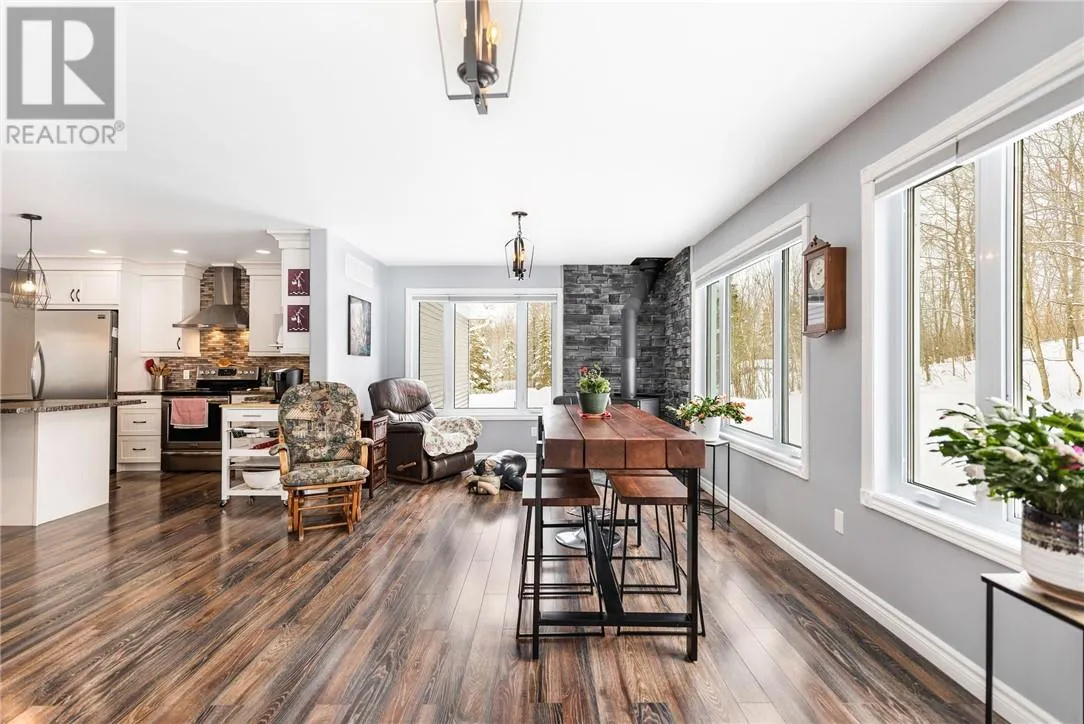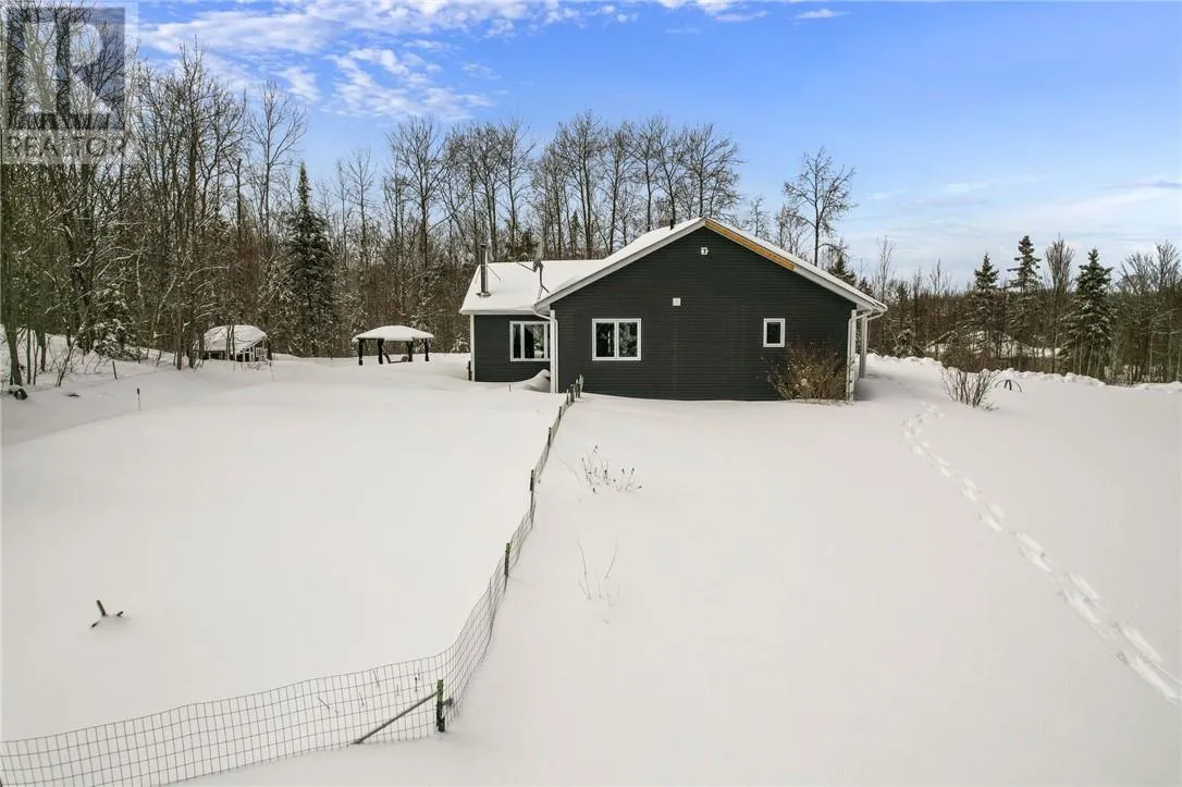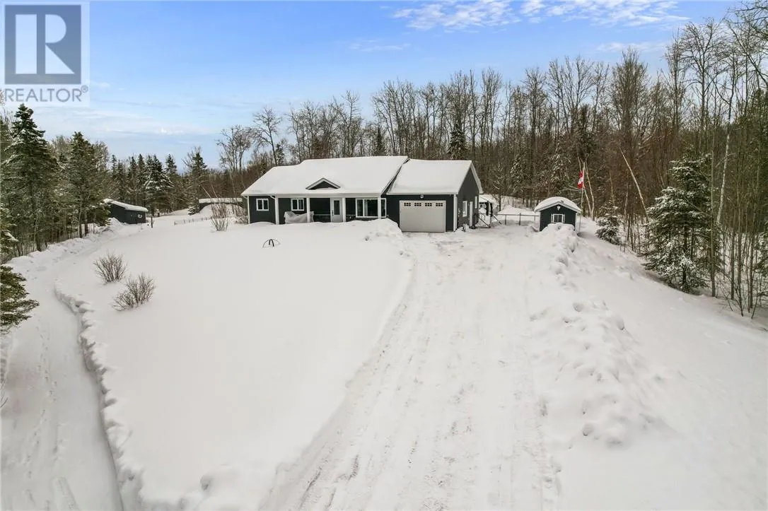 Welcome to Nepewassi Road in Estaire! This 2016-built bungalow is set on a private 25-acre property, offering the perfect blend of comfort and outdoor lifestyle. The bright, open-concept main floor features two bedrooms, a full bathroom with laundry, an additional 2-piece washroom, and convenient access to the attached garage. Enjoy the sunroom overlooking peaceful surroundings, complete with a cozy wood-burning fireplace - an inviting space to relax year-round. The kitchen offers excellent flow with ample prep space and a pantry, making it ideal for both everyday living and entertaining. The unfinished basement with 6-foot ceilings provides excellent storage and future potential. Outside, the property continues to impress with a partially fenced yard, barn-style garage, and additional outbuildings. A trail leads to the back of the property where youâll find a private hunt camp with a wood stove, pond, and expansive land to explore. Whether you enjoy snowshoeing, hunting, or simply taking in nature, this property offers something to enjoy in every season. A chicken coop is already in place for those seeking a homestead lifestyle. A rare opportunity to own a versatile property with endless potential. (id:27476)