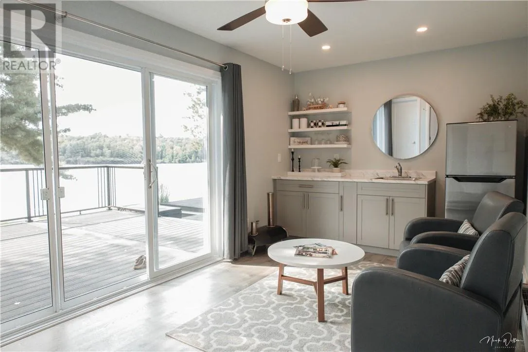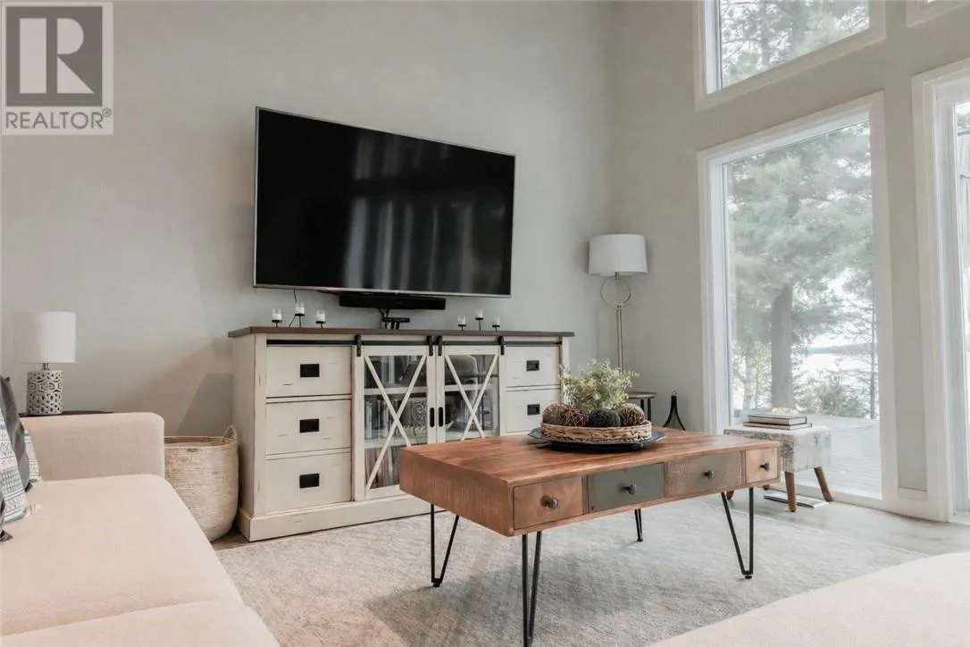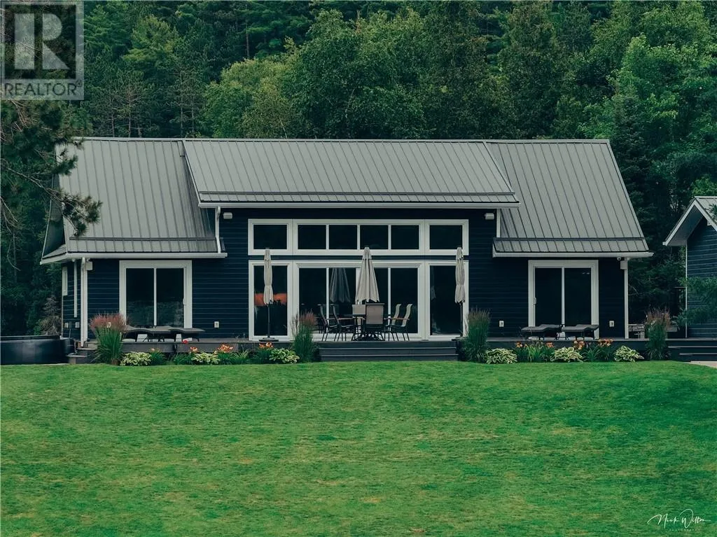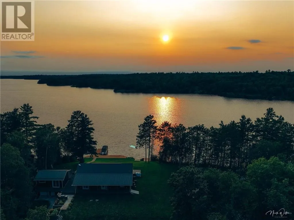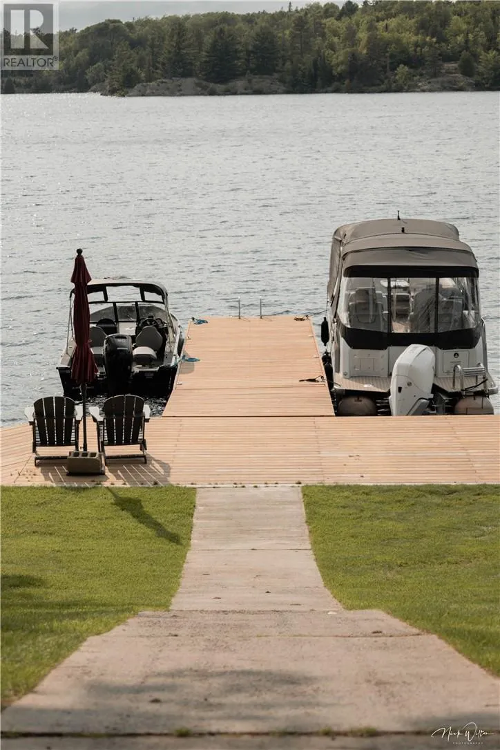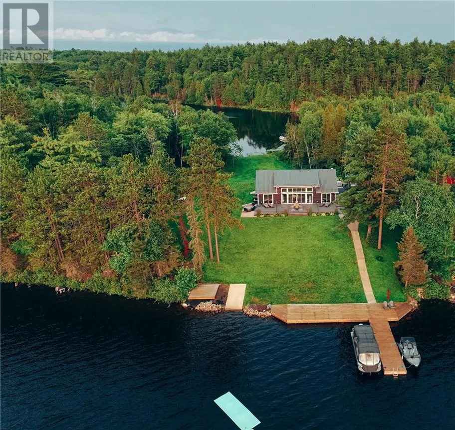 Welcome to your family's private luxury retreat on the shores of Lake Nepewassi. This rare property is crafted for those who value privacy, space & lakefront living. Accessed by a short 2 km boat ride from your private docking facilities in Estaire, it delivers the perfect balance of convenience & seclusion. This custom 4-season residence showcases soaring 17-ft. ceilings & a thoughtfully designed split floor plan that seamlessly blends modern comfort with panoramic lake views. The primary suite is a true retreat, featuring a spa-inspired ensuite with a double walk-in shower, private water closet & direct walkout to the water. The opposite wing is perfectly suited for family & guests, offering 2 spacious bedrooms, a shared bath & multiple walkouts. At the heart of the home, a custom kitchen & an open-concept living space flows effortlessly onto a stunning 50âx16â composite deck for exceptional indoor-outdoor living. Beyond the main residence, a fully equipped bunkie elevates the property further. Complete with a private suite, full bathroom, custom cedar sauna & steam room, kitchenette & an adjacent outdoor chefâs kitchen, all complemented by an elevated composite deck with sleek glass railings. The grounds are truly set apart, offering rare, fully usable waterfront that has been professionally landscaped with irrigation & maintained by robotic lawn systems. Enjoy an expansive, flat lawn leading directly to the water, multiple docking systems including a sheltered rear dock & private launch & a protected shoreline ideal for boating, swimming, and water sports. Backing directly onto crown land, the privacy is simply unmatched. Nepewassi Lake itself is one of Northern Ontarioâs hidden gems. Nearly 20 miles of warm, clean water with endless opportunities for exploration, yet just a short distance from Sudbury & only 3 hours from the GTA. This is more than a cottage, it's a waterfront compound designed for multi-generational living, memories & long-term enjoyment. (id:27476)