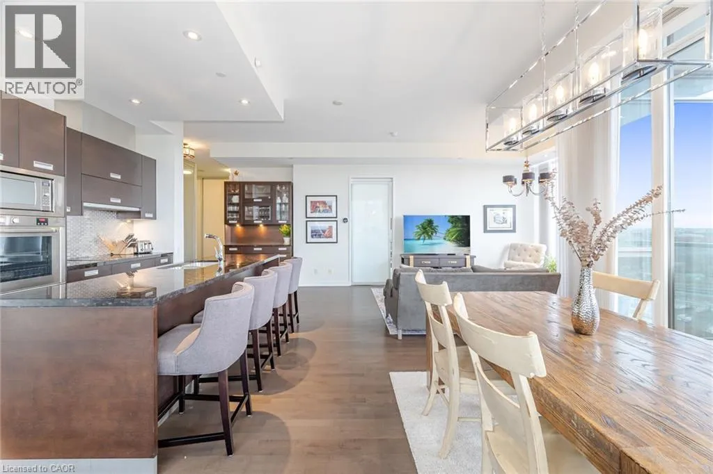 Lakeshore Blvd. W. to Park Lawn Rd. Remarkable Luxury Living in this incredibly spacious condo offering almost 1,900 sqft of interior living space plus 300sqft of wrap-around terrace and second balcony. A truly expansive lifestyle experience featuring 3 large bedrooms + enclosed den and 3 bathrooms. Enjoy floor-to-ceiling windows, 10-foot ceilings, and custom Hunter Douglas remote-controlled window coverings that frame panoramic city and lake views. The large open-concept layout is complemented by custom cabinetry, a walk-in laundry room, and a separate walk-in pantry/storage room-all designed for convenience and modern living. The residence includes two luxurious 5-piece bathrooms adorned with marble finishes and a 2-piece powder room. The unit has been freshly painted. Enjoy the convenience of 2 (side-by-side) parking with a fully installed EV charger, plus one locker for even more storage. Residents enjoy access to over 30,000 sqft of resort-style amenities, including indoor and outdoor pools, hot tubs, a state-of-the-art fitness centre, basketball/pickleball court, party rooms, billiards, a lounge, 24-hour concierge, free visitor parking, and much more. A rare opportunity to own one of the largest and most desirable suites in the building-offering unparalleled space, style, and amenities in an unbeatable location. (id:27476)