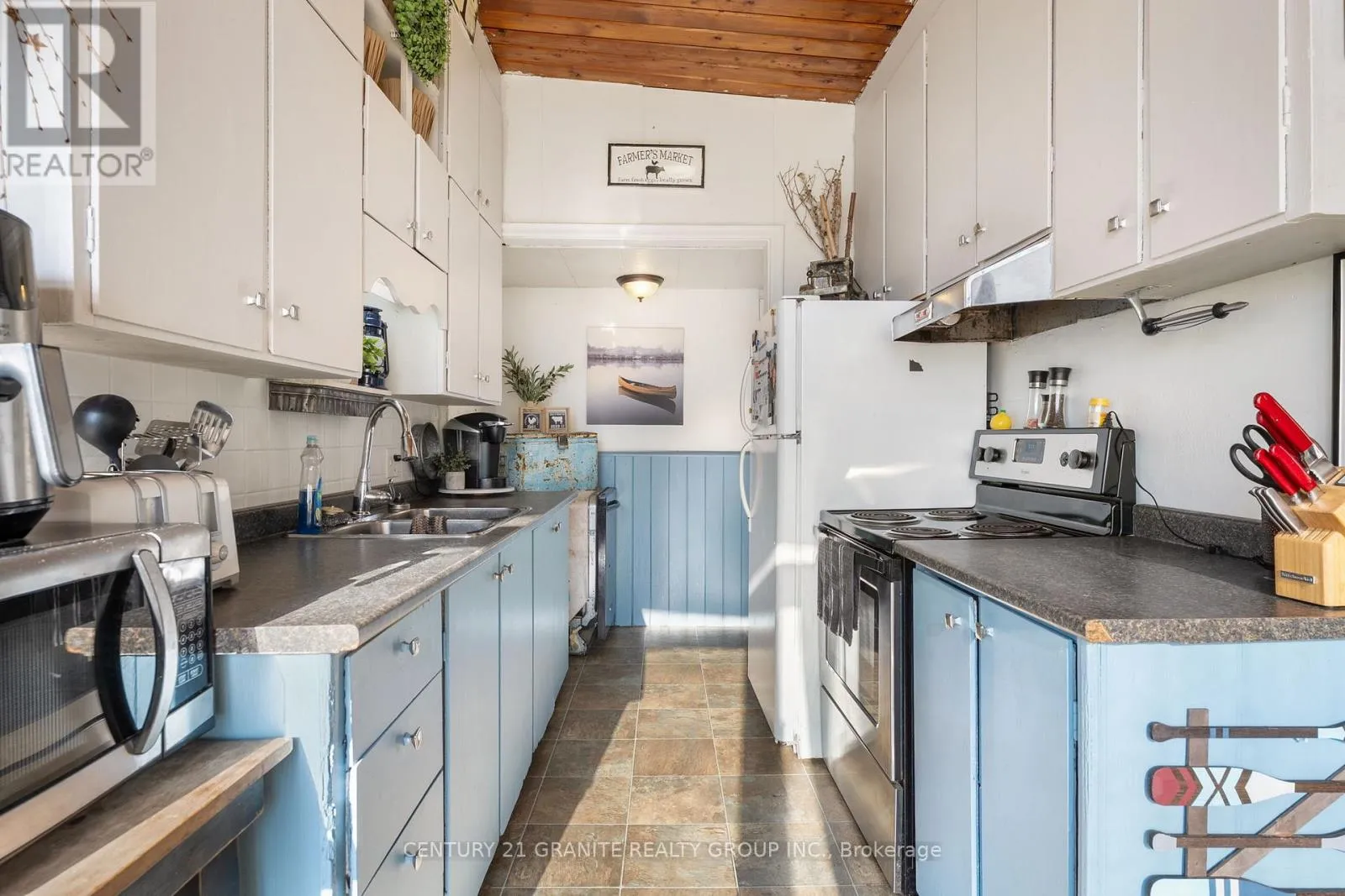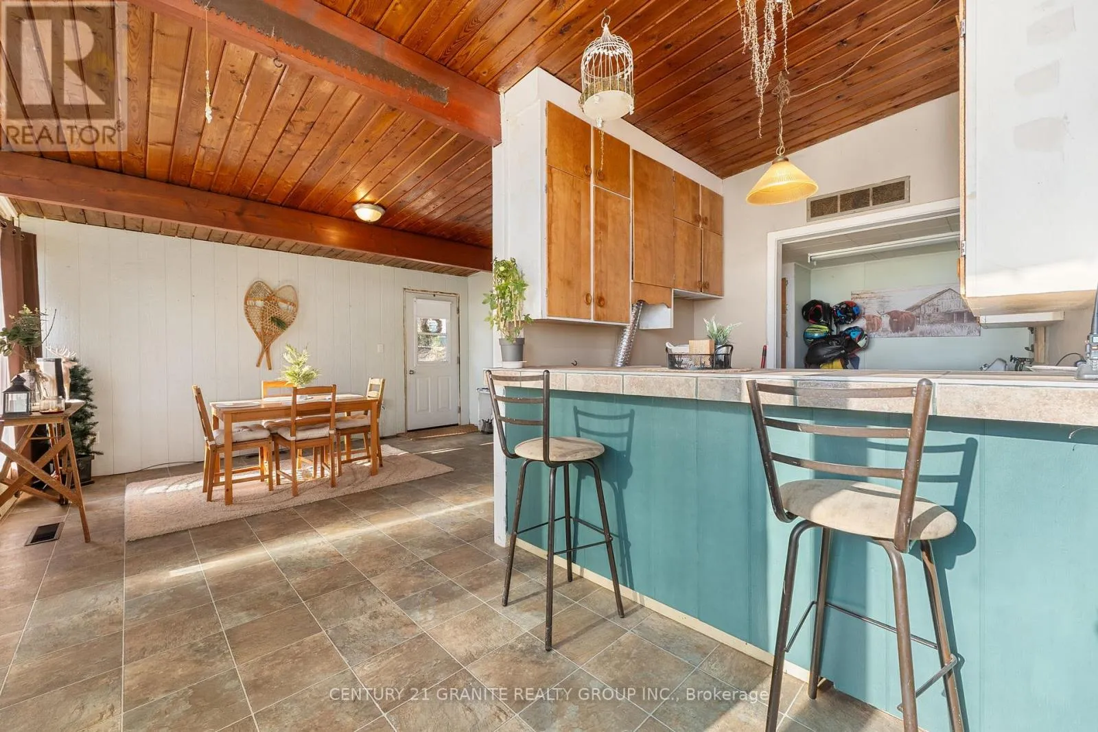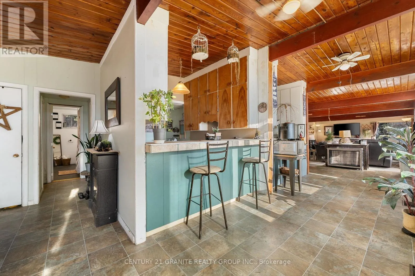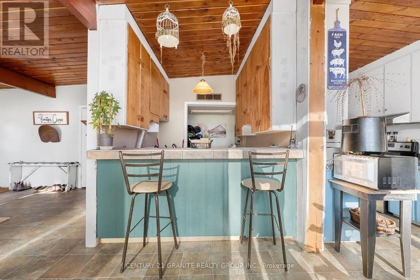 Cross Streets: Monck Rd. & Hwy 28 S. ** Directions: From Bancroft, take Monck Street to Hwy 28 south, on the right just after Monck Rd. Spacious Family Home with Duplex Potential - Minutes to Downtown Bancroft! This bright and versatile home offers plenty of space for a large family or an easy conversion into a full duplex with both a 1 bedroom and 3 bedroom unit set up- all the essentials are already in place! With two kitchens, two full bathrooms, and laundry hookups on both sides, the layout makes for a seamless setup for multi-generational living or income potential. Enjoy peace of mind with a drilled well, septic system, and a forced-air wood/electric combo furnace keeping utility costs manageable. The home features four separate entrances, allowing for excellent privacy and flexibility of use. Outside, you'll find a well-treed side yard, large wood storage shed, and spacious garden shed - perfect for outdoor projects or storage. The wall of windows along the front fills the interior with natural light, while perennial gardens line the driveway, adding charm and curb appeal. Located just minutes from downtown Bancroft with the benefit of Faraday township taxes. Parking for 4+ vehicles and easy highway access make this an ideal home base for families, investors, or anyone seeking extra space and flexibility. (id:27476)