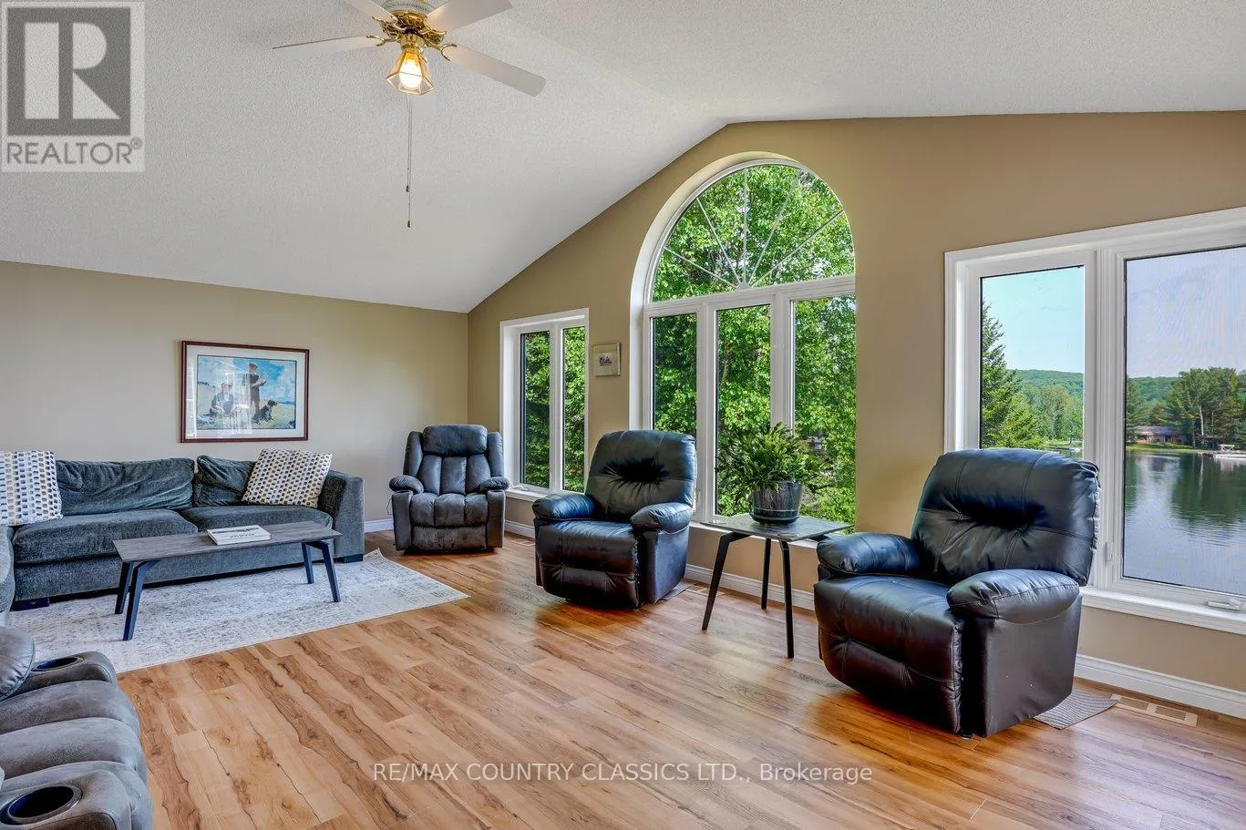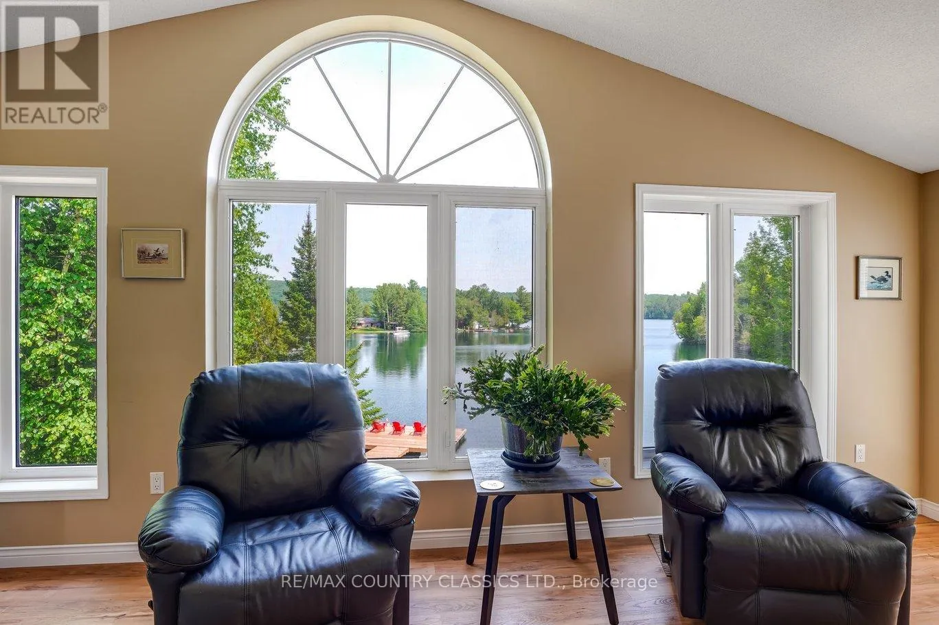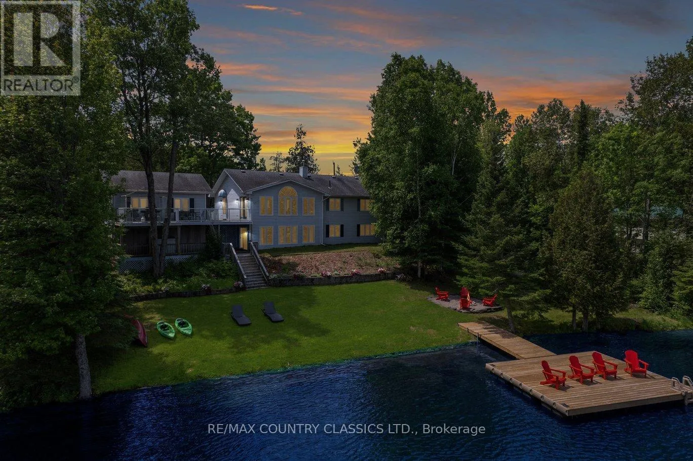 Cross Streets: Mill Street /Bay Lake Rd. ** Directions: Mill Street to 62, to Bay Lake Rd to Bay Shore Drive. Welcome to Your Waterfront Paradise on Bay Lake! Discover your own slice of paradise with this turnkey four-bedroom, two-bathroom home on the pristine shores of beautiful Bay Lake. Combining modern comfort, timeless style, and irresistible waterfront charm, this property is move-in ready and perfect for every lifestyle. The open-concept main level features a brand-new kitchen (2025) with sleek stainless steel appliances that flow seamlessly into spacious dining and living areas-ideal for entertaining or relaxing with family. Step outside onto the expansive deck to take in breathtaking lake views, or wander down to your private sandy shoreline and brand-new dock (2024) for a day on the water. A cozy, finished walkout basement provides a large family and game room with direct access to a firepit area, perfect for evening gatherings by the lake. Additional highlights include a double-car garage with ample storage, main-level laundry, a new water softener (2024), a roof updated in 2017, a propane furnace (2013), and central air conditioning. All appliances and furniture are included, making this truly turnkey. Whether you're looking for a year-round residence, a cottage retreat, or a proven income-generating property-currently a very successful Airbnb-this stunning Bay Lake home checks every box. Don't miss your chance to own this incredible waterfront escape! All appliances and furniture included. (id:27476)