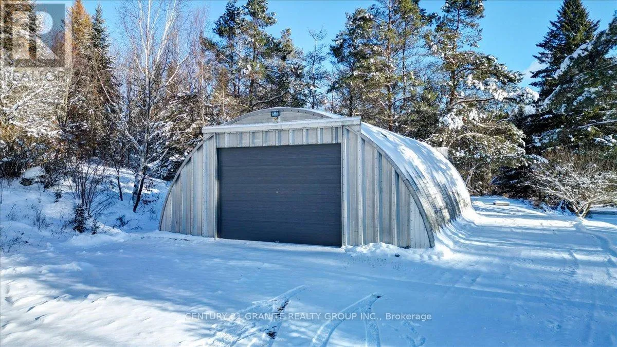 Cross Streets: Lower Faraday Rd/ Barnes Ln. ** Directions: Hwy 28 South to Lower Faraday Road. Discover the perfect blend of acreage, privacy, and usable land on this beautiful 45-acre property, featuring mature maple trees you can tap, a private pond you can stock, established trails, and endless recreational opportunities. The cozy 2-bedroom home offers comfortable year-round living with an open-concept kitchen/living area, a 4-piece bathroom, and a solid slab foundation-ideal for those seeking simplicity and the peacefulness of the outdoors. A major highlight is the impressive steel Quonset hut, perfect for storing equipment, vehicles, recreational toys, or transforming into a workshop or hobby space. Additional outbuildings add even more flexibility for storage, tools, or future projects. The land is level to gently rolling with excellent access-ideal for nature lovers, hunters, hobby farmers, or anyone dreaming of space, privacy, and fresh country air. The Rural zoning offers a wide variety of potential uses. A separate 4-acre parcel is also being offered individually, providing opportunities for investment, family use, or future resale. Located just minutes from Bancroft and its amenities-but surrounded by lakes, forests, and scenic beauty-this property delivers the best of both worlds. Whether you're seeking recreation, self-sufficiency, or a peaceful retreat, this unique property offers outstanding value and endless possibilities. (id:27476)