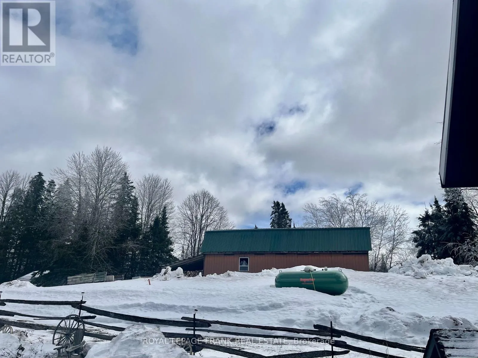 Lower Faraday Rd & Aryhart Rd Square Timber Home on 1.9 Acres-Just 7 Minutes from the Town of Bancroft. Welcome to this beautifully crafted square timber frame home offering warmth, character, and space for the whole family. Featuring 4 bedrooms and 3 bathrooms, this well-maintained property blends rustic charm with modern comfort. The heart of the home is the large eat-in kitchen, perfect for family gatherings and everyday living. Enjoy the convenience of main floor laundry, a cold storage room, and plenty of storage throughout the home. Recent updates include a newer propane furnace, central air conditioning, water heater, water pump, and kitchen appliances, providing peace of mind and energy efficiency. Stay cozy year-round with the pellet stove and WETT certified wood fireplace insert. Set on 1.9 acres, the property offers privacy and space to enjoy the outdoors. A large detached garage located behind the house on the hill provides excellent room for vehicles, tools, and recreational equipment. Conveniently located just 7 minutes from the town of Bancroft, you can enjoy peaceful country living while still being close to shops, restaurants, schools, and all local amenities. A wonderful opportunity to enjoy country living with comfort, space and functionality. (id:27476)