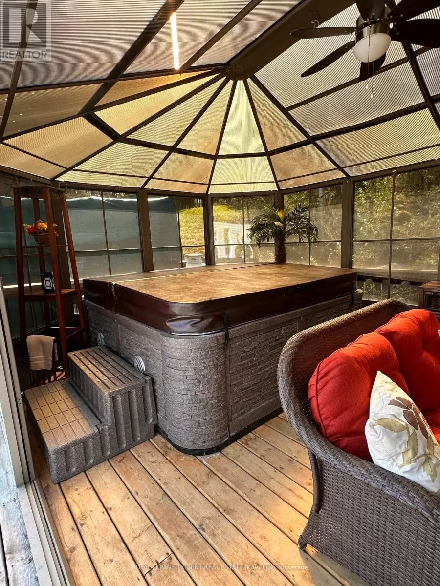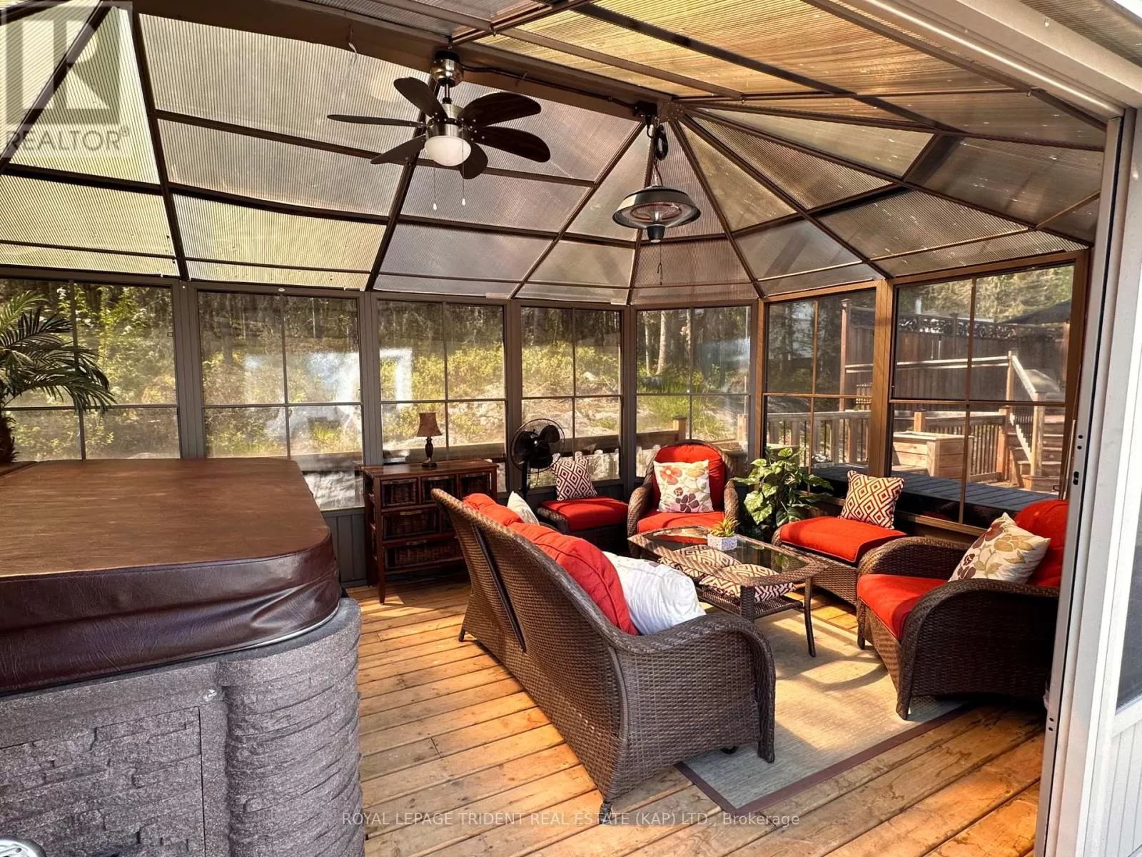 Cross Streets: Grezla Rd/Lac Gerard Rd. ** Directions: Highway 11 to municipality of Fauquier straight to Grezla Rd, left on Gerard lake Rd to Fanthram. Check out this fantastic opportunity! There's a wonderful 3-bedroom, 1.5-story home or cottage available on leased land. It's perfect for year-round enjoyment, featuring both convectair heaters and a woodstove to keep things cozy.Inside, you'll find a warm and inviting atmosphere with pine and cedar finishes throughout. The kitchen boasts a large pantry for all your storage needs, and the property comes mostly furnished for easy move-in. Practical features include a heated water line to the lake with a filtration system, a certified holding tank with an alarm, and a security system, among other extras.Outside, you can relax and entertain on the large, two-tiered back deck, take a dip in the pool, or unwind in the gazebo with a hot tub. There's also a convenient 4-season Covertech garage and a shed for all your storage needs Landlord must sign an agreement acknowledging the assignment prior to closing. (id:27476)