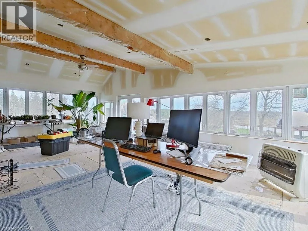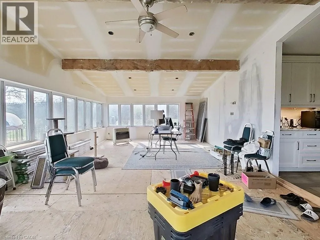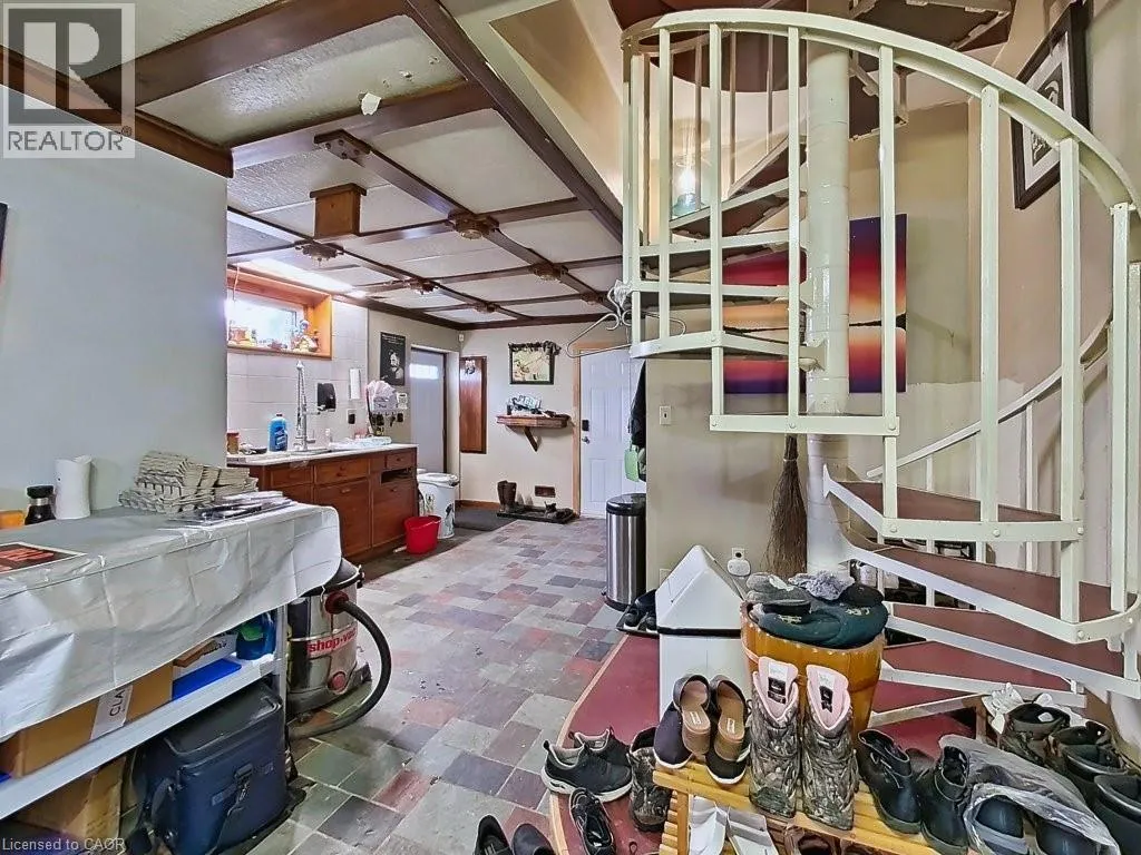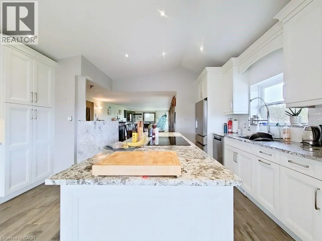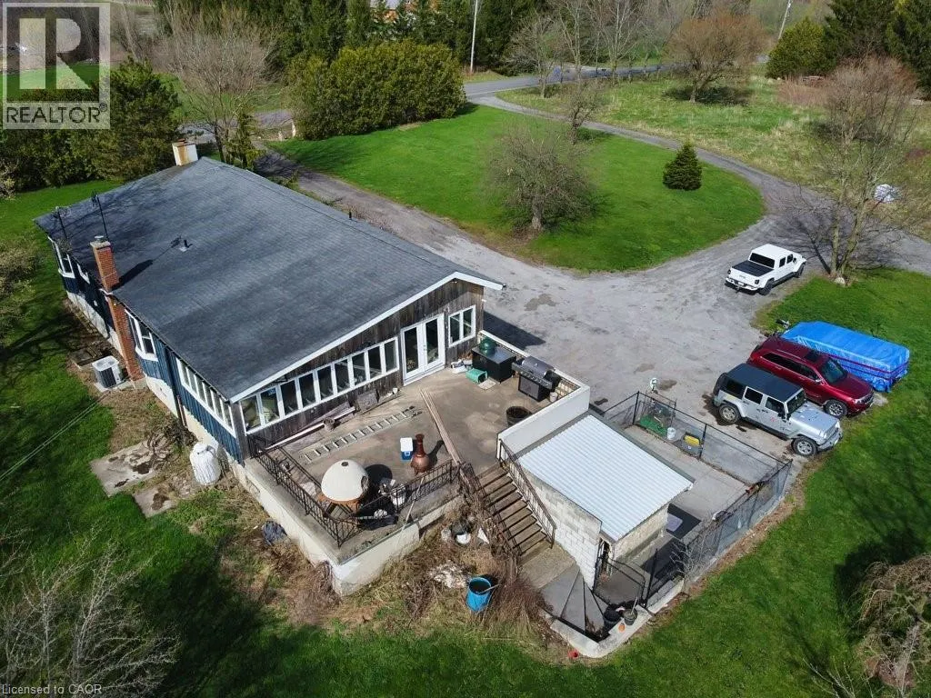 Over 23 Acres of private country living, yet only minutes to all amenities and the QEW. Picturesque property with rolling fields, tree lines and pond. Suitable for many agricultural uses. Older 2 storey board and batten barn with hand-hewn beams in need of some TLC for those wedding venues. Circular drive with a solid open concept bungalow built in the 60âs. Attached double car garage addition with full walkout basement, rec room, 2pc bath, wine cellar, mudroom with sink and counter. Two bedrooms on the main floor, the master with 4pc ensuite privileges. Open concept living and dining area with maple hardwood flooring, Freshly renovated kitchen with granite counters and island, built ins, vaulted ceiling with pot lights, open to a massive family room, bright windows throughout, patio doors to a private backyard patio overlooking your pond and property. This one of a kind property could be an unbelievable homestead with some imagination and TLC. (id:27476)