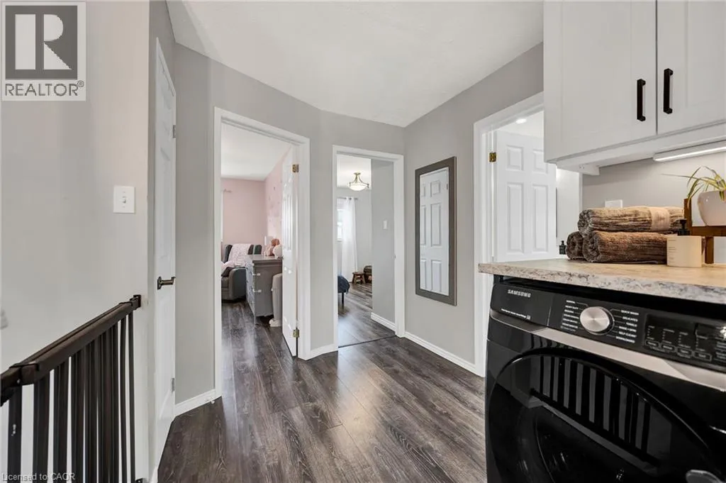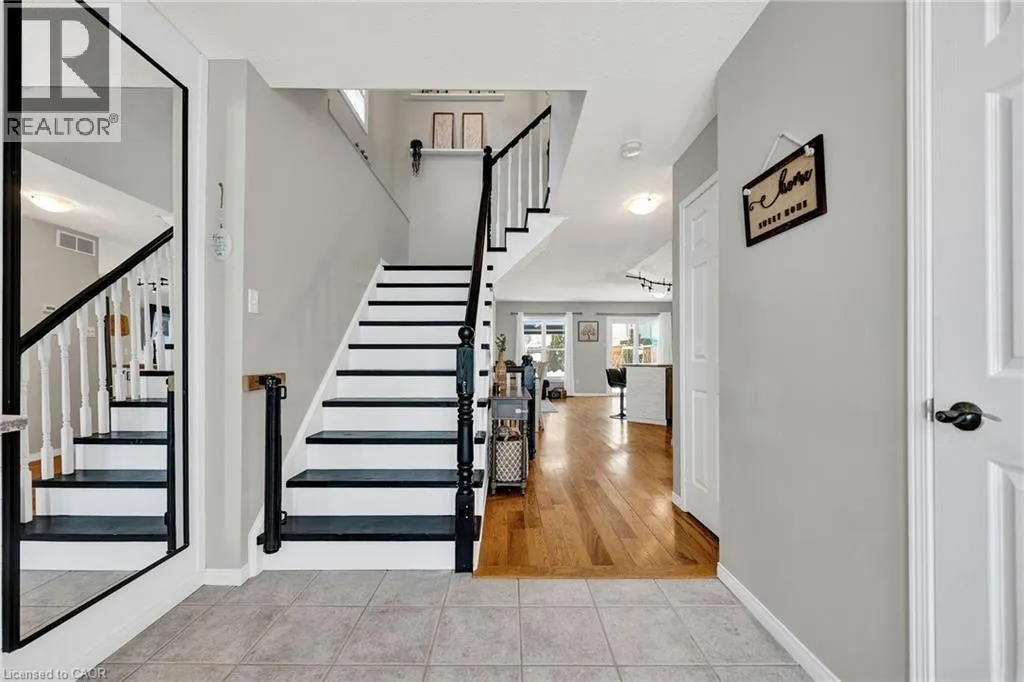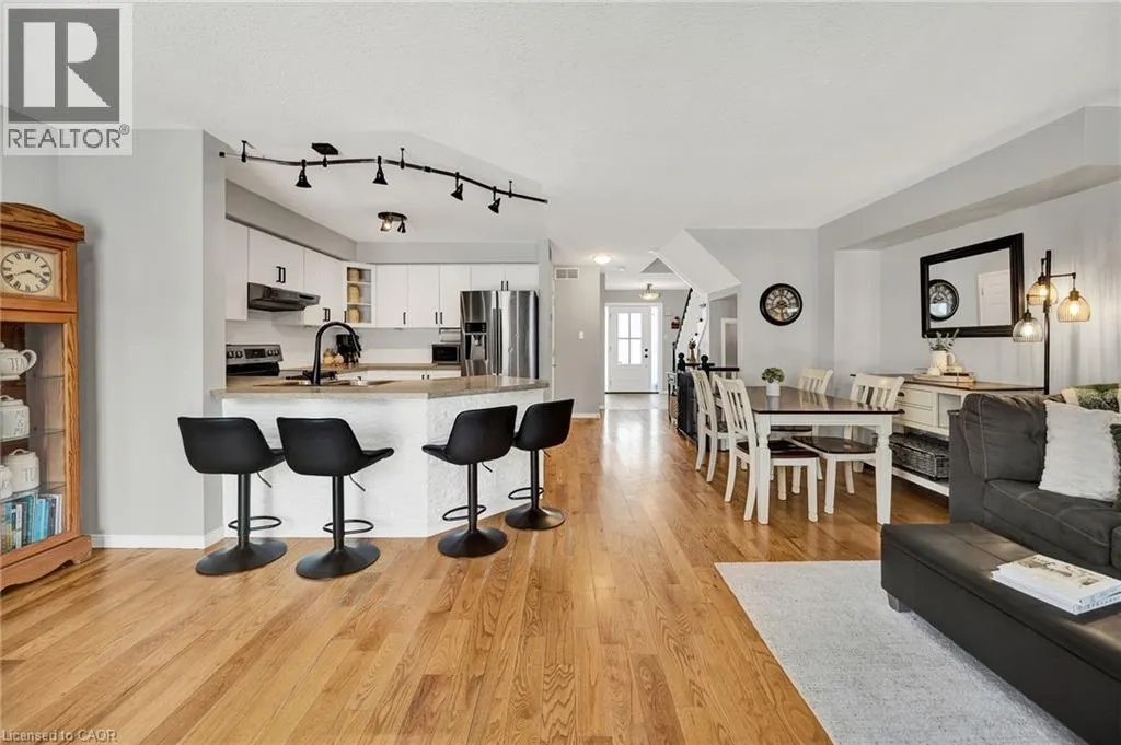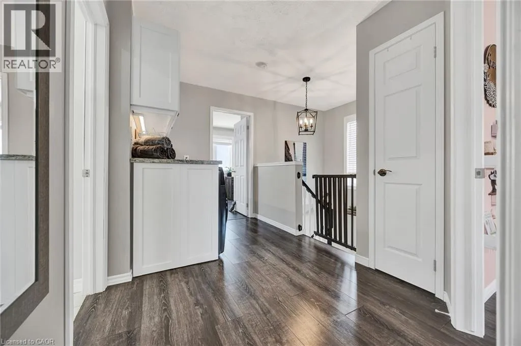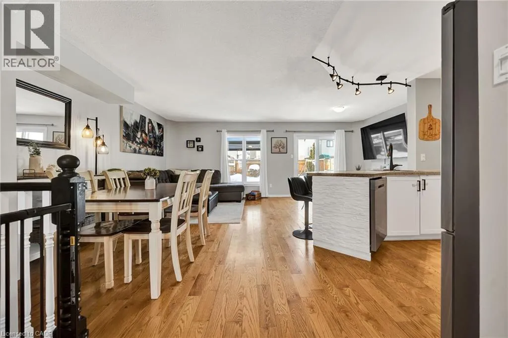 Located in the heart of Fergus, this well maintained two storey home offers a comfortable, functional layout that is ideal for family living, all while keeping you close to everything this charming town is known for. From boutique shopping and historic architecture to scenic Grand River views and community events, Fergus offers an easy, small town lifestyle many families love. The main floor welcomes you with a bright foyer and open stairwell, leading into living spaces finished with hardwood floors throughout the main level. The kitchen is equipped with stainless steel appliances and flows easily into the main living areas, making everyday life and family time feel effortless. Upstairs, you will find three bedrooms, including a primary bedroom with a walk in closet, along with the convenience of second floor laundry, perfect for busy family routines. The finished basement adds valuable living space with a rec room that offers plenty of room for kids to play, relax, or enjoy movie nights, along with ample storage downstairs for all your extra things. Thoughtful updates include all new doors and windows in 2023, an updated second floor bathroom and laundry in 2024, and a refreshed main floor bathroom in 2026. Outside, a new fence and garden shed added in 2024 create a functional and enjoyable yard space. The insulated garage features pot lights and a 40 amp pony panel, offering flexible use as a workshop, hobby space, or man cave. A warm, well cared for home in a family friendly Fergus neighbourhood. Schedule your showing today to see this beautiful home for yourself. (id:27476)