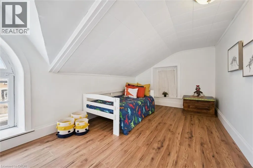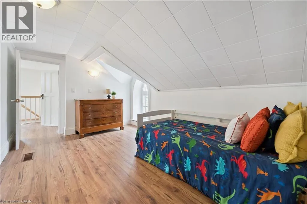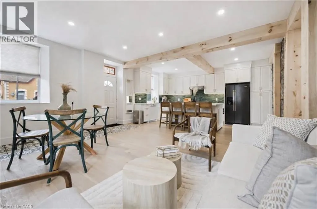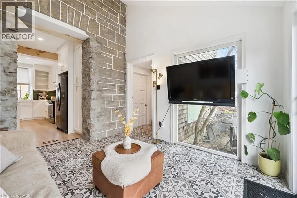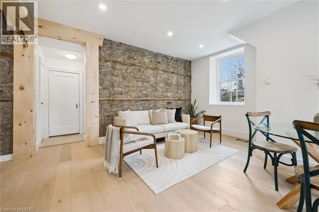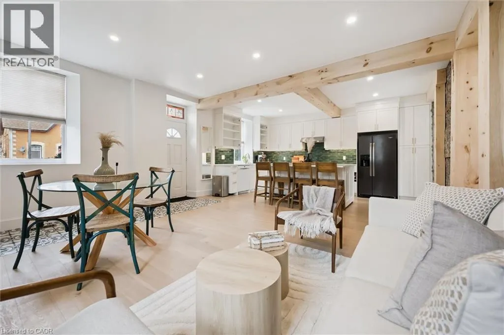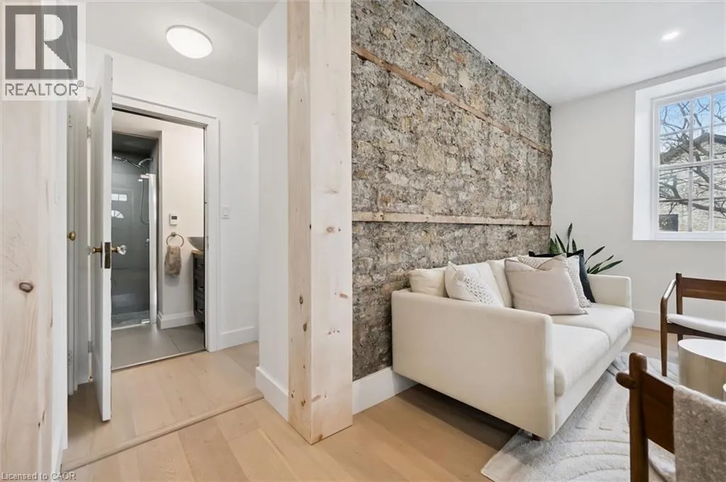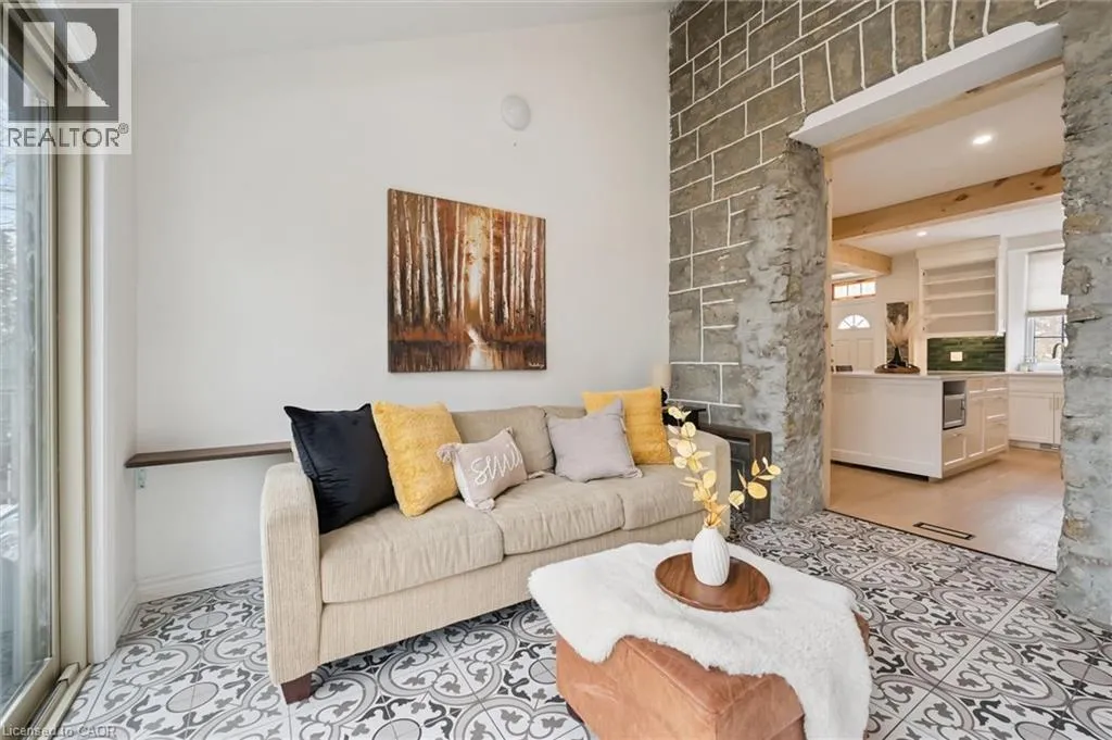 St. Andrew St. E. to Gowrie, North to St. George St. E., Right and property on Right Stunning stone 4 bedroom home with character and charm. This charming 4 bedroom home has been lovingly renovated with a massive, open concept main floor living space. Beamed ceilings, exposed stone walls, new bright white chef's kitchen with quartz countertops and massive island. From the moment you step inside you'll recognize the attention to detail and the love that went into this home. Gleaming neutral hardwood, gorgeous gem toned backsplash, stainless appliances, and so much space! The high ceilings and large windows make this floor inviting and airy. The den, with abundant windows sits just off the kitchen, and a convenient main floor bedroom and newly renovated 3 piece bath with tiled shower and heated floors round out this level. Each end of the home has its own staircase, one to the oversized primary bedroom (with walk in closet) and one to the children's wing. One bedroom upstairs is connected to the primary, perfect for a nursery or office. The second floor bathroom features a clawfoot tub. The backyard is an oasis, with perennial gardens, newer deck and is fully fenced with mature trees, and a private pond. Along the side of the home a concrete pad was poured to double as extra parking and a mini basketball court. The single car garage has been insulated and drywalled and is connected to the home by an interior door. This home is truly the perfect blend of historic elegance with warmth and character, and modern conveniences. (id:27476)
