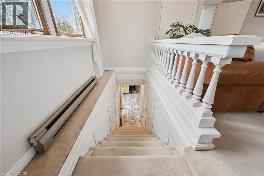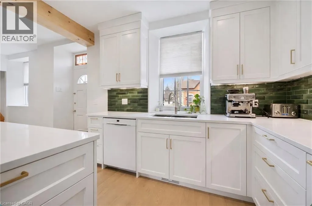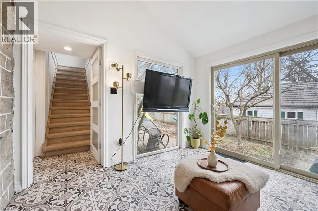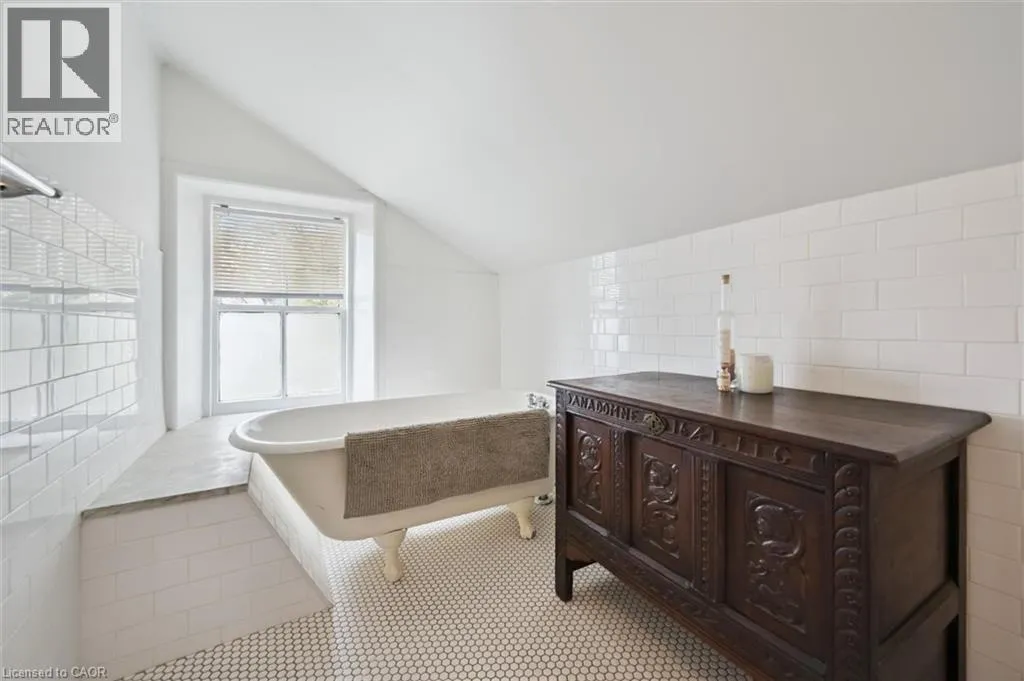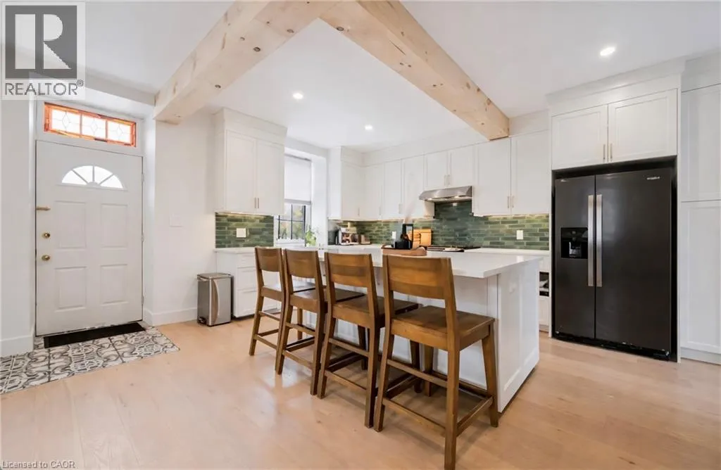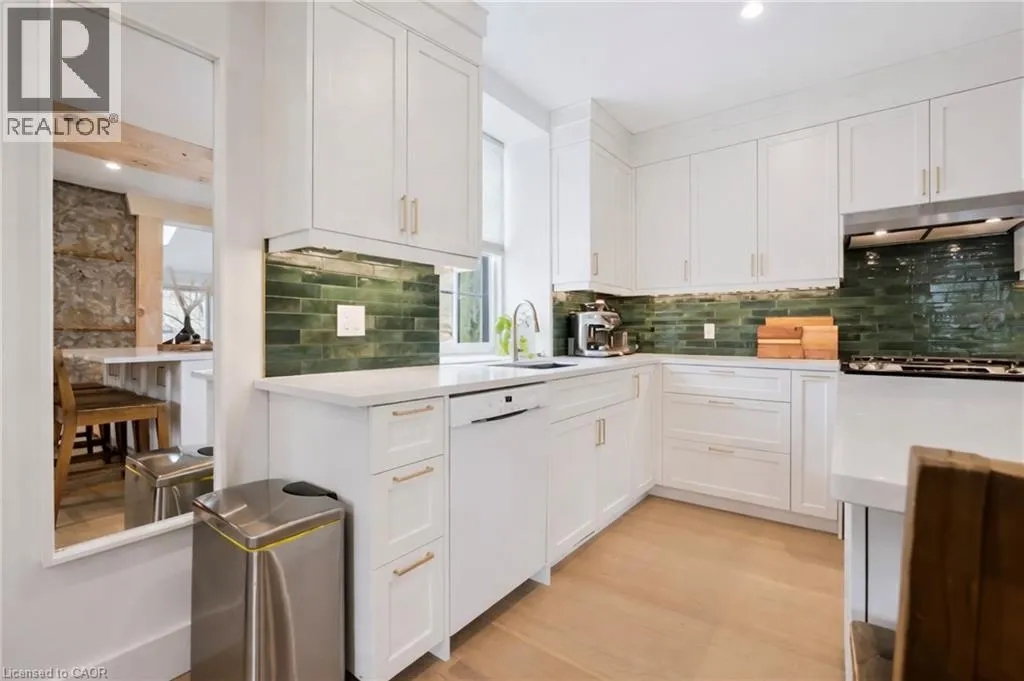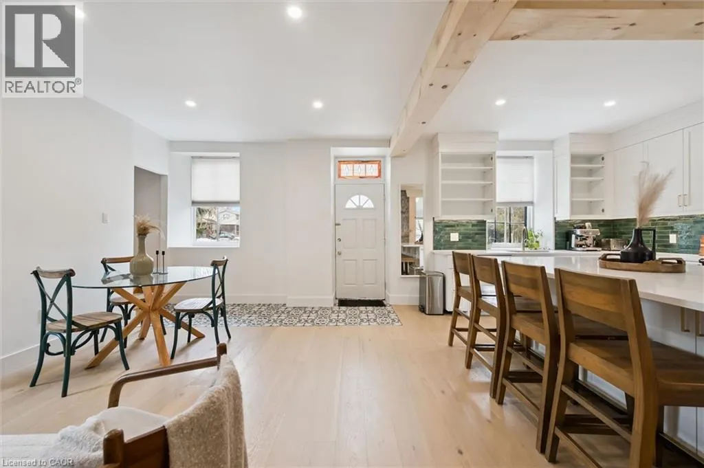 St. Andrew St. E. to Gowrie, North to St. George St. E., Right and property on Right Stunning stone 4 bedroom home with character and charm. This charming 4 bedroom home has been lovingly renovated with a massive, open concept main floor living space. Beamed ceilings, exposed stone walls, new bright white chef's kitchen with quartz countertops and massive island. From the moment you step inside you'll recognize the attention to detail and the love that went into this home. Gleaming neutral hardwood, gorgeous gem toned backsplash, stainless appliances, and so much space! The high ceilings and large windows make this floor inviting and airy. The den, with abundant windows sits just off the kitchen, and a convenient main floor bedroom and newly renovated 3 piece bath with tiled shower and heated floors round out this level. Each end of the home has its own staircase, one to the oversized primary bedroom (with walk in closet) and one to the children's wing. One bedroom upstairs is connected to the primary, perfect for a nursery or office. The second floor bathroom features a clawfoot tub. The backyard is an oasis, with perennial gardens, newer deck and is fully fenced with mature trees, and a private pond. Along the side of the home a concrete pad was poured to double as extra parking and a mini basketball court. The single car garage has been insulated and drywalled and is connected to the home by an interior door. This home is truly the perfect blend of historic elegance with warmth and character, and modern conveniences. (id:27476)