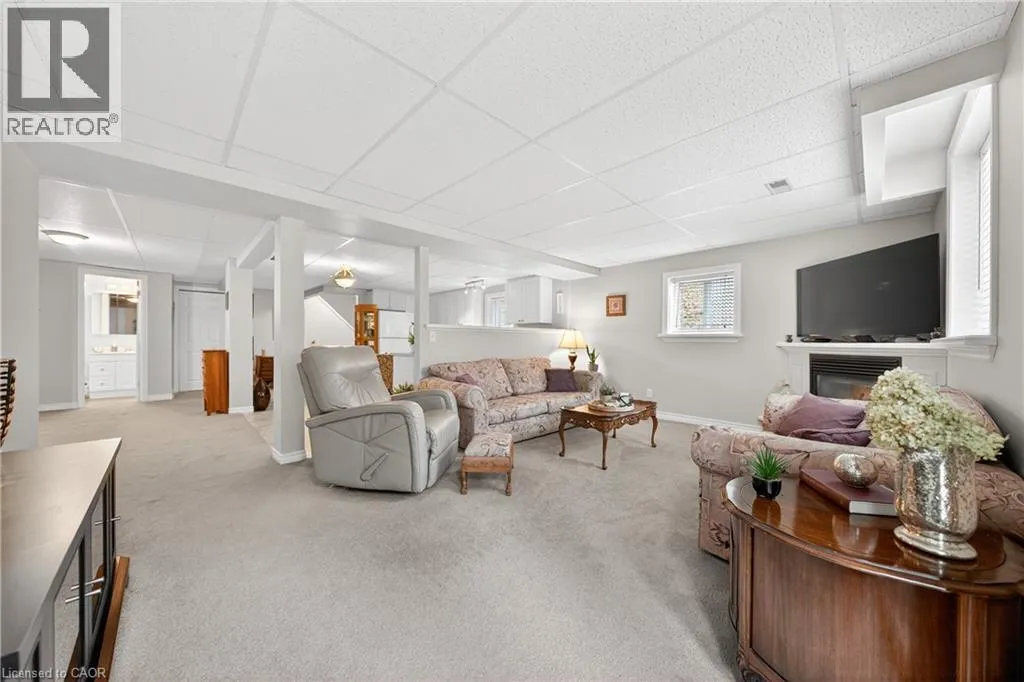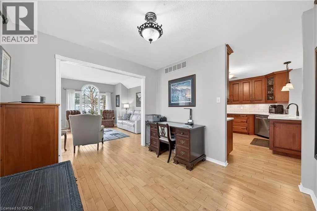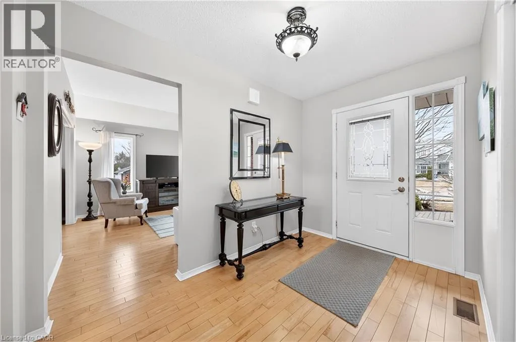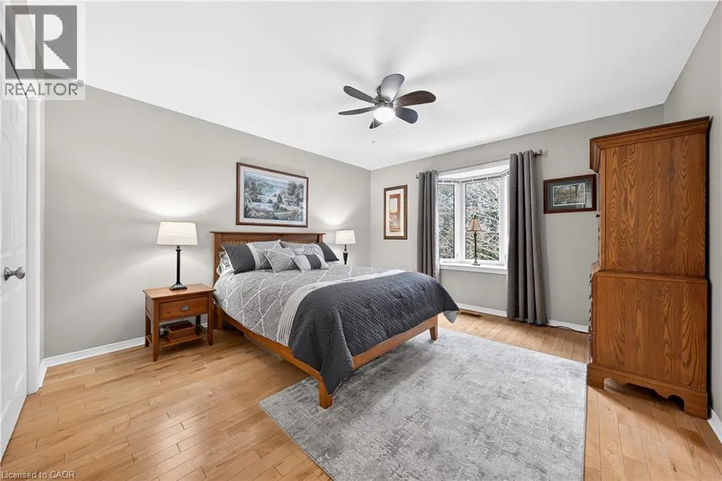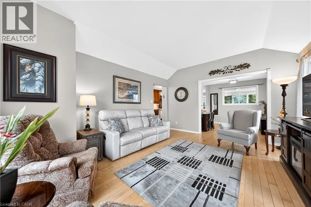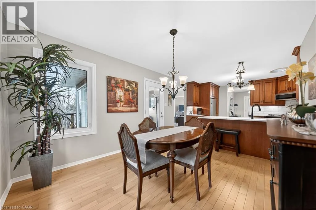 Beautiful Wrighthaven built bungalow in a very desirable Fergus neighbourhood, a great location close to Downtown Fergus, local schools, Sportsplex and shopping etc. This immaculate bungalow has a generous size foyer, beautiful maple hardwood flooring throughout the main floor, a nice bright living room with vaulted ceiling, a formal dining area, the kitchen has been beautifully renovated with custom cabinetry, quartz counter tops, ceramic tile backsplash and Maytag stainless appliances, a good sized dinette area and a 75 sq ft sunroom with patio doors leading out to a deck overlooking the nicely landscaped backyard. The main floor also has 2 good sized bedrooms, the primary bedroom has a cheater style 4piece renovated bathroom, the second bedroom comes with a Murphy bed, a 2 piece en-suite as well as in-suite laundry. Head down to the finished walkout basement and you will find the 2 bedroom in-law suite with a 4 piece bathroom, very spacious open concept living area, a well equipped kitchen, dining area, living room with gas fireplace, storage and laundry room for this unit, and a walkout leading to a nice interlocking stone patio. This is a perfect home for anybody looking for additional accommodation with a separate entrance for family members, or making the suite into a legal basement unit subject to permits for additional income, or even additional living space for the larger family. (id:27476)