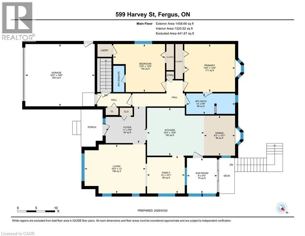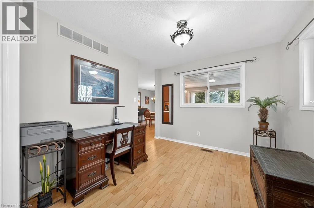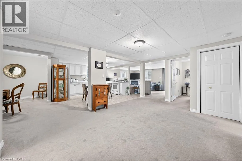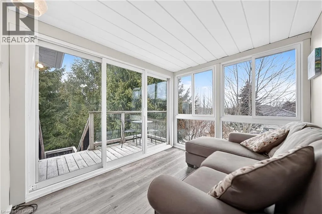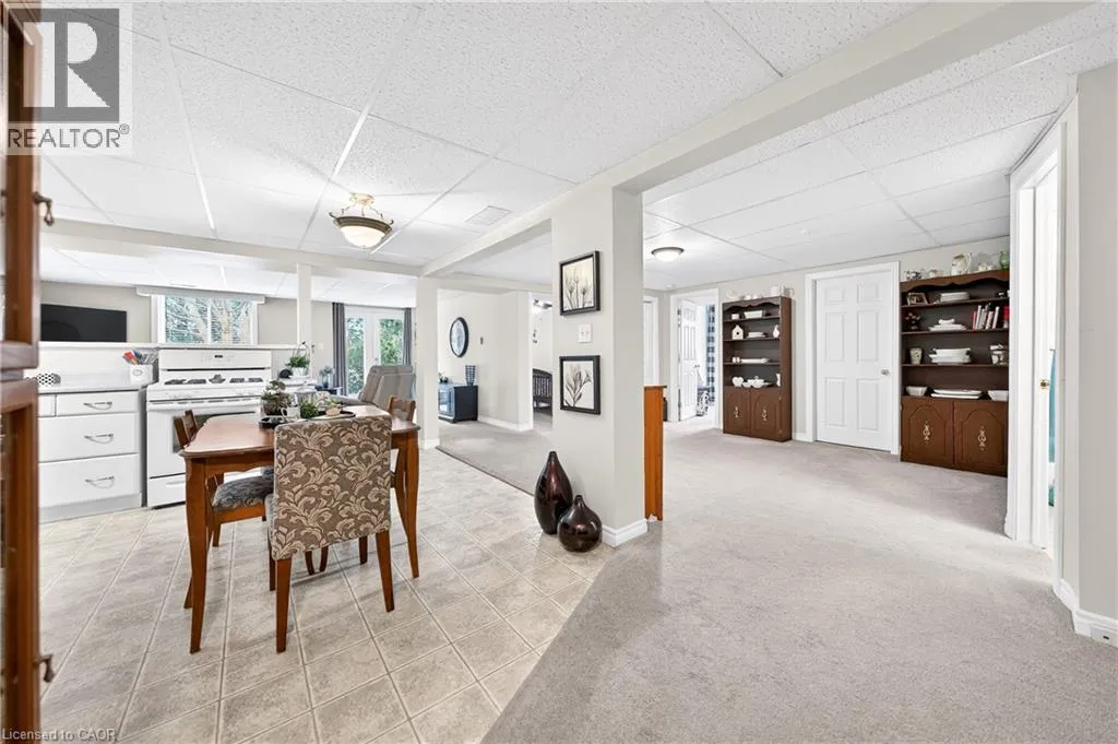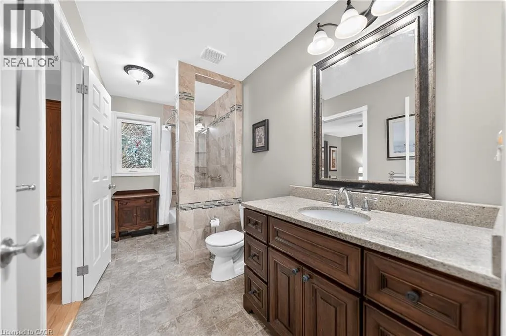 Beautiful Wrighthaven built bungalow in a very desirable Fergus neighbourhood, a great location close to Downtown Fergus, local schools, Sportsplex and shopping etc. This immaculate bungalow has a generous size foyer, beautiful maple hardwood flooring throughout the main floor, a nice bright living room with vaulted ceiling, a formal dining area, the kitchen has been beautifully renovated with custom cabinetry, quartz counter tops, ceramic tile backsplash and Maytag stainless appliances, a good sized dinette area and a 75 sq ft sunroom with patio doors leading out to a deck overlooking the nicely landscaped backyard. The main floor also has 2 good sized bedrooms, the primary bedroom has a cheater style 4piece renovated bathroom, the second bedroom comes with a Murphy bed, a 2 piece en-suite as well as in-suite laundry. Head down to the finished walkout basement and you will find the 2 bedroom in-law suite with a 4 piece bathroom, very spacious open concept living area, a well equipped kitchen, dining area, living room with gas fireplace, storage and laundry room for this unit, and a walkout leading to a nice interlocking stone patio. This is a perfect home for anybody looking for additional accommodation with a separate entrance for family members, or making the suite into a legal basement unit subject to permits for additional income, or even additional living space for the larger family. (id:27476)