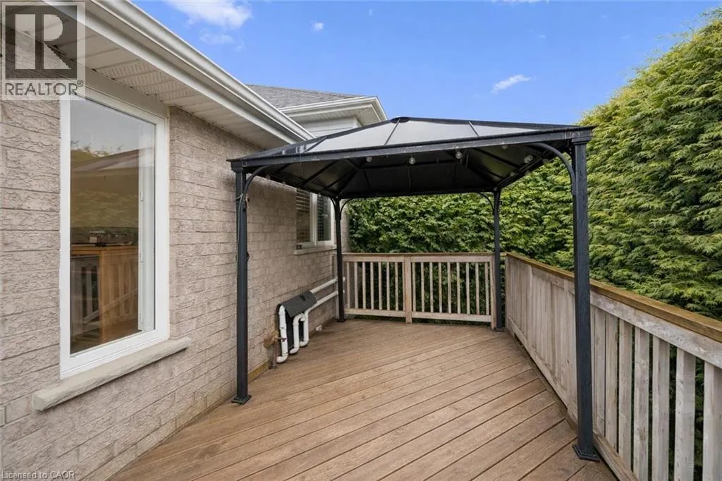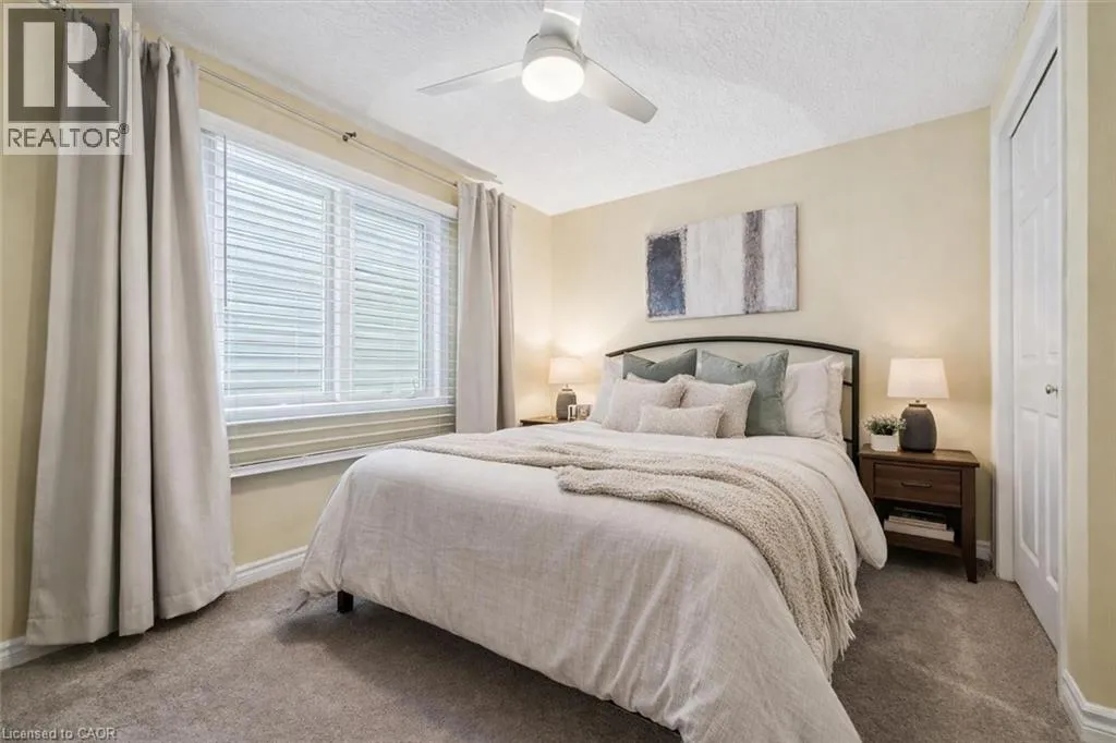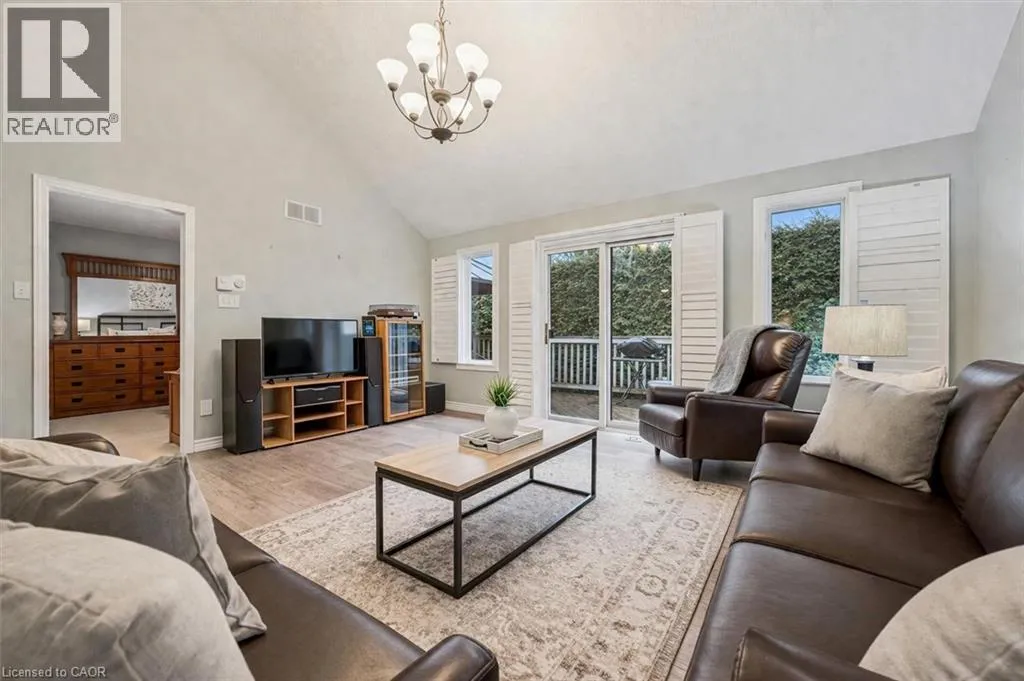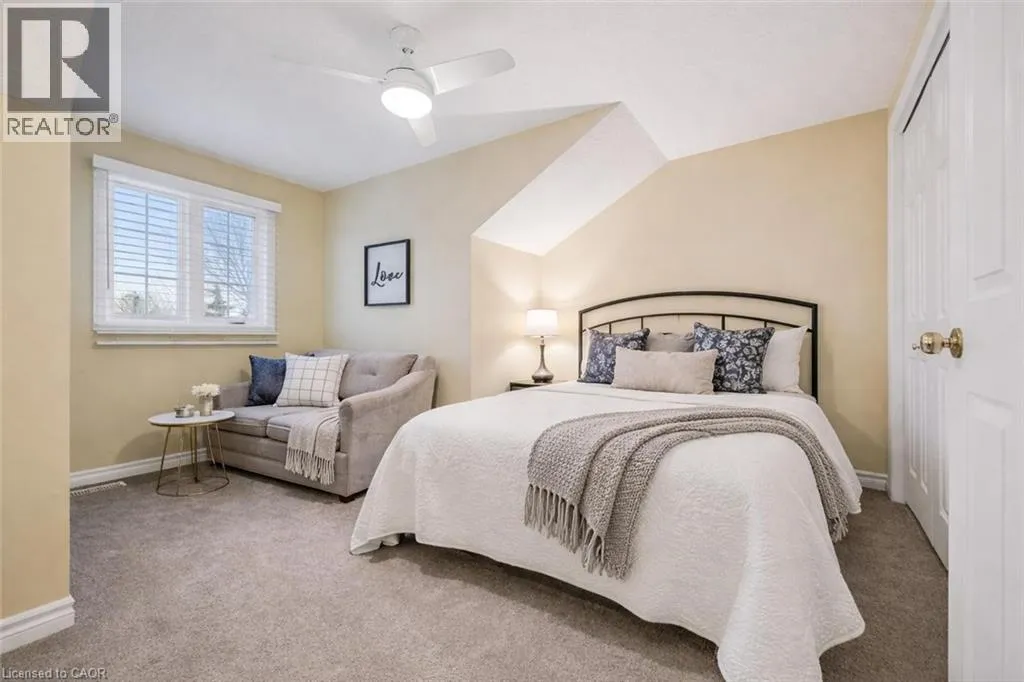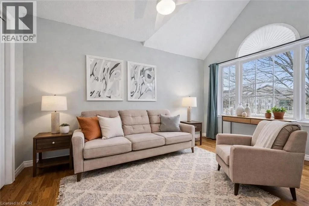 McTavish St 32 Scott St is a spectacular 4-bdrm end-unit bungaloft townhouse backing onto greenspace, offering the perfect blend of low-maintenance living, functional space & unbeatable location in the heart of Fergus! Step inside to bright & inviting eat-in kitchen W/timeless subway tile backsplash, high-end S/S appliances & ample counter spaceâdesigned for both everyday living & effortless entertaining. The adjacent living room is truly the heart of the home W/engineered hardwood floors, vaulted ceilings and an abundance of natural light pouring in through large windows & sliding doorsâseamlessly connecting your indoor & outdoor living spaces. Main floor is thoughtfully designed for both convenience & flexibility. Spacious primary bdrm W/double closet & 4pc ensuite with shower/tub combo. At the front of the home, an add'l bdrm W/vaulted ceilings, large window & double closet provides incredible versatilityâperfect as a home office, formal dining area or sitting room. Youâll also find convenient main-floor powder room with oversized vanity, along with main-floor laundry to simplify day-to-day living. Upstairs youâll find 2 add'l bdrms both with double closetsâalong with 4pc bathroom making this an ideal setup for families, guests or multi-generational living. Unfinished basement offers excellent potential complete with a bathroom rough-in & ready for your finishing touches. Notable updates: new water softener, furnace (2023) & roof (approx. 2015). Step outside to private back deck where mature trees create a peaceful low-maintenance outdoor space. Backing directly onto J.D. Hogarth Public School, youâll enjoy added privacy with no rear neighbours & wide-open greenspace behind. Around the corner from Millburn Park Splash Padâperfect for summer days with the kids & mins from shopping centres offering all the essentials. Plus enjoy everything downtown Fergus has to offer from charming shops & local restaurants to scenic river walks. A true small-town feel with a vibrant community (id:27476)