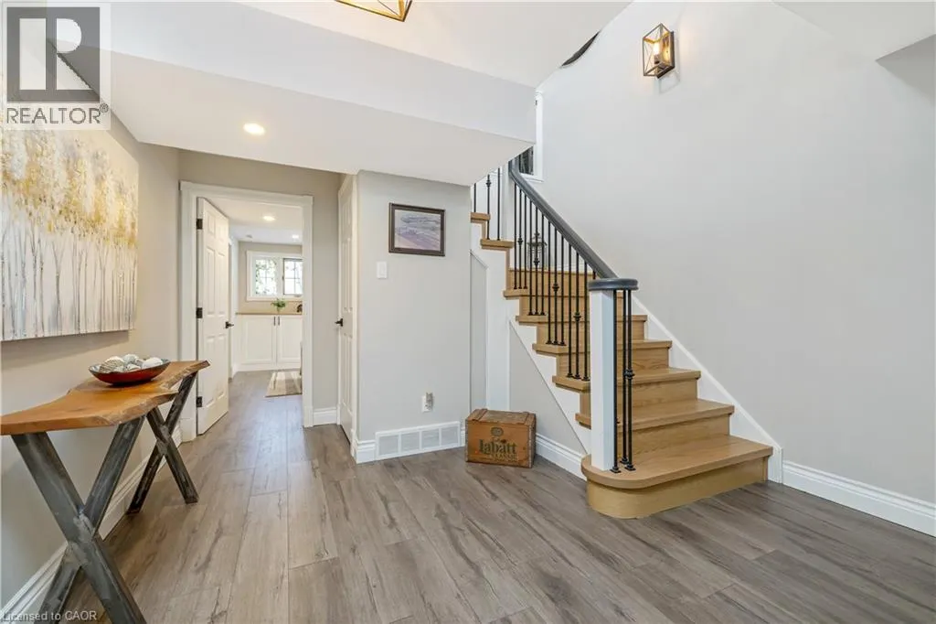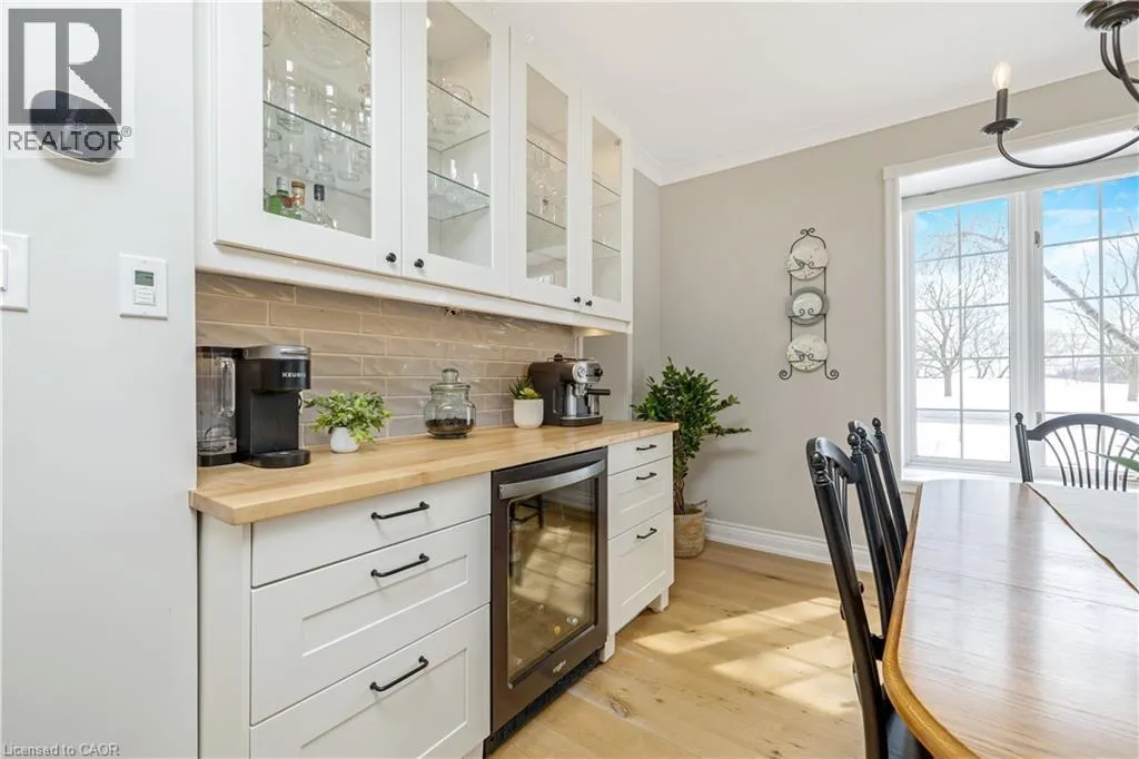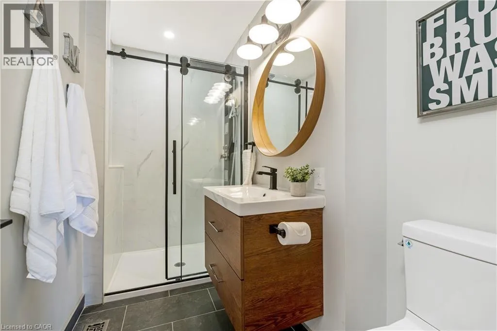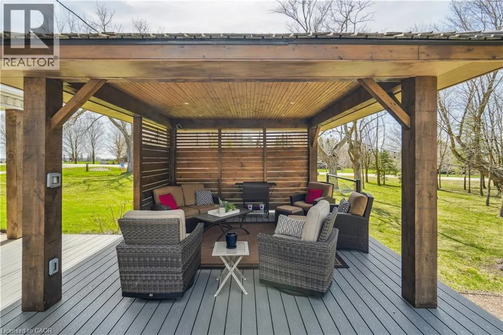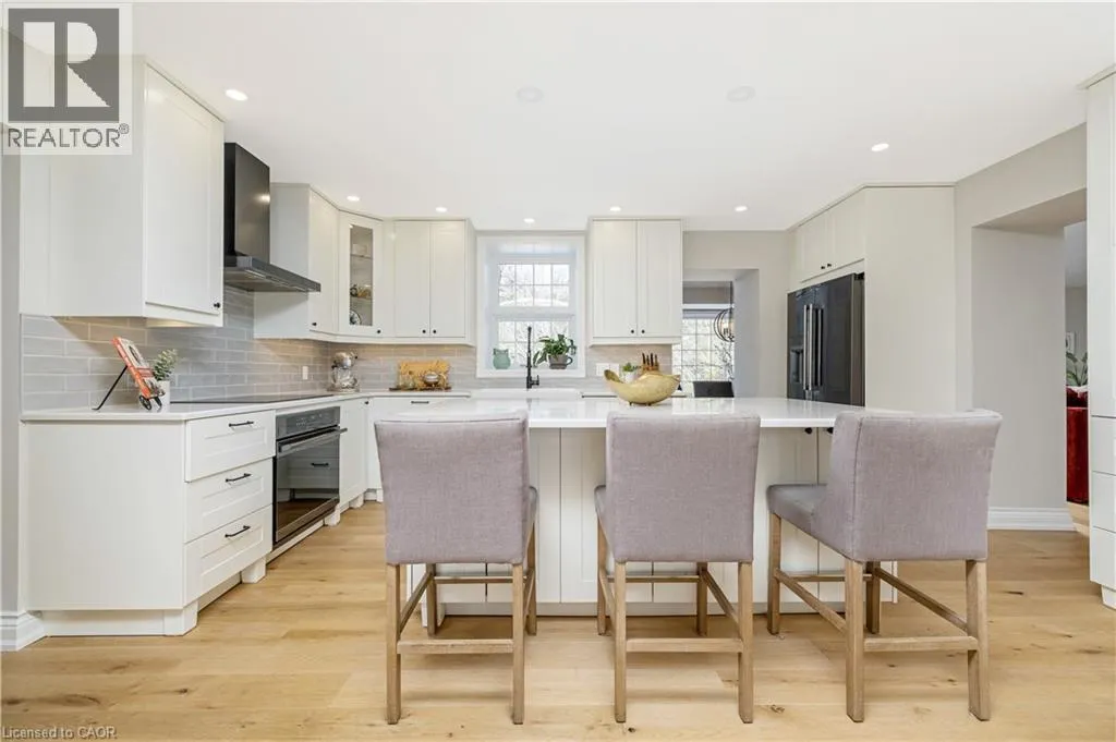 Hwy 6 to Grafraxa St E to Second Line This enchanting stone home on a meticulously landscaped 1.98-acre lot, originally built in 1906, beautifully blends timeless history with contemporary living. The original stone craftsmanship stands as a testament to its heritage, while thoughtful renovations provide the perfect balance of old-world charm and modern comfort. This home features three spacious bedrooms, including a luxurious primary suite with a large walk-in closet, custom built-ins, and a striking shiplap ceiling. The spa-inspired 5-piece ensuite includes a deep soaking tub and a glass-enclosed rain shower, offering a serene retreat. The additional bedrooms share a stylishly updated 3-piece bathroom. At the heart of the home is a beautifully renovated gourmet kitchen, complete with stainless steel appliances, a classic farmhouse sink, and a spacious center island, ideal for both cooking and entertaining. The dining room, which features a built-in coffee bar, flows seamlessly into the cozy living room, creating a warm and inviting ambiance. Natural light pours into the charming breakfast nook, which opens onto a low-maintenance Trex deck with sleek glass railings. This outdoor space leads to a 15' x 14' cedar-shake gazebo, an ideal setting for enjoying a morning coffee or hosting evening gatherings. The family room, with its vaulted ceiling, recessed lighting, and inviting gas fireplace, provides the perfect spot to unwind. A den at the front of the home, showcasing exposed stone walls, offers a quiet retreat for reading or reflection. Completing the main floor is a convenient mudroom with garage access, main-floor laundry, and a stylish powder room. The finished lower level includes a bright recreation room with a gas fireplace, a kitchenette with a separate entrance, and a 4-piece bath. The original basement, with exposed stone walls and concrete floors, offers versatile space for storage or imagination. (id:27476)