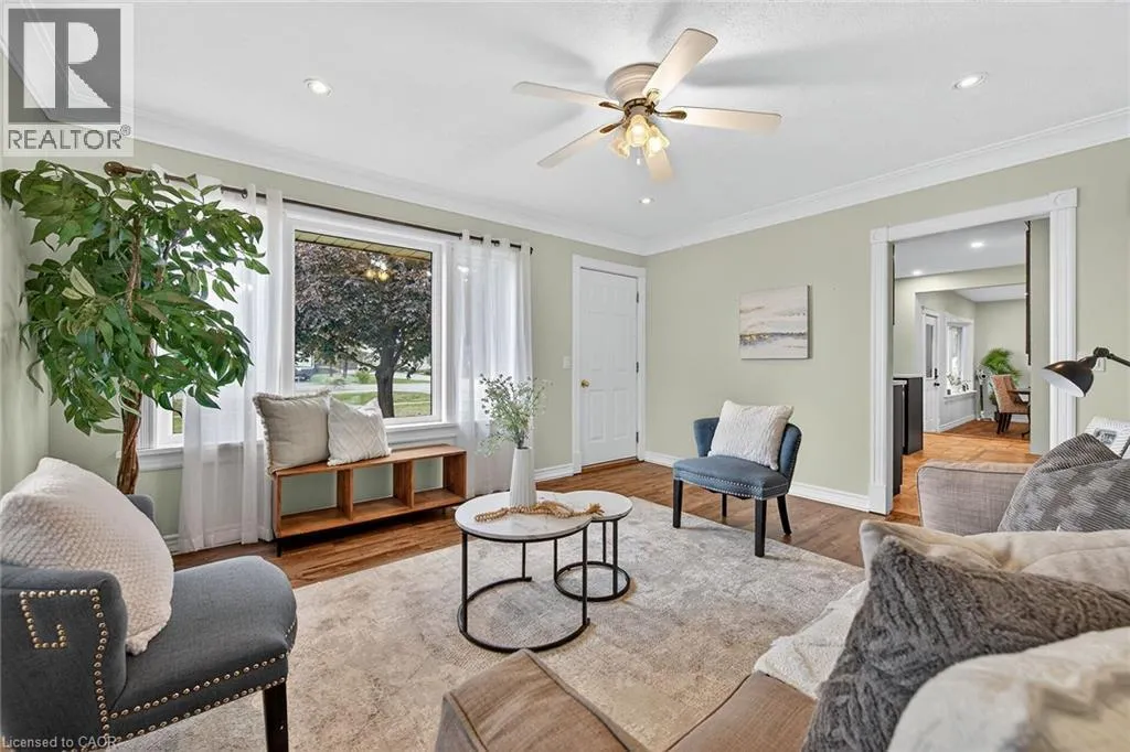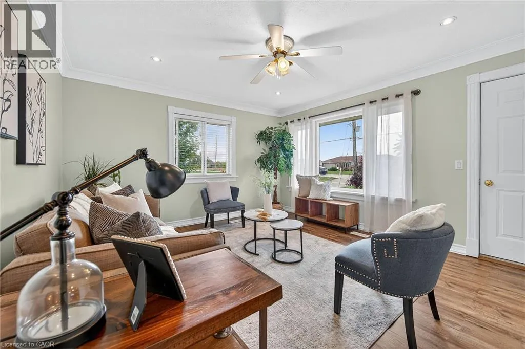 HIGHWAY 3 TO HALDIMAND RD 20 TO RIGHT ON HALDIMAND RD 12 (FISHERVILLE RD) Stunning, Beautifully updated all brick Bungalow in sought after family-friendly Fisherville on desired 70' x 165' lot. Great curb appeal with 4 car paved driveway, tidy landscaping, & oversized deck with hot tub overlooking large back yard. The flowing interior features 2 bedrooms, 1 full bathroom and an open-concept layout filled with natural light, modern decor, and stylish lighting throughout. The upgraded kitchen is a true highlight showcasing rich cabinetry, quartz countertops, & subway tile backsplash, updated vinyl flooring that flows seamlessly into the spacious family room perfect for everyday living & entertaining, additional MF living room, & 4-piece bathroom with a relaxing soaker tub, custom vanity, & corner shower. The partially finished basement extends the living space with a generous sized rec room complete with a built-in entertainment unit, plus ample storage. Conveniently located close to the community center, schools, parks, & walking trail. Easy access to Lake Erie amenities, Cayuga, Port Dover, and just a 40-minute commute to Hamilton and Highway 403. Move-in ready and ideal for first-time buyers, small families, or downsizers looking for a welcoming community to call home. Enjoy Fisherville Living at itâs Finest! (id:27476)