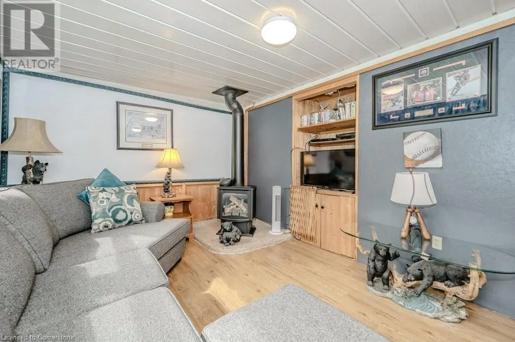 NORTH ON HIGHWAY 6 NORTH , TURN WEST INTO DRIVEWAY 925 This beautiful bungalow situated on just under half an acre! Don't let the highway alarm you - the rear yard is peaceful and quiet! Meticulously maintained newer furnace/AC, windows, doors, roof, driveway, siding, soffit, fascia, eves, deck... the list goes on! (full list available) This 1400sqft 2-bedroom bungalow with main floor den as well is located in Millgrove, is just what you're looking for! This charming home features 2 good-sized bedrooms, one 4pc bathroom, a large eat-in kitchen that has been recently updated, new quartz countertops, and backsplash. The living room includes a wood-burning fireplace, new flooring & a large bay window. The family room has another gas fireplace, perfect for all those cold winter nights. The lower level will has plenty of storage and a bonus finished area for extra bedroom if needed. The garage was recently insulated and drywalled as well! Enjoy entertaining outside, on your large 269 ft deep yard, where you will find the 4-year-old pool at the back of the beautifully landscaped, peaceful property. (id:27476)