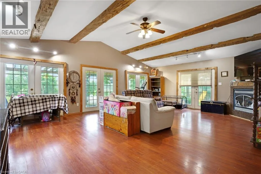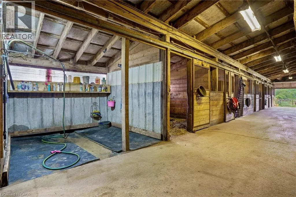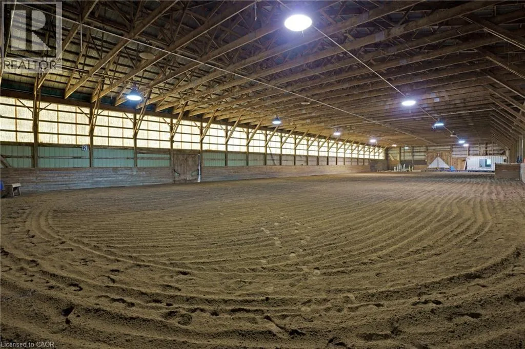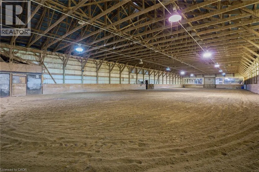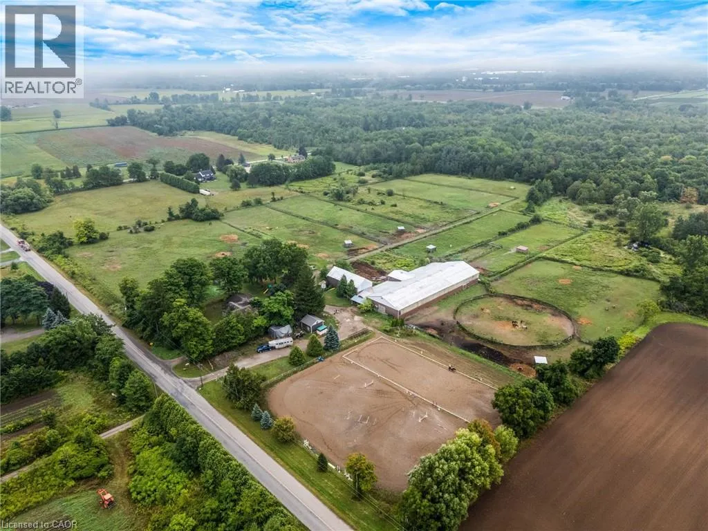 Highway 6 to Concession 5 W VERSATILE FARM PROPERTY PERFECT FOR HORSE ENTHUSIASTS! Discover 45.74 acres of privacy and opportunity with this versatile farm, ideally located close to Hamilton, Brantford, Guelph, Cambridge with quick access to 401 and 403. Perfect for equestrian enthusiasts, trainers or hobby farmers, this property offers a unique blend of lifestyle, function, and income potential. The main residence is a charming 3-bedroom bungalow with room for customization featuring a large great room with 3 french doors leading to the wrap around porch overlooking green pastures. Steps from your door, the property features a 2 storey workshop (approx. 20x25), original 80x40 bank barn with 6 stalls (10x11), a tack room, dry storage and complemented with a finished upper level classroom for summer camps, clinics, and more. An attached barn offers 24 additional stalls, a locker room, an additional tack room, a wash bay equipped with hot water, 2-piece bathroom and access to an upper-level approx. 900 sq ft (1-bed plus den, 1 bath) apartment ideal as barn staff accommodation or as additional rental income. The true highlight of the barn is the 60x190 indoor riding arena with a sand base, new LED lighting and overhead sprinkler system. The property is completed with 11 paddocks of varying sizes, an outdoor riding ring (approx 100x200), round pen and conservation protected forest with pond. Ample space for trailers, turnouts, paddocks, and more . All this, just a short drive to town amenities enjoy the serenity of country life without sacrificing convenience. Whether you're looking to grow your equestrian operation as a lesson barn or boarding facility or simply want to enjoy the wide open spaces, this property offers the perfect blend of land, lifestyle, and long-term value. Schedule your showing today! (id:27476)