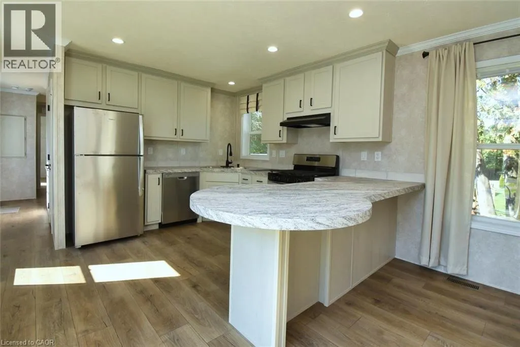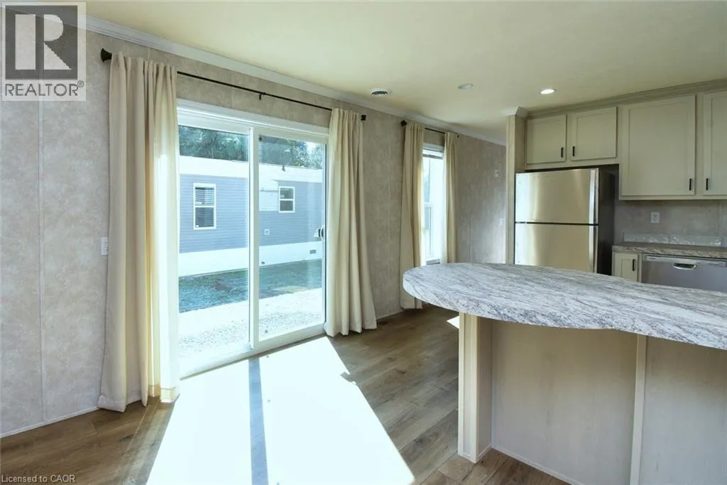 HWY 6 N (Freelton), west ON CONCESSION 10 W 1 1/4 kms to park entrance Rocky Ridge Estates brand new two bedroom Fairmont built beauty. Great park surrounded with nature - trees, hills and the seven KM dog walking adjoining trail. Open concept, very spacious year round living home on a great lot. A convenient location to hwy accesses, shopping districts and recreation ventures. Posession is flexible and can be immediate. Seller pays the GST. Call Listing realtor for details. Appointments anytime with convenient lock box access (id:27476)