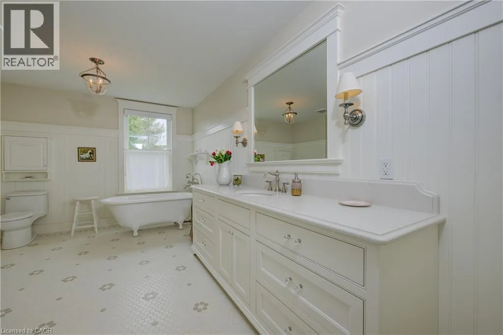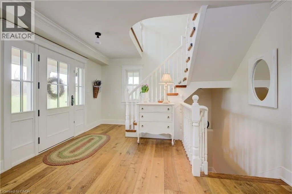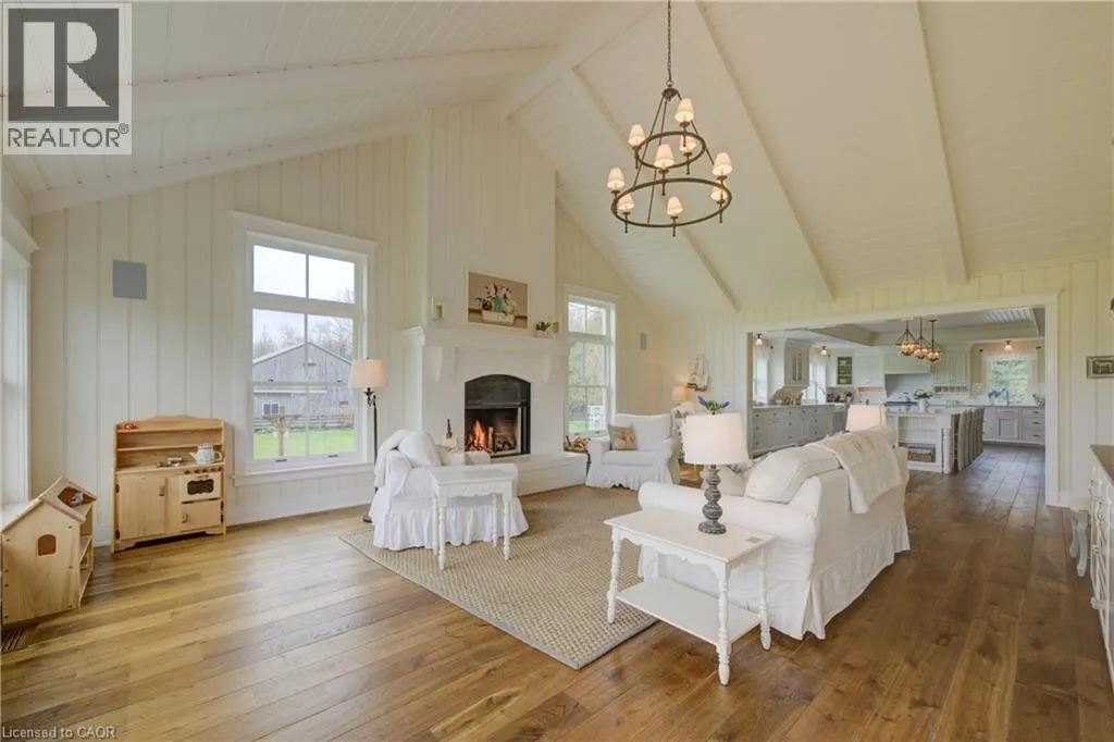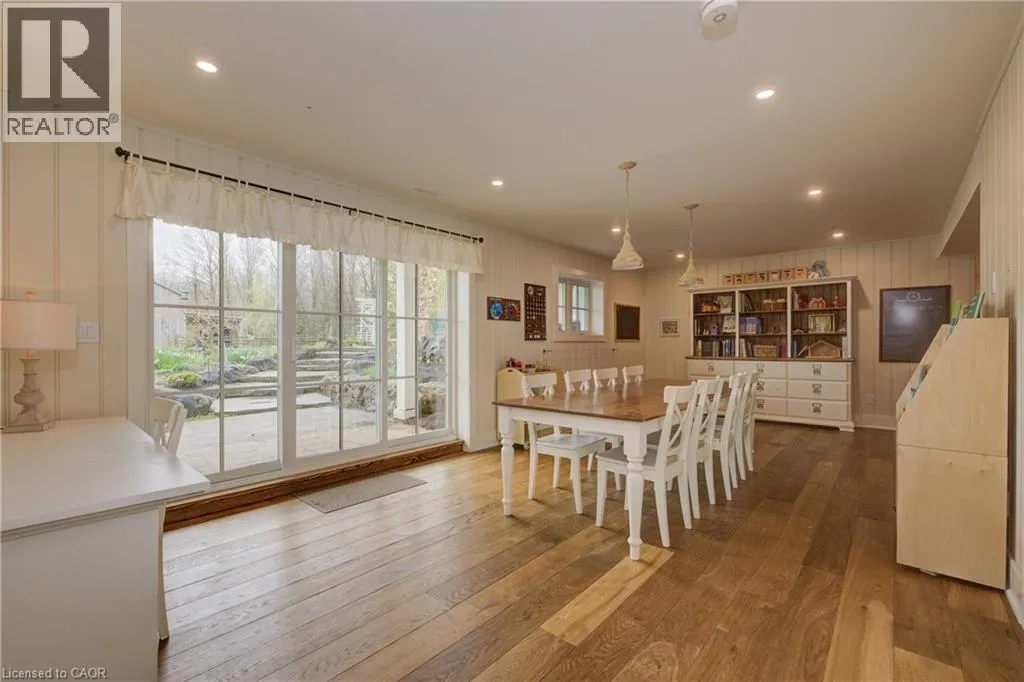 South off Maddaugh Rd Welcome to your dream country estate! Ideally, located on a quiet rd walking distance to the Mountsberg Conservation and close to Milton, Oakville and Burlington. This breathtaking property spans over ten acres of pristine land, offering a perfect blend of country living and luxury. A beautiful farmhouse, with over 7000 square feet of living space. This home offers everything for family, friends, and entertaining. Once inside, you will be welcomed by a spacious foyer that leads to a dreamy library, and then past an enchanting dining room with a 14-person table and gas fireplace. Next you'll be greeted by the heart of the home. An awe-inspiring kitchen featuring a magnificent island, adorable pantry, Subzero fridge, Miele double ovens, and a stunning 36-inch Lacanche range. Wide plank wood floors on all levels add a touch of warmth to every room. The primary wing offers beautiful views, ensuite bathroom, stately primary bedroom with double closets and a personal office or dressing room. Open from the kitchen, the cathedral ceiling living room is adorned with a Rumford fireplace. Notice the views and light streaming in from new Anderson Windows all around. To tackle the farm fun a well appointed garage, a mudroom and laundry room off side and back entrance. Outside, a rolling pasture, beautiful barn with separate well, paddocks, heated workshop and tack room. Below, a bright walkout with five-piece bath, 3 bedrooms each with large windows, exercise room, large schoolroom/ rec room, a third fireplace, and radiant floor heating ensure comfort even on the chilliest of days. Two furnaces, a Veisman boiler, all-new plumbing and electrical, and a second laundry room give you peace of mind that your home will function as well as it looks. With 8 bedrooms and 5 bathrooms, there's ample space for everyone to unwind and relax. With picturesque views of paddocks, gardens, pasture, and forests right outside your window, this is how your family is meant to live. (id:27476)