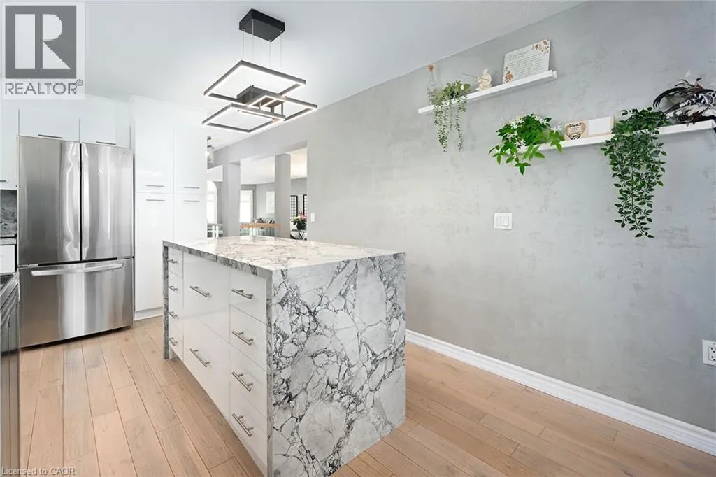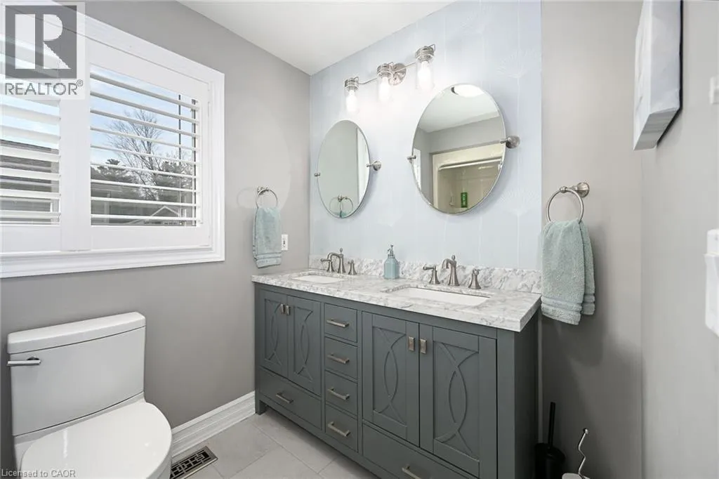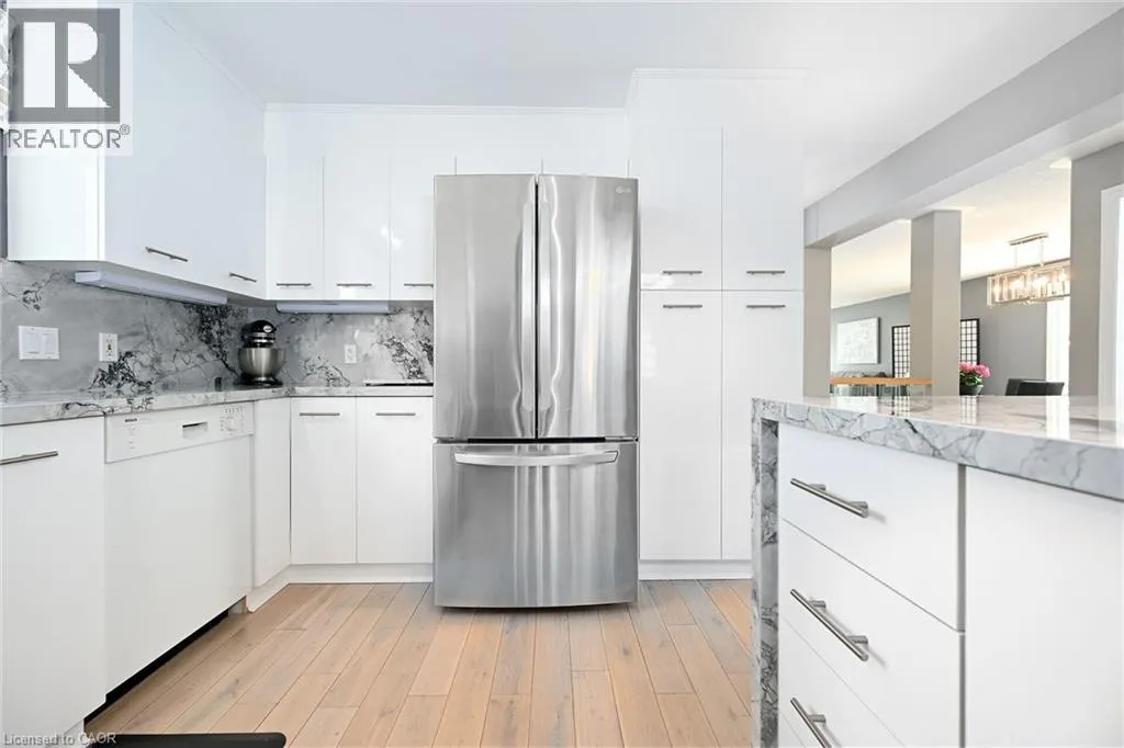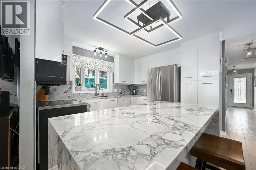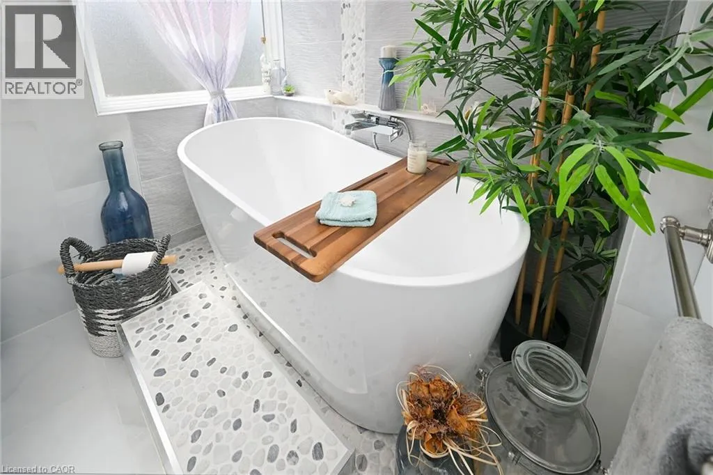 Glenariff & Concession 8 W Welcome to 106 Bushmill, beautifully updated from top to bottom, located on the most coveted street in the desirable Antrim Glen Adult Community. Impeccably maintained home, offering ample main level living space and a professionally finished basement. This bright and open bungalow has gorgeous hand-scraped oak floors. The living and dining rooms flow seamlessly together, perfect for family gatherings. The updated kitchen is stunning with quartz counters, including a quartz waterfall island with seating, custom cabinetry, quality appliances and a view of your award winning gardens. The cozy family room overlooks the backyard and has a walk out to your very private composite deck with screened in gazebo and stone patio. The landscaping and gardens are breathtaking, the proud recipient of several awards! The curb appeal is 10+ with your charming front porch and cascading water-feature. An in-ground sprinkler system provides carefree maintenance. Back inside, the main level offers two spacious bedrooms, including a primary retreat with walk-in closet, and two full bathrooms including a dreamy soaker tub. The updated glass railing leads you to the finished basement, featuring new carpet, two large bedrooms, a recreation room, two piece bathroom (with space for a shower) and a utility room with lots of storage. The home has been freshly painted in neutral designer decor. Custom window coverings adorn the windows. Attached garage with access through the main floor laundry room as well as to the backyard. Antrim Glen is conveniently located between Waterdown, Cambridge and Guelph. Offering a vibrant lifestyle community with heated salt water pool, sauna, BBQ area, a lounge and kitchen for large gatherings, billiards, shuffleboard, library, craft room, horseshoes, private vegetable garden plots, and wooded walking trails. Move in ready, all you need to do is unpack, relax and enjoy! (id:27476)