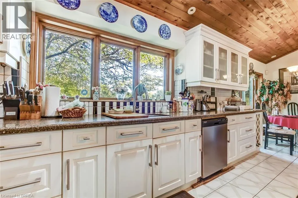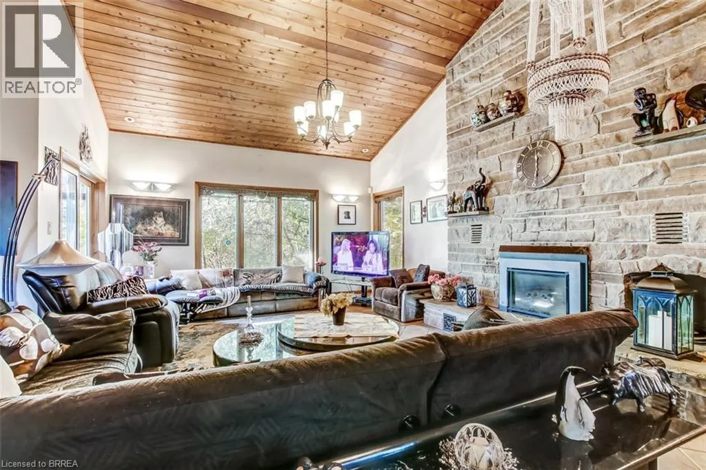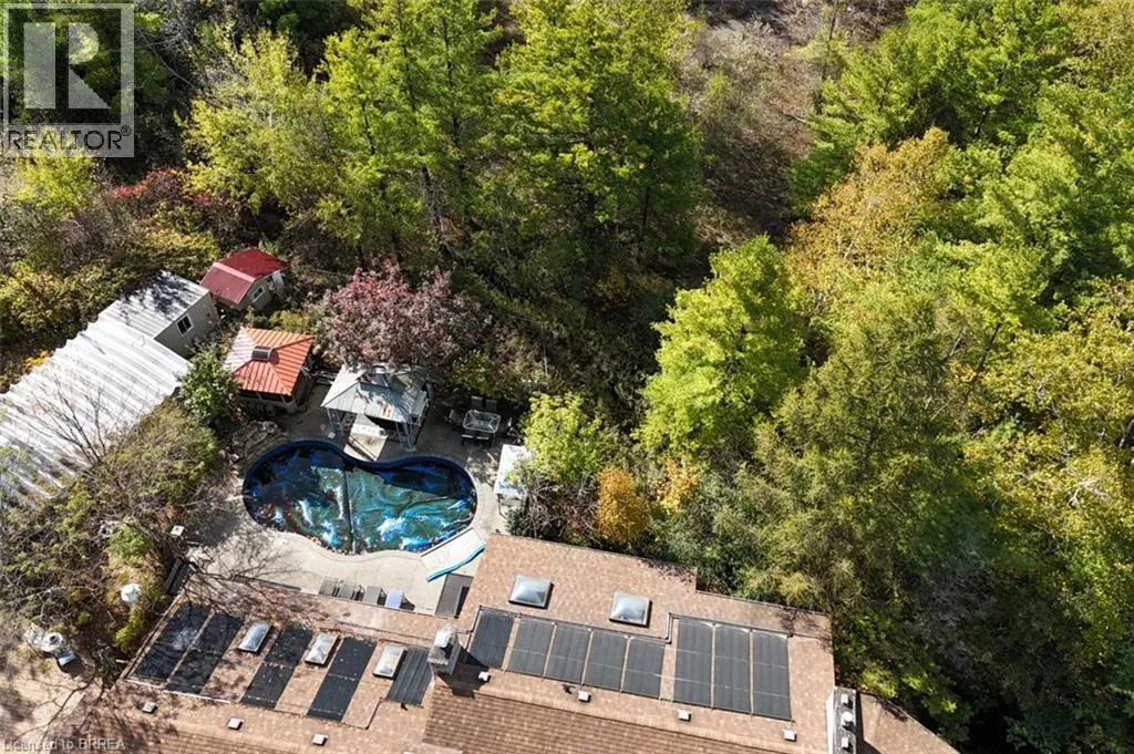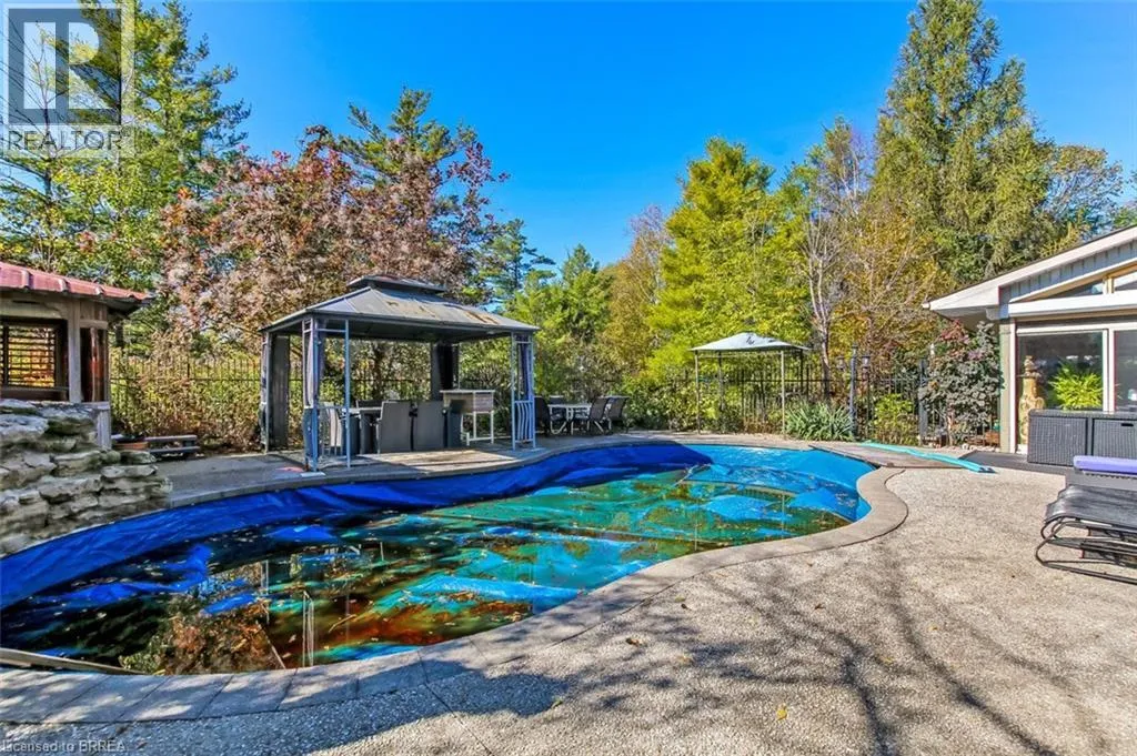 Middletown Road to Concession 5W Fantastic 91.74 acre hobby farm in sought after Flamborough. This very private property is mostly wooded with trails winding through the various species of trees. The steel building for horses or cows has hydro and a few acres of paddock with electric fencing. The greenhouse needs some repair. The main residence is almost 3000 square feet with 4 bedrooms, 3 bathrooms, an inground salt water pool & so much more. The open concept living room, dining room & kitchen are perfect for entertaining featuring soaring cathedral ceilings, a stunning stone fireplace, updated kitchen with granite counters and patio doors to the sunroom, hot tub & gorgeous salt water pool with a waterfall & outdoor fireplace. The large primary suite has an ensuite bath with a jetted tub & double shower, a huge walk-in closet & room for king size furniture. The other 3 bedrooms are all a good size with spacious closets. The main 5pc bath has double vanities. There is another 3 pc bath conveniently located near the pool & main floor laundry. Infloor heating runs throughout the bedrooms, bathrooms, living & dining rooms. The attached 3 car garage was converted to additional seasonal living space & storage & could be converted back. A 2 car carport sits beside the house to keep vehicles out of the elements. The additional worker's residence is a mobile home with a septic system, hydro and water. There is also a cute bunkie with hydro and various other storage buildings on the property. Salt water pool installed in 2010 is solar heated, pump and vacuum replaced 2025. New drilled well in 2024. Property is being sold as is as part of an estate. (id:27476)