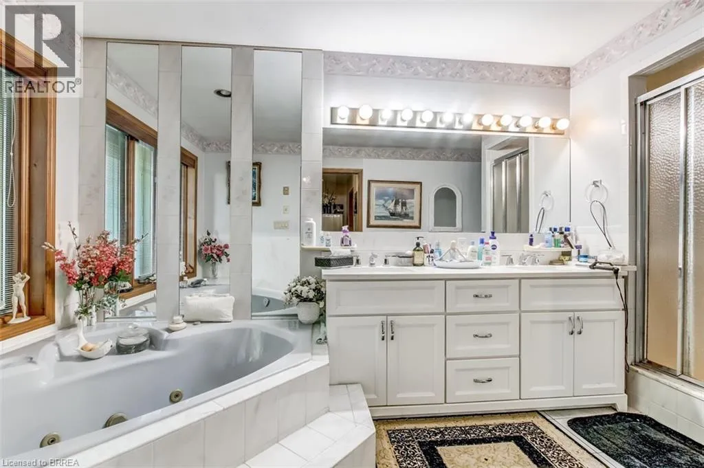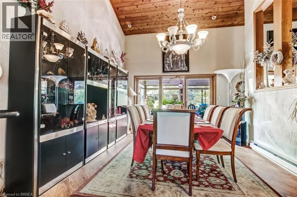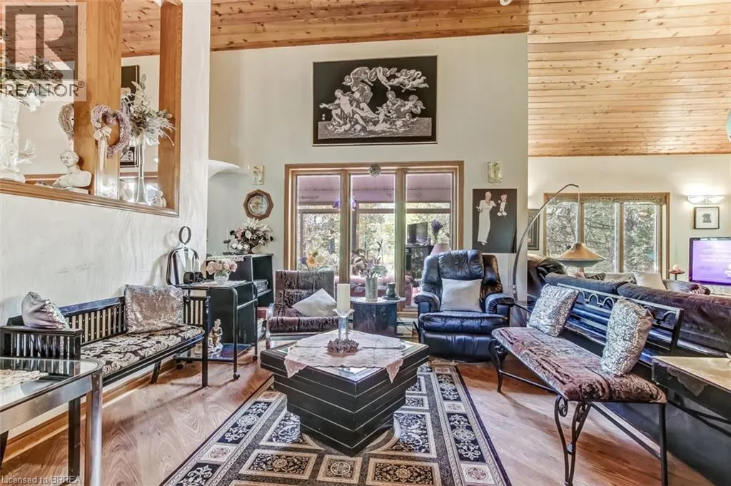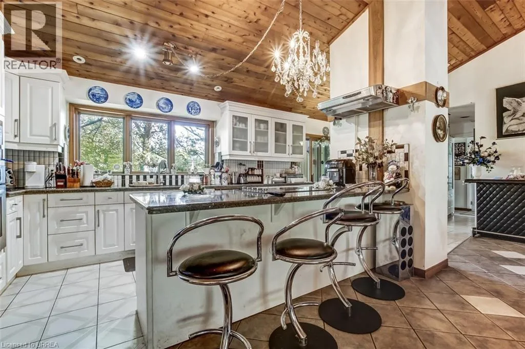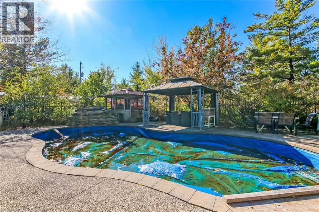Middletown right om Concession 5W Fantastic 91.74 acre hobby farm in sought after Flamborough. The main residence is almost 3000 square feet with 4 bedrooms, 3 bathrooms, an inground salt water pool & so much more. The open concept living room, dining room & kitchen are perfect for entertaining featuring soaring cathedral ceilings, a stunning stone fireplace, updated kitchen with granite counters and patio doors to the sunroom, hot tub & gorgeous salt water pool with a waterfall & outdoor fireplace. The large primary suite has an ensuite bath with a jetted tub & double shower, a huge walk-in closet & room for king size furniture. The other 3 bedrooms are all a good size with spacious closets. The main 5pc bath has double vanities. There is another 3 pc bath conveniently located near the pool & main floor laundry. Infloor heating runs throughout the bedrooms, bathrooms, living & dining rooms. The attached 3 car garage was converted to additional seasonal living space & storage & could be converted back. A 2 car carport sits beside the house to keep vehicles out of the elements. The additional worker's residence is a mobile home with a septic system, hydro and water. There is also a cute bunkie with hydro and various other storage buildings on the property. The steel building for horses or cows has hydro and a few acres of paddock with electric fencing. The greenhouse needs some repair. This very private property is mostly wooded with trails winding through the various species of trees. Salt water pool installed in 2010 is solar heated, pump and vacuum replaced 2025. New drilled well in 2024. Property is being sold as is as part of an estate. (id:27476)