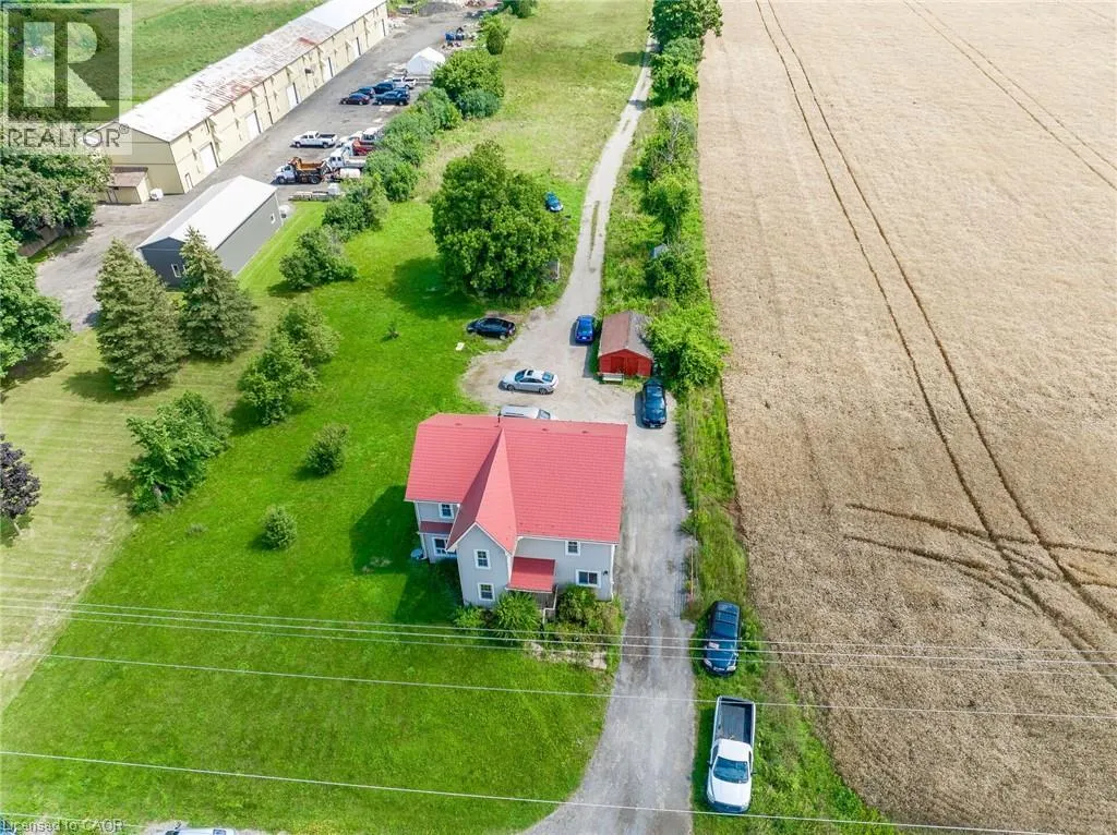 401 OR 403 TO HIGHWAY 6 Located on Highway 6 with quick access to Highways 401 and 403, this property offers an excellent commuter location just minutes from Burlington and Waterdown, with convenient access to amenities and services. Set on approximately 3 acres, the property provides ample space for farming and a variety of agricultural opportunities. The home features 4 bedrooms, including one bedroom on the main floor, along with two full bathrooms and an additional 4-piece bathroom for added convenience. The laundry room is currently located in the basement, while the main-floor laundry area may be converted into an additional bedroom if desired. The spacious main-floor primary bedroom extends from the front to the back of the home, offering a private and comfortable retreat. The large kitchen features an island and generous workspace, ideal for both everyday living and entertaining. New flooring installed in 2022 adds a fresh, updated feel throughout. The family room is filled with natural light, creating a warm and inviting living space. (id:27476)