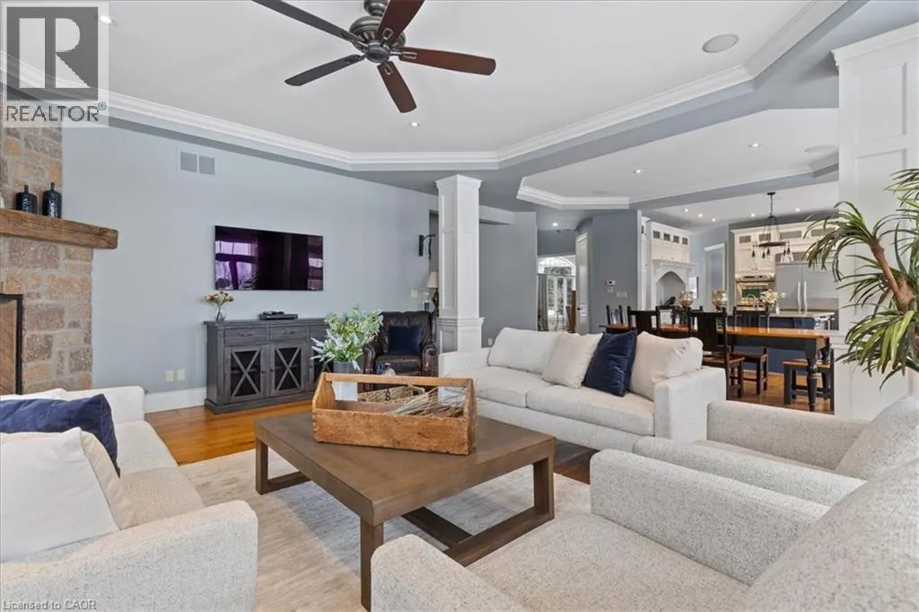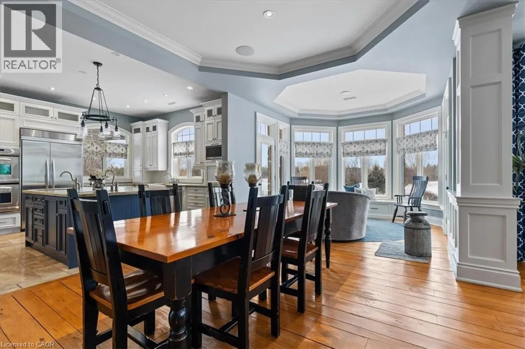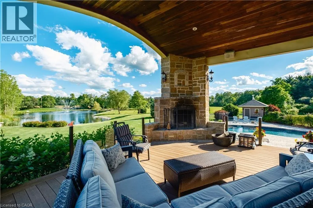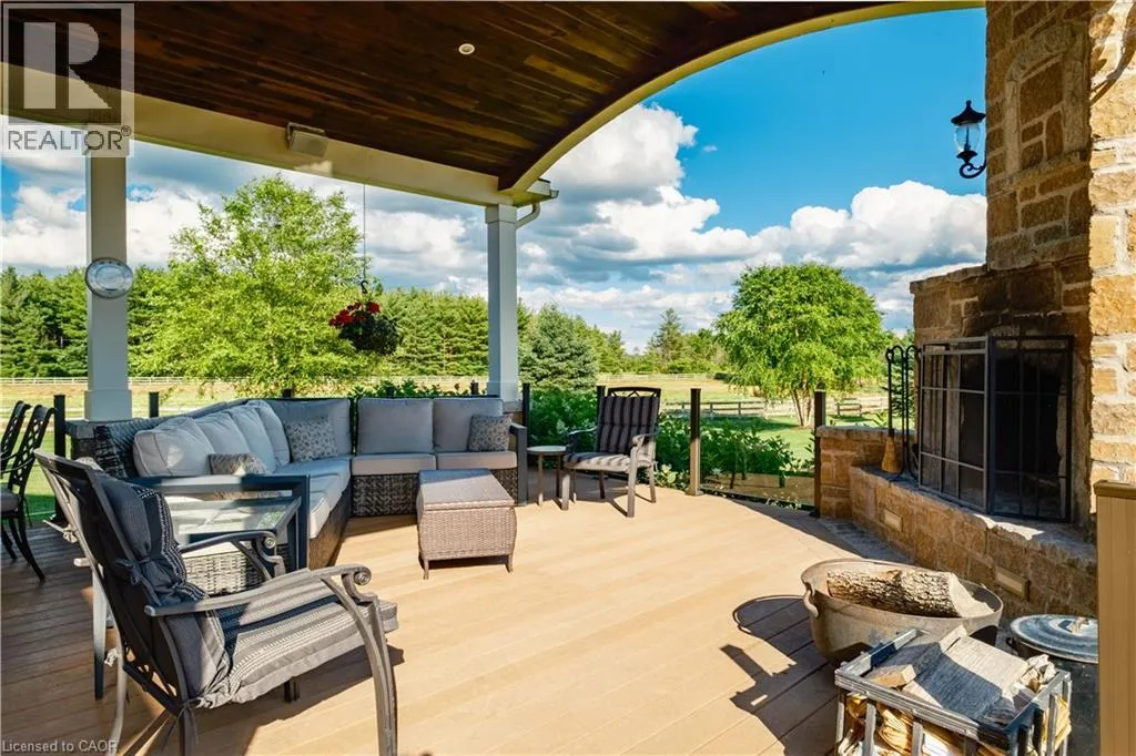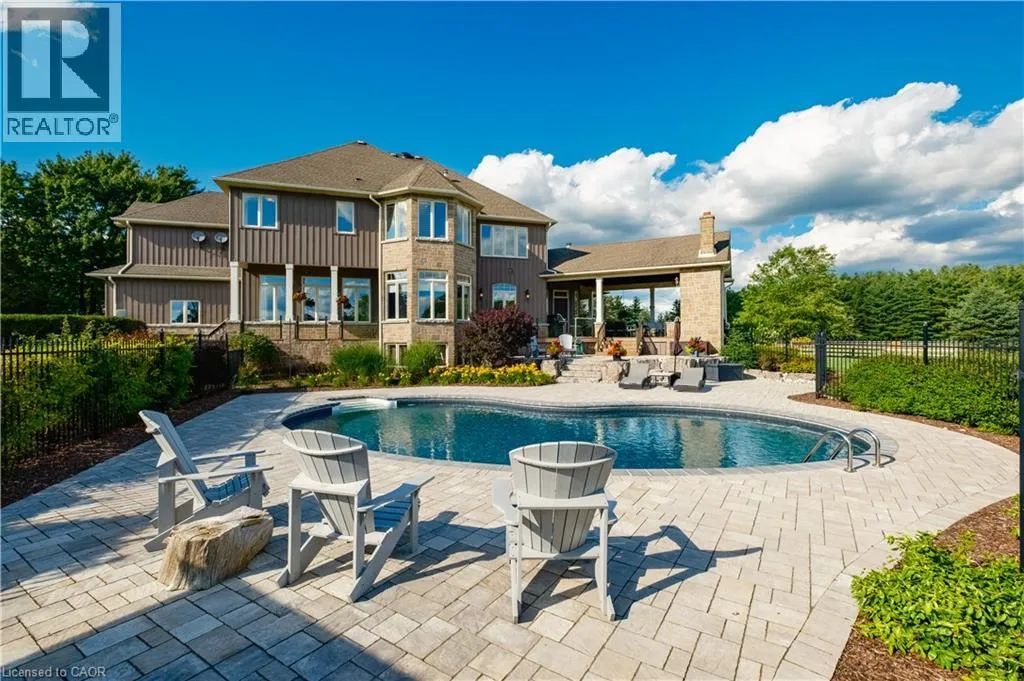HWY 6 TO CONCESSION RD 6 Scenic Flamborough is a part of southwestern Ontario known for farms and horse ranches. Located between Cambridge and Hamilton is this completely private, calendar book property on 90 acres. The home is set back from the main road with mature natural beauty as a buffer. A manicured tree line separates the driveway from the paddocks leading up to the home with approximately 15 acres of cultivable land, pastures, and gardens. The barn is suited for horses, complete with hydro, running water, four stalls, tack room, and massive hay loft. Attached to it is an oversized 3 bay garage providing space for utility vehicle storage and a workshop. In the centre of the property is a beautiful two story home at over 6800 square feet of finished space including the basement, with in-floor heating throughout the entire home and subdivided triple car garage. The board and batten/stone skirt exterior, wrap around porch, large windows, and soaring ceilings give the home its luxury farmhouse feel. It offers capacity for living and entertaining with 3 bedrooms plus a spa like primary suite, 6 bathrooms, beautiful living room with stunning fireplace, gourmet kitchen with butler pantry, and oversized dining room open to the nook and family room also featuring an elegant stone fireplace with timber mantel. The main floor office and laundry offer convenience. The basement was designed with recreation in mind offering a games room, wet bar and home theatre with surround sound and projection system. The basement level is also directly accessible from the garage via the second staircase. Relaxation extends to the outdoors with a backyard heated saltwater pool, 20' x 30' Muskoka room and wood burning stone fireplace and chimney. The views are gorgeous in every direction; to the south it overlooks a private acre pond complete with beach and aerating fountain, and behind it over 74 acres of forest with a 4 km network of trails for walking and riding. A truly stunning property! (id:27476)