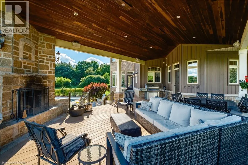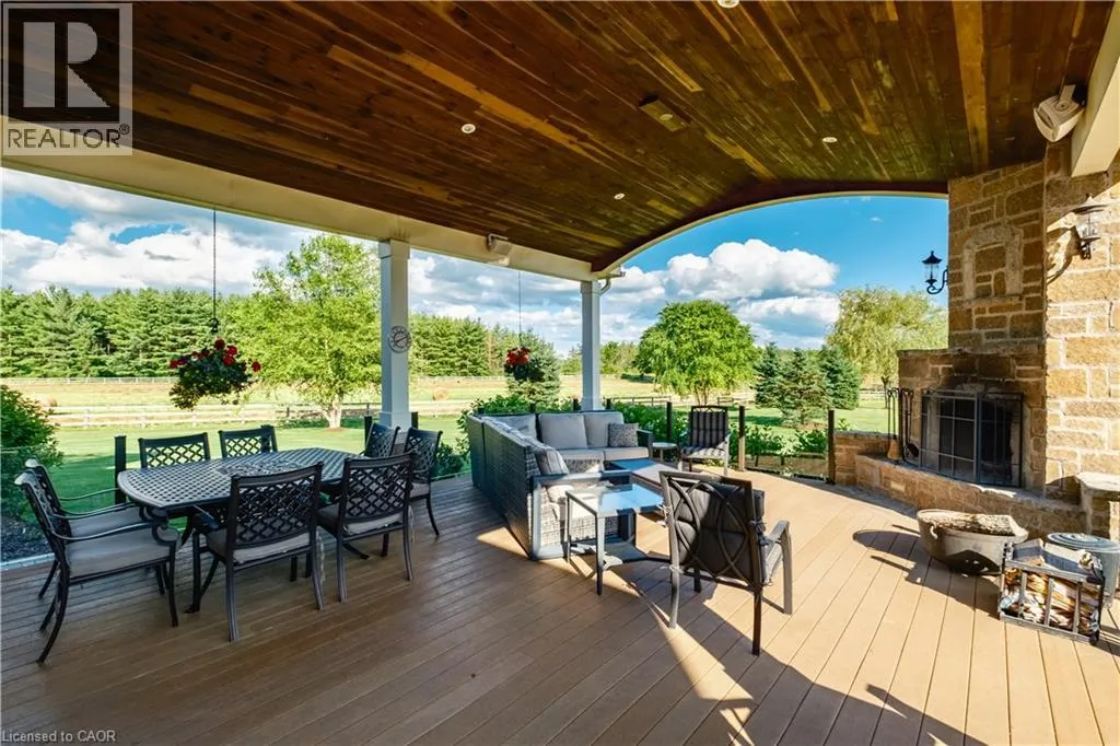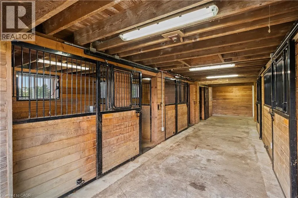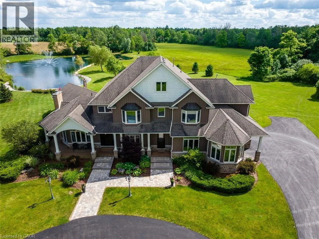 HWY 6 TO CONCESSION 6 RD WEST Scenic Flamborough is a part of southwestern Ontario known for farms and horse ranches. Located between Cambridge and Hamilton is this completely private, calendar book property on 90 acres. The home is set back from the main road with mature natural beauty as a buffer. A manicured tree line separates the driveway from the paddocks leading up to the home with approximately 15 acres of cultivable land, pastures, and gardens. The barn is suited for horses, complete with hydro, running water, four stalls, tack room, and massive hay loft. Attached to it is an oversized 3 bay garage providing space for utility vehicle storage and a workshop. In the centre of the property is a beautiful two story home at over 6800 square feet of finished space including the basement, with in-floor heating throughout the entire home and subdivided triple car garage. The board and batten/stone skirt exterior, wrap around porch, large windows, and soaring ceilings give the home its luxury farmhouse feel. It offers capacity for living and entertaining with 3 bedrooms plus a spa like primary suite, 6 bathrooms, beautiful living room with stunning fireplace, gourmet kitchen with butler pantry, and oversized dining room open to the nook and family room also featuring an elegant stone fireplace with timber mantel. The main floor office and laundry offer convenience. The basement was designed with recreation in mind offering a games room, wet bar and home theatre with surround sound and projection system. The basement level is also directly accessible from the garage via the second staircase. Relaxation extends to the outdoors with a backyard heated saltwater pool, 20' x 30' Muskoka room and wood burning stone fireplace and chimney. The views are gorgeous in every direction; to the south it overlooks a private acre pond complete with beach and aerating fountain, and behind it over 74 acres of forest with a 4 km network of trails for walking and riding. A truly stunning property! (id:27476)