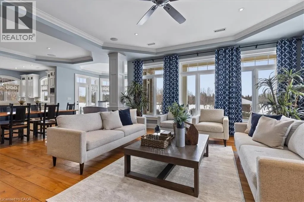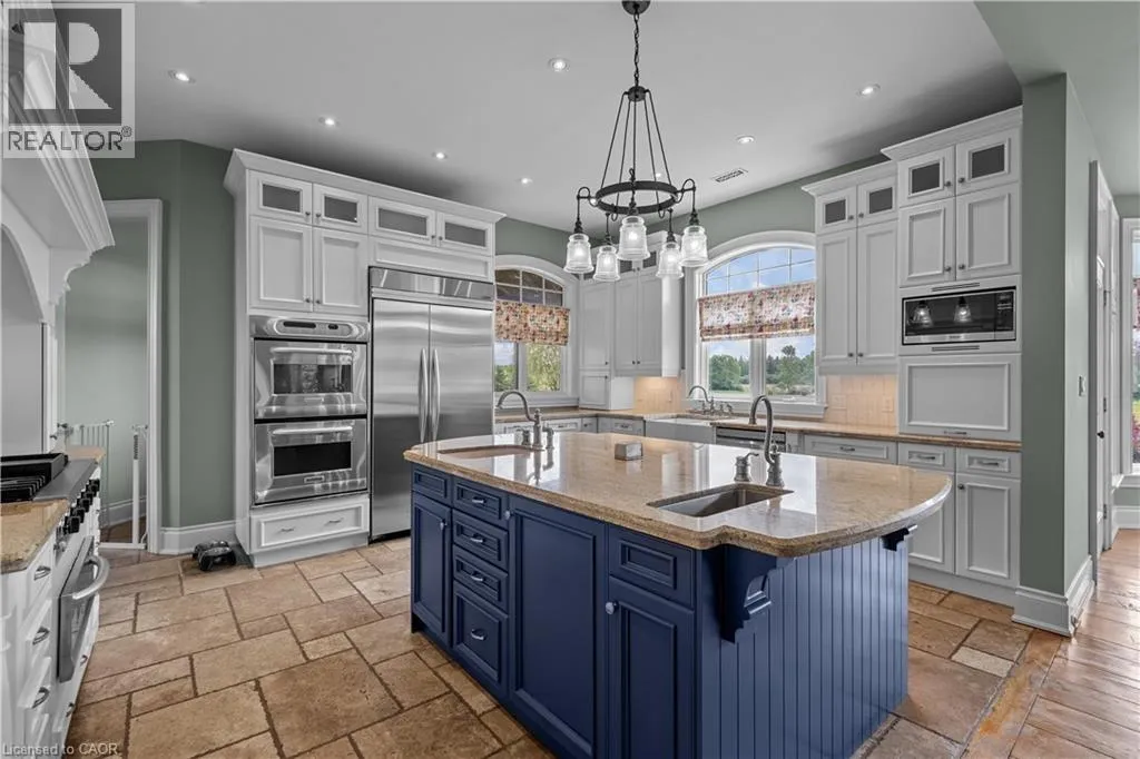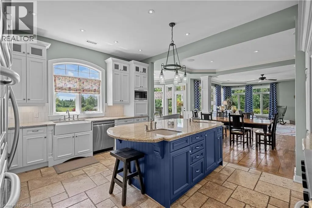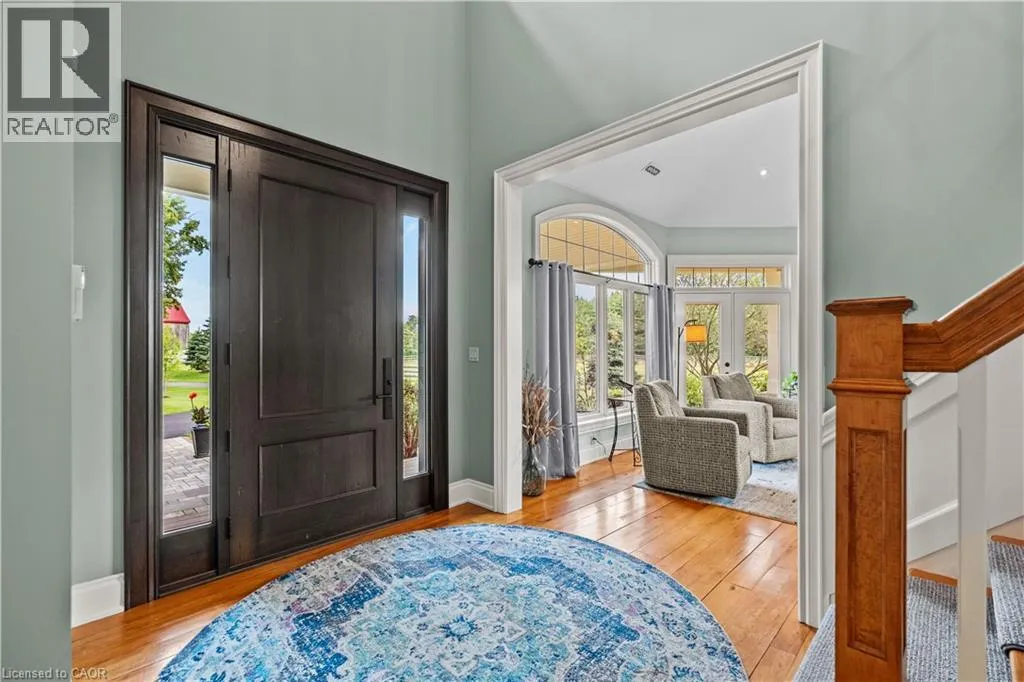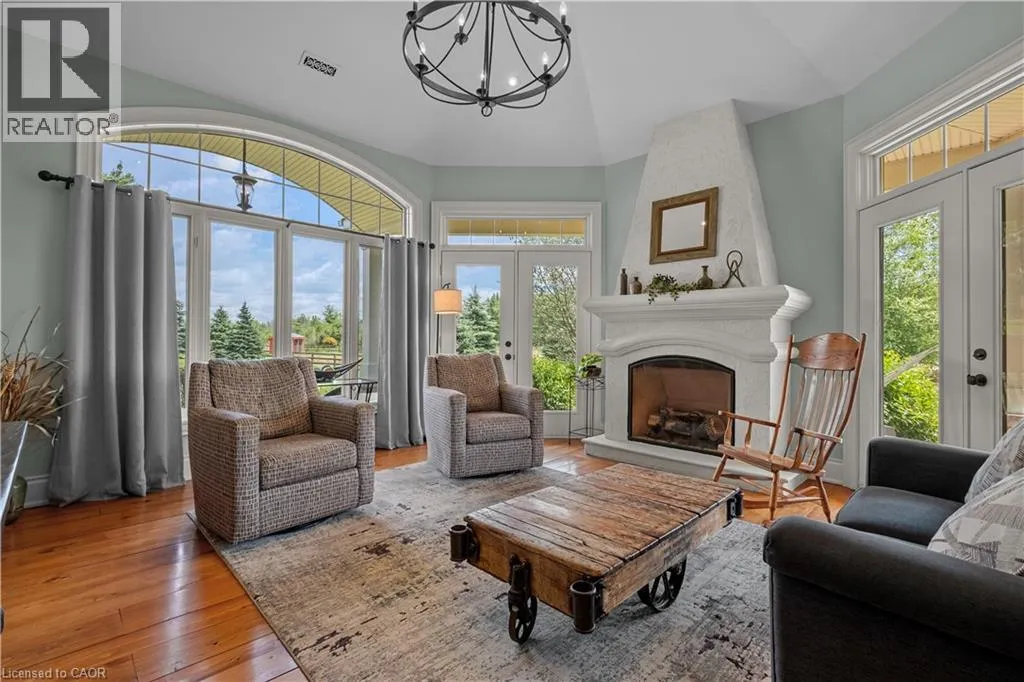 HWY 6 TO CONCESSION 6 RD WEST Scenic Flamborough is a part of southwestern Ontario known for farms and horse ranches. Located between Cambridge and Hamilton is this completely private, calendar book property on 90 acres. The home is set back from the main road with mature natural beauty as a buffer. A manicured tree line separates the driveway from the paddocks leading up to the home with approximately 15 acres of cultivable land, pastures, and gardens. The barn is suited for horses, complete with hydro, running water, four stalls, tack room, and massive hay loft. Attached to it is an oversized 3 bay garage providing space for utility vehicle storage and a workshop. In the centre of the property is a beautiful two story home at over 6800 square feet of finished space including the basement, with in-floor heating throughout the entire home and subdivided triple car garage. The board and batten/stone skirt exterior, wrap around porch, large windows, and soaring ceilings give the home its luxury farmhouse feel. It offers capacity for living and entertaining with 3 bedrooms plus a spa like primary suite, 6 bathrooms, beautiful living room with stunning fireplace, gourmet kitchen with butler pantry, and oversized dining room open to the nook and family room also featuring an elegant stone fireplace with timber mantel. The main floor office and laundry offer convenience. The basement was designed with recreation in mind offering a games room, wet bar and home theatre with surround sound and projection system. The basement level is also directly accessible from the garage via the second staircase. Relaxation extends to the outdoors with a backyard heated saltwater pool, 20' x 30' Muskoka room and wood burning stone fireplace and chimney. The views are gorgeous in every direction; to the south it overlooks a private acre pond complete with beach and aerating fountain, and behind it over 74 acres of forest with a 4 km network of trails for walking and riding. A truly stunning property! (id:27476)