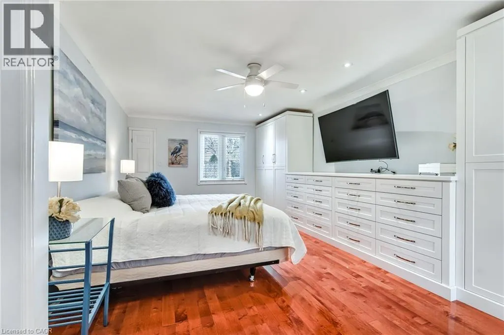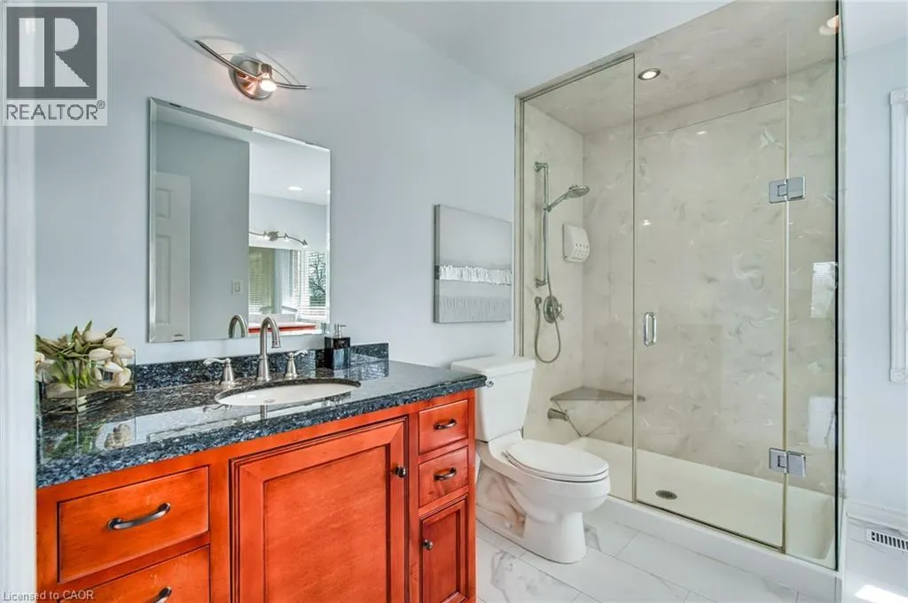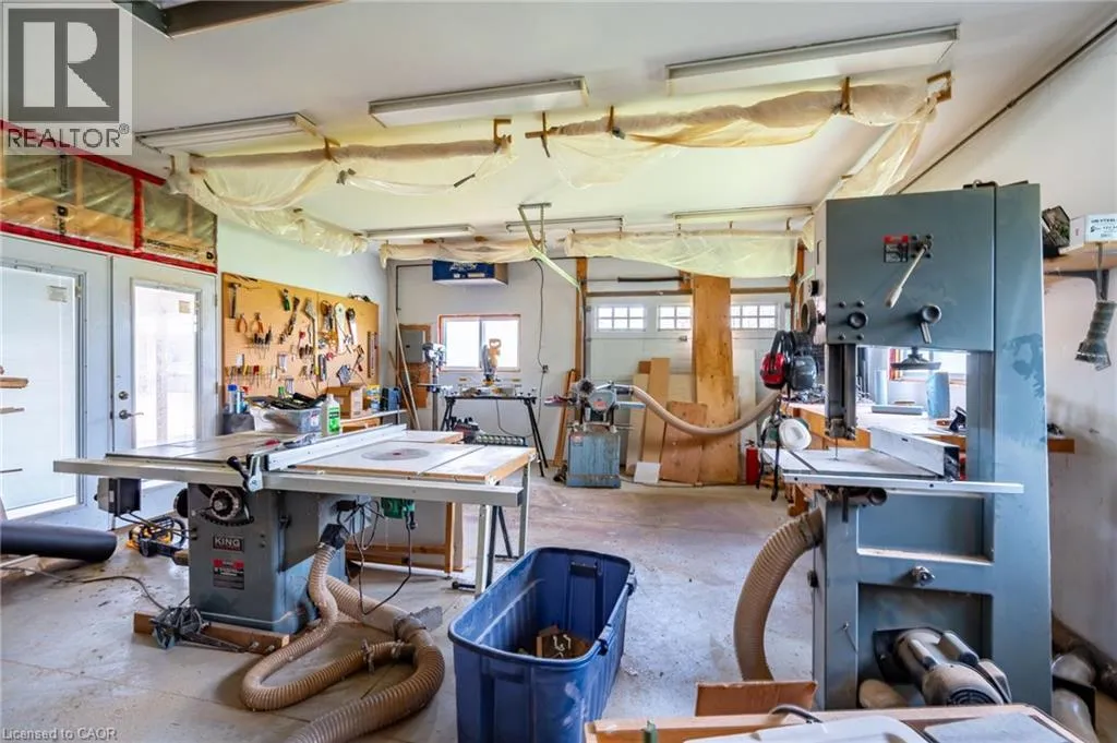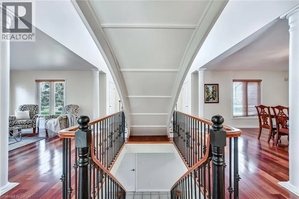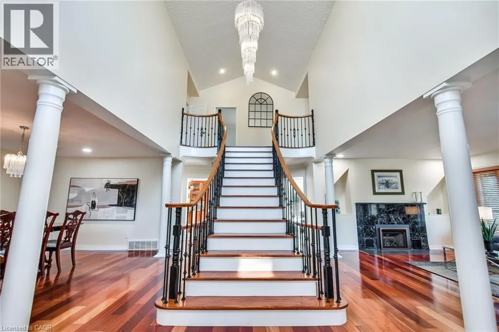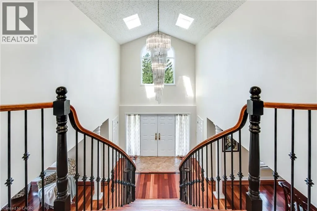 Hwy 6 or Centre Rd to 6th Conc Rd East. East of Centre Rd to John Martin Cres Situated on a quiet, beautifully manicured 0.99-acre lot in one of the most exclusive enclaves in the area, this impressive two-storey brick estate immediately captures attention with its elegant curb appeal, circular driveway, and landscaped centrepiece. This home has it all, offering four bedrooms, four bathrooms and over 4000 square feet of living space. No rear neighbours, an inground pool, hot tub, workshop & gazebo with a natural gas fireplace outside. The backyard is flat, unobstructed and surrounded by trees. Plenty of useable space for entertaining, family games/events and a huge ice rink. Breathtaking foyer illuminated by cascades of natural light and a stunning centre staircase. Exquisite Brazilian hardwood flooring flows seamlessly through the formal dining and entertainment spaces, where a natural gas fireplace adds a warm, ambiance ideal for both grand entertaining and intimate gatherings. The custom kitchen is a masterpiece of craftsmanship, featuring cherry maple oak soft-close cabinetry, under-cabinet lighting, heated floors, granite countertops, skylights, and a toe-kick central vacuum for effortless living. The step-down living room features large windows overlooking the private back yard, pot lights through-out and gleaming hardwood floors. The expansive primary suite impresses with two walk-in closets, custom built-in wall-to wall cabinetry, and an elegant ensuite featuring dual vanities and a walk-in shower. The fully finished basement features a spacious recreation room, a bathroom, a private office, an oversized storage room, and a separate walk-up staircase leading directly to the garage. Nestled in a prime location just five minutes from Waterdown, this location offers unrivaled access to excellent schools, parks, trails, golf courses, and fitness centers, a rare setting where every lifestyle amenity is within easy reach, yet the surroundings remain serene and exclusive. (id:27476)