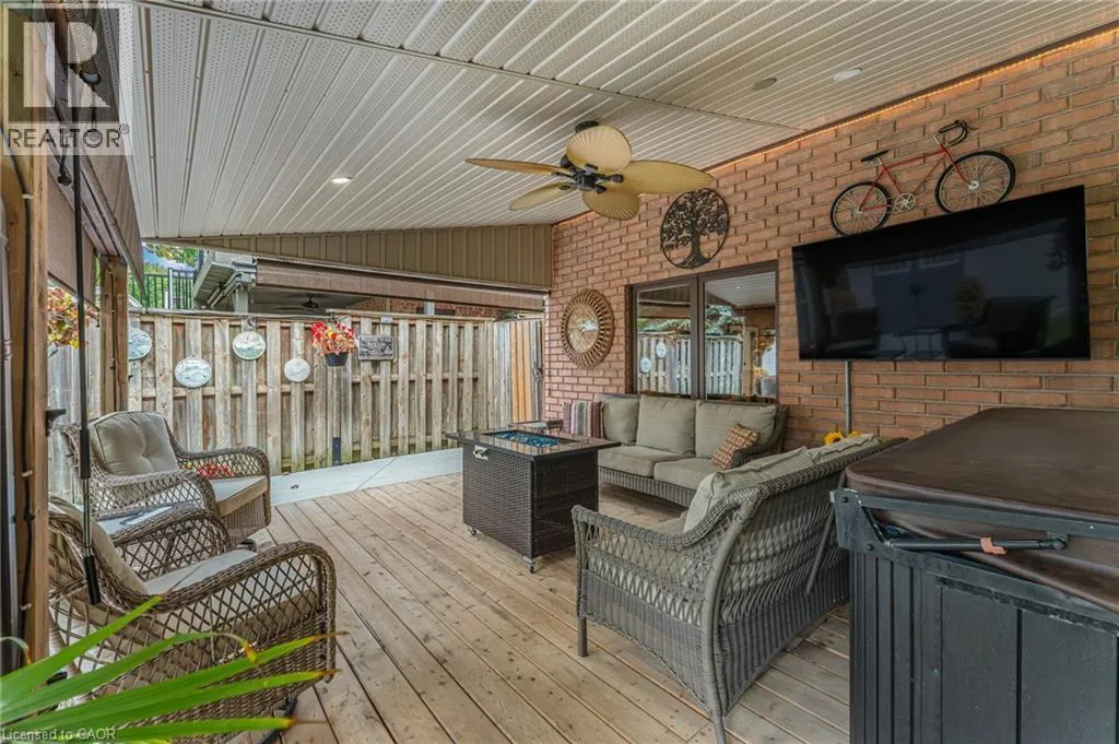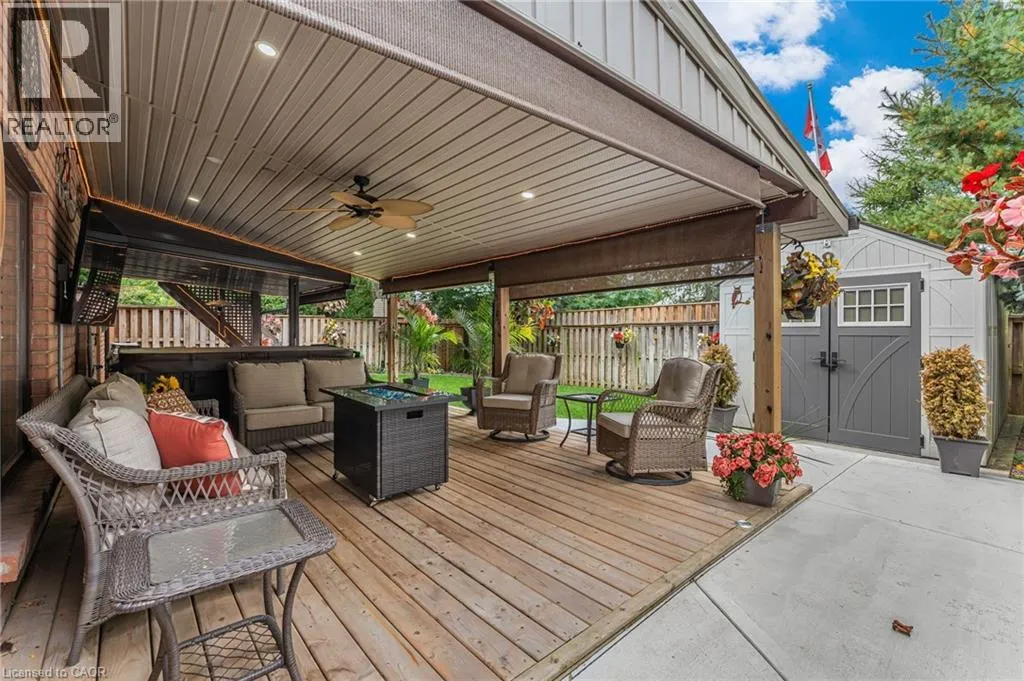 Hwy 20 to Haist St to Canboro Rd to Oakridge Blvd Welcome to this beautifully maintained 2+1 bed, 3 bath brick bungalow in the heart of Fonthill. This home combines quality updates with thoughtful details inside and out. From your cozy front porch, step into a bright living/dining space perfect for family gatherings. And just beyond this youâll find your recently renovated kitchen featuring granite countertops, pot filler, garburator, and stylish finishes â including a walkout to your covered deck, perfect for both everyday living and entertaining. Just down the hall you will find your guest and primary bedroom, and a custom full size dressing room for all the storage you could need. And your updated ensuite boasts a luxurious oversized walk-in shower and heated floors. Downstairs youâll find an entertainerâs dream â a fully finished basement with complete kitchen, rec space, gas fireplace, and sliding door access to your fully fenced yard. Here you will also find your spacious laundry room and a 4-pce bathroom with heated floors. Enjoy outdoor living on the expansive 36' x 16' covered rear patio, complete with ceiling fan, pot lights, sun screen roller shades, and a 6-person hot tub. The beautifully landscaped yard includes a garden shed with electricity, an underground sprinkler and drip irrigation system, plus two natural gas BBQ hookups for both upper and lower decks. The oversized heated double garage provides ample space for vehicles, hobbies, or storage. The furnace and A/C are recently updated (2019), and a complete RO-RO water purification system ensures fresh, clean water throughout. The home also features an R-20 garage door with Liftmaster opener and upgraded eavestroughs with Leaf Guard system (2024). This property blends modern updates, practical upgrades, and exceptional outdoor living in a desirable Fonthill location. Donât miss out! (id:27476)