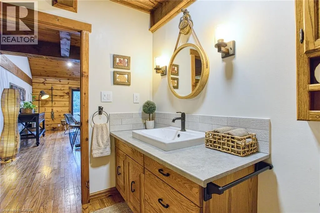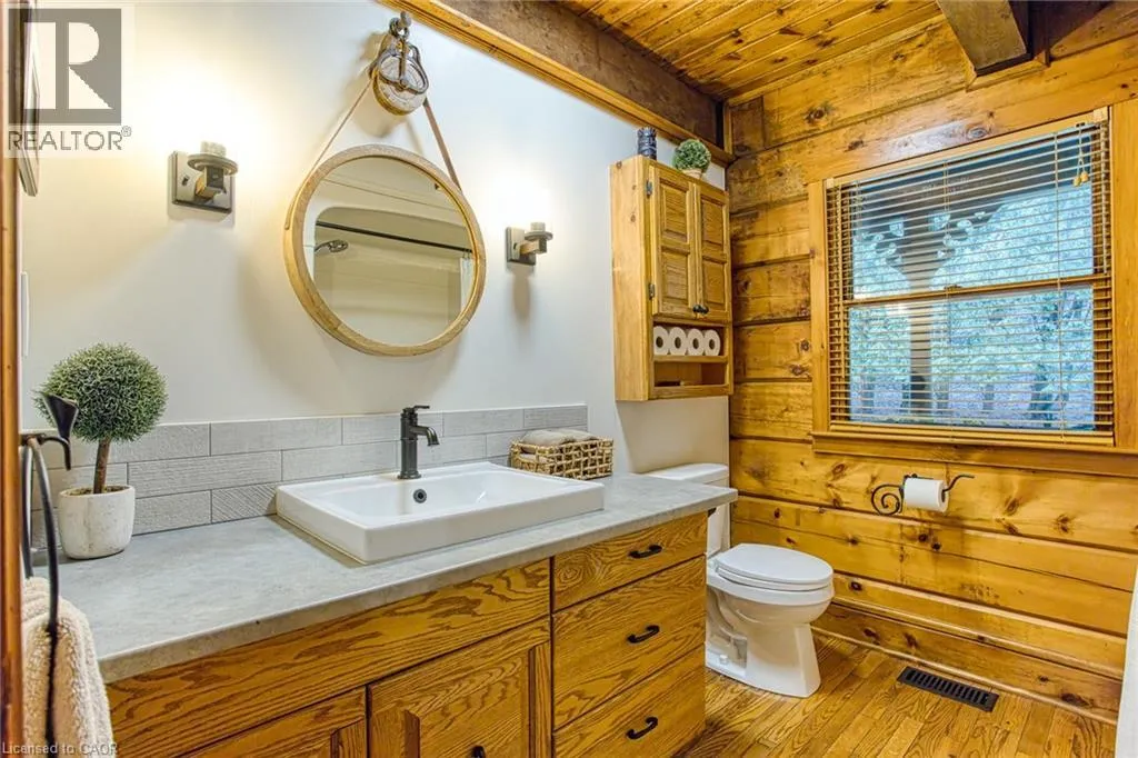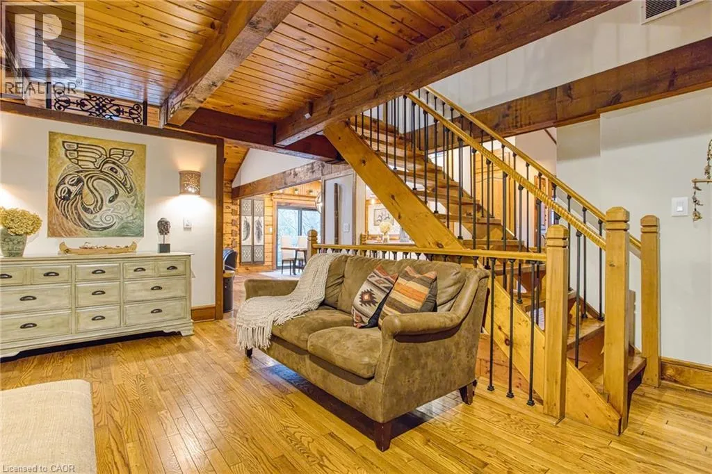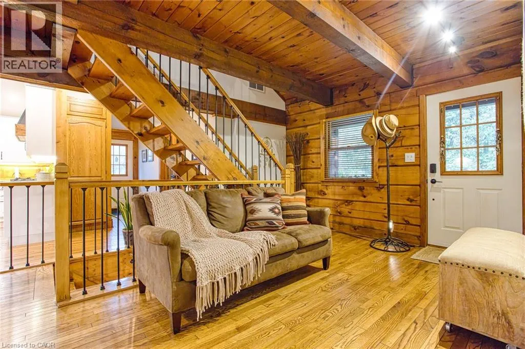 North East on Highway 20 E, North on Pelham St, follow to Hollow Rd Welcome to this stunning Confederation log home at 1970 Hollow Dr in Thorold. Masterfully crafted from authentic white pine and showcasing timeless dovetail joinery throughout. Nestled on a private 1.67-acre lot backing onto a picturesque pond, this property offers the perfect blend of rustic charm and modern comfort. Inside, youâll find soaring vaulted ceilings, luxurious $10,000 quartex countertops, and a relaxing sauna, creating a warm yet refined living experience. The home has been thoughtfully updated with a new furnace (2020), water filtration system (2020), and a new well pump (October 2025), ensuring peace of mind for years to come. The kitchen features a certified roof redone in 2023, complete with three inspections/permits and an impressive 50 year builder warranty. Additional upgrades include an electric vehicle charging plug, Starlink tower for high-speed connectivity, and invisible pet fencing for convenience and safety. Adding to the propertyâs unique appeal is a historic 1890 barn, full of character, with a permit currently in progress for an extension, offering exciting potential for future use. This one of a kind property combines heritage craftsmanship, modern upgrades, and serene natural surroundings, an exceptional opportunity to own a truly special home. (id:27476)