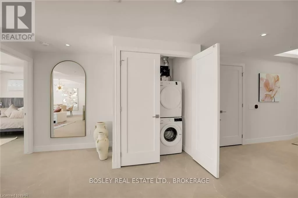 QEW to Sodom Road (Exit 16) to Ridgeway Road to Crystal Beach Drive (left) Lake Avenue (right) to 3823 Terrace Lane Located in historic Crystal Beach on the shores of Lake Erie - Canada?s ?South Shore?, the suites at THE PALMWOOD offer an incomparable lakeside living adventure only available to six fortunate participants; this is an exceptional once-in-a lifetime opportunity. Designed by ACK Michael Allan with interiors by B.B. Burgess & Associates, they are the perfect blend of sophistication, quality, and understated elegance. Each offers a great-for-entertaining open plan with walkouts to an impressively large private lakeside terrace. Expect a well-appointed galley-styed gourmet kitchen with an abundance of cupboard and counter space, pot-filler and filtered water faucets, under-valance lighting, impressive quartz counters with water-fall edge finish, plus 6 Miele Appliances ? you won?t be disappointed! You will appreciate the practical step-saving amenities including utility / storage room, in-suite laundry with Gorente Stacking Washer and Dryer and the individually controlled forced air electric heating and cooling with energy saving programable ECOBEE Smart Thermostat and the cozy two-sided fireplace, two bedrooms and opulent spa baths of course. You will have the exclusive use of two assigned parking spaces - one underground and one outdoor. Secure intercom entry with only-to-your-floor elevator service. Come and experience the perfect blend of tranquility and sophistication at THE PALMWOOD. SUITE 201 fully furnished and accessorized including window treatments offering 1846 SQ FT and 1026 SQ FT Terrace; Barrier-free accessibility to the second bedroom and main bath. Notice the architectural detain in the coffered ceilings and the indirect lighting, The Palmwood is a smoke-free Building (id:27476)