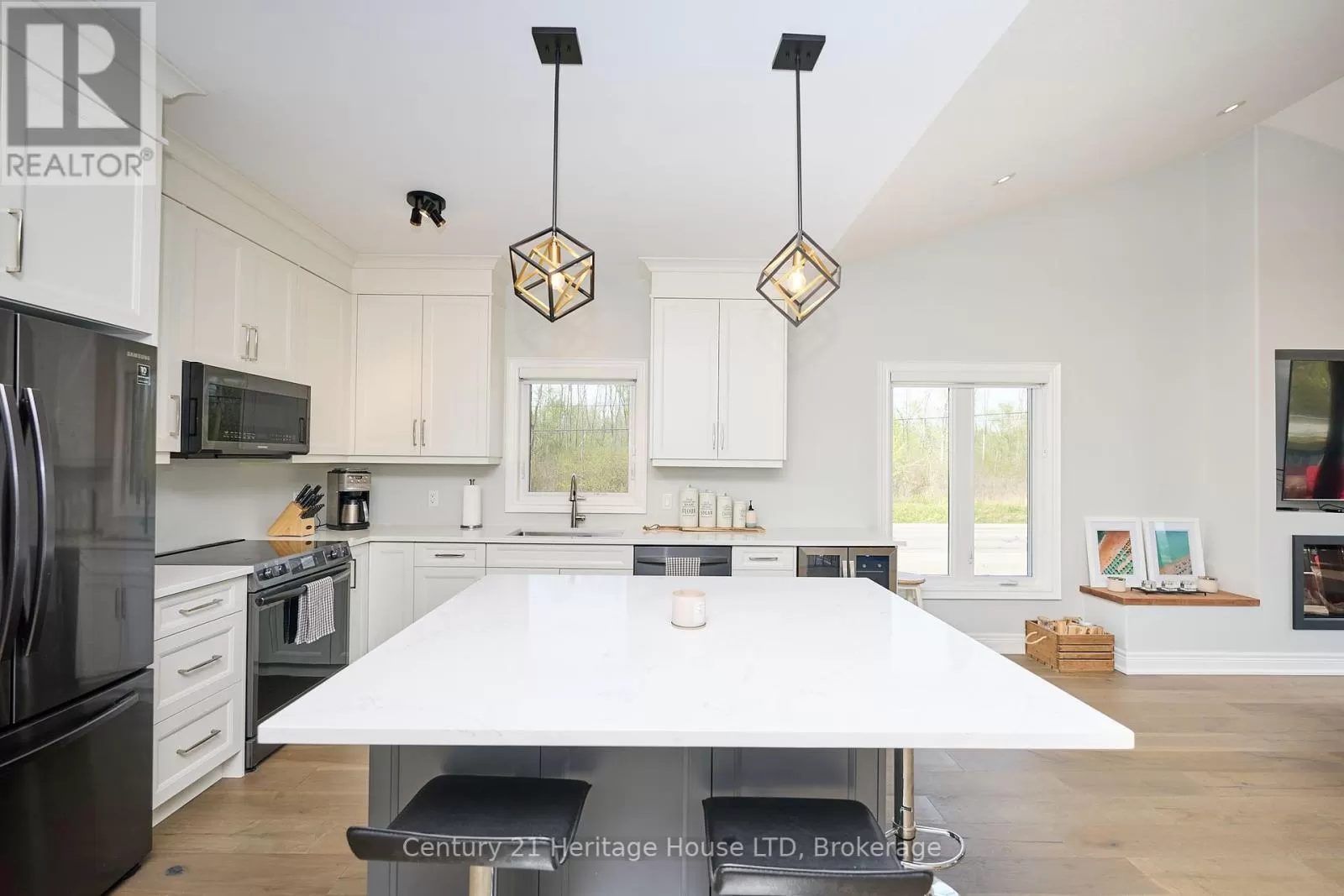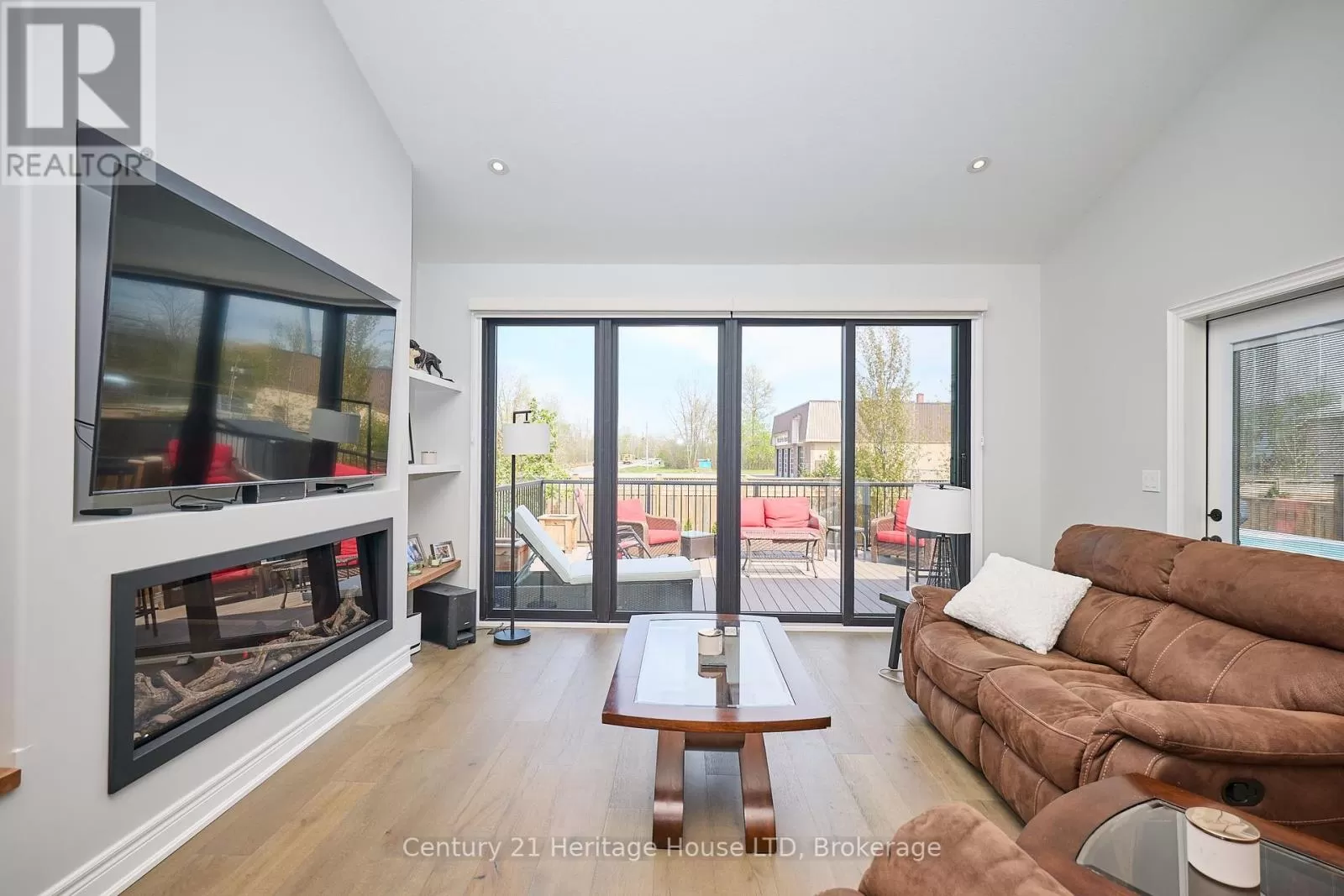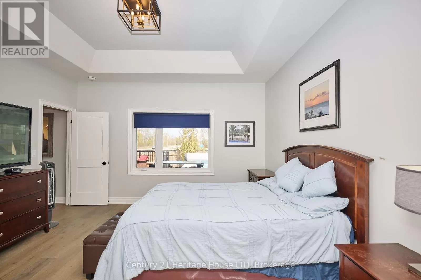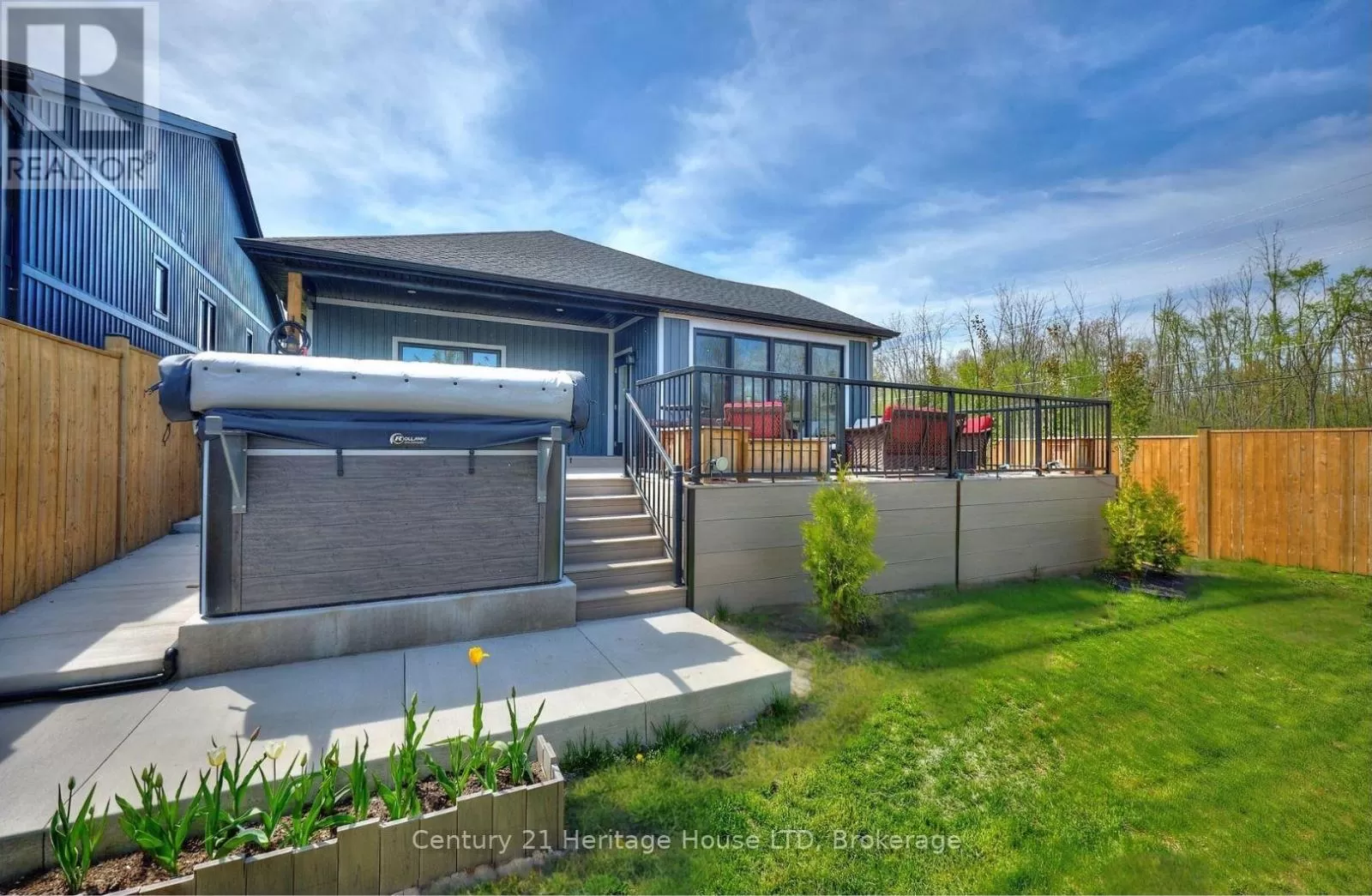 Cross Streets: Dominion Rd & Kraft Rd. ** Directions: From Dominion Rd, head south onto Kettle Court. This thoughtfully customized 1,382 sq. ft. bungalow blends elegance, functionality, and comfort in a quiet Fort Erie cul-de-sac just minutes from the lake and Friendship Trail. From the moment you step inside, you're welcomed by soaring vaulted ceilings in the great room, anchored by a striking feature wall with a built-in fireplace, custom shelving, and a walk-out to the back deck. Floor-to-ceiling windows line the rear wall, flooding the space with natural light and offering tranquil views of the beautifully landscaped backyard. The open-concept kitchen is ideal for both everyday living and entertaining, showcasing stainless steel appliances, quartz countertops, a built-in mini fridge, and ample cupboard space. Walk out to the expansive composite deck - partially covered for rainy days, with an open section for sun lovers. The backyard is fully fenced and includes a 1-year-old large 12-ft hot-water swim spa, garden shed, and armour stone lining the property for added charm. The spacious primary suite features a stunning ensuite bath with a spa-like feel and double vanity, and convenient access to the adjacent laundry area. Flooring throughout is luxury vinyl flooring, and pot lighting enhances the modern, airy atmosphere. The recently renovated lower level offers even more space, with a large rec room, a full bath, and two additional bedrooms - all with egress windows and large closets. A double-car garage and generous driveway complete this exceptional offering. Located minutes from uptown Fort Erie amenities, waterfront trails, and the QEW, this home offers peaceful living without sacrificing convenience. A must-see for those seeking a turnkey property with refined finishes and thoughtful design throughout. See listing agent for a list of improvements completed in 2024. (id:27476)