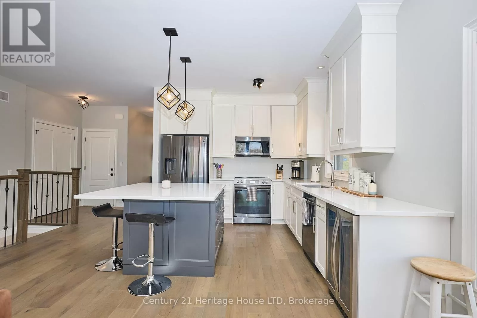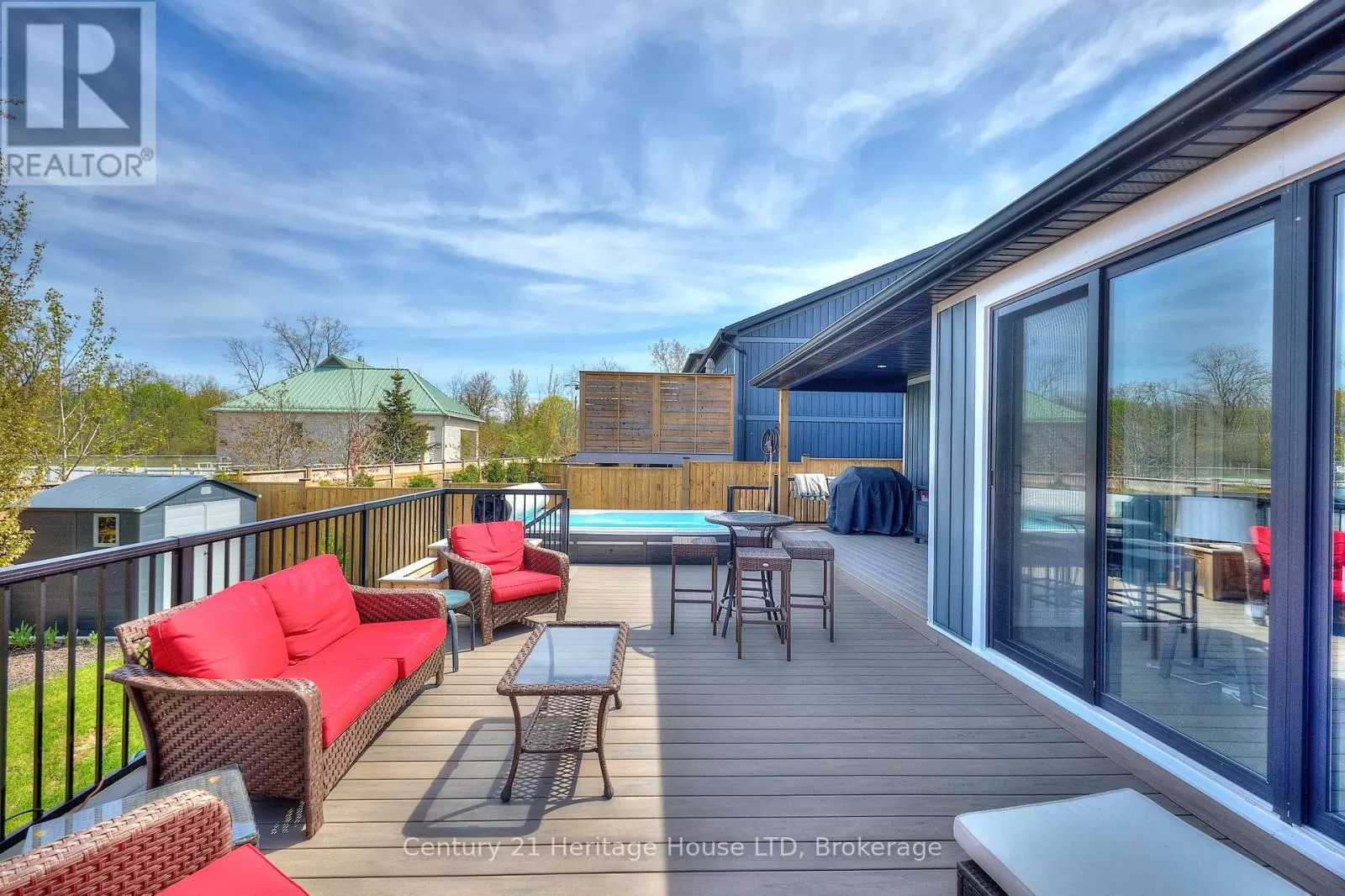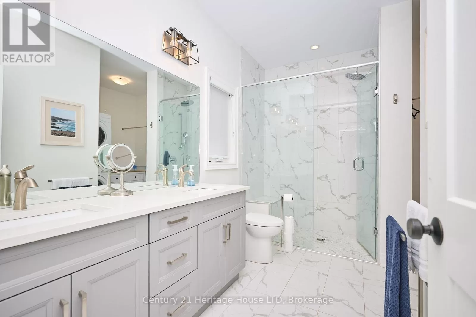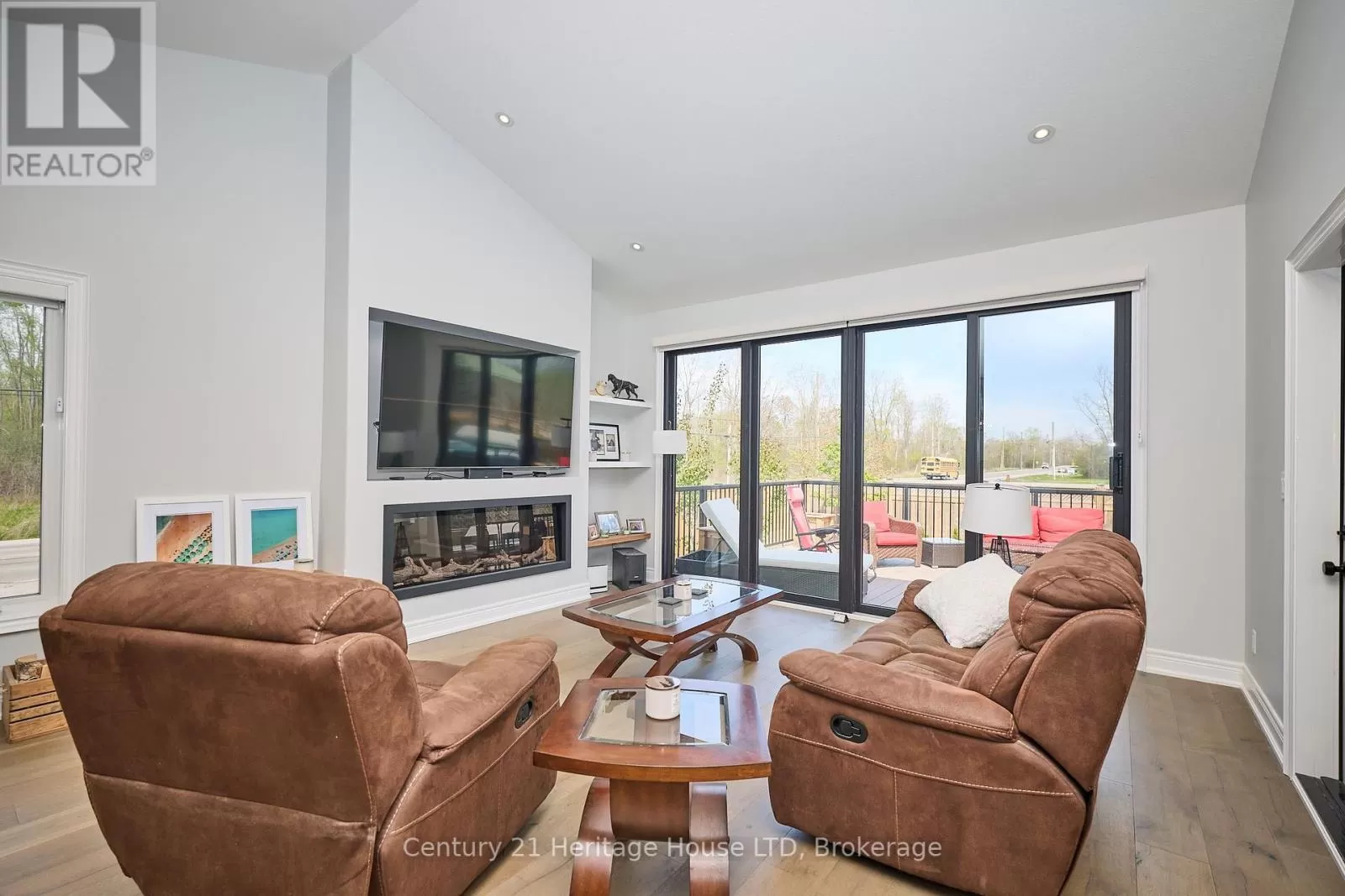 Cross Streets: Dominion Rd & Kraft Rd. ** Directions: From Dominion Rd, head south onto Kettle Court. This thoughtfully customized 1,382 sq. ft. bungalow blends elegance, functionality, and comfort in a quiet Fort Erie cul-de-sac just minutes from the lake and Friendship Trail. From the moment you step inside, you're welcomed by soaring vaulted ceilings in the great room, anchored by a striking feature wall with a built-in fireplace, custom shelving, and a walk-out to the back deck. Floor-to-ceiling windows line the rear wall, flooding the space with natural light and offering tranquil views of the beautifully landscaped backyard. The open-concept kitchen is ideal for both everyday living and entertaining, showcasing stainless steel appliances, quartz countertops, a built-in mini fridge, and ample cupboard space. Walk out to the expansive composite deck - partially covered for rainy days, with an open section for sun lovers. The backyard is fully fenced and includes a 1-year-old large 12-ft hot-water swim spa, garden shed, and armour stone lining the property for added charm. The spacious primary suite features a stunning ensuite bath with a spa-like feel and double vanity, and convenient access to the adjacent laundry area. Flooring throughout is luxury vinyl flooring, and pot lighting enhances the modern, airy atmosphere. The recently renovated lower level offers even more space, with a large rec room, a full bath, and two additional bedrooms - all with egress windows and large closets. A double-car garage and generous driveway complete this exceptional offering. Located minutes from uptown Fort Erie amenities, waterfront trails, and the QEW, this home offers peaceful living without sacrificing convenience. A must-see for those seeking a turnkey property with refined finishes and thoughtful design throughout. See listing agent for a list of improvements completed in 2024. (id:27476)