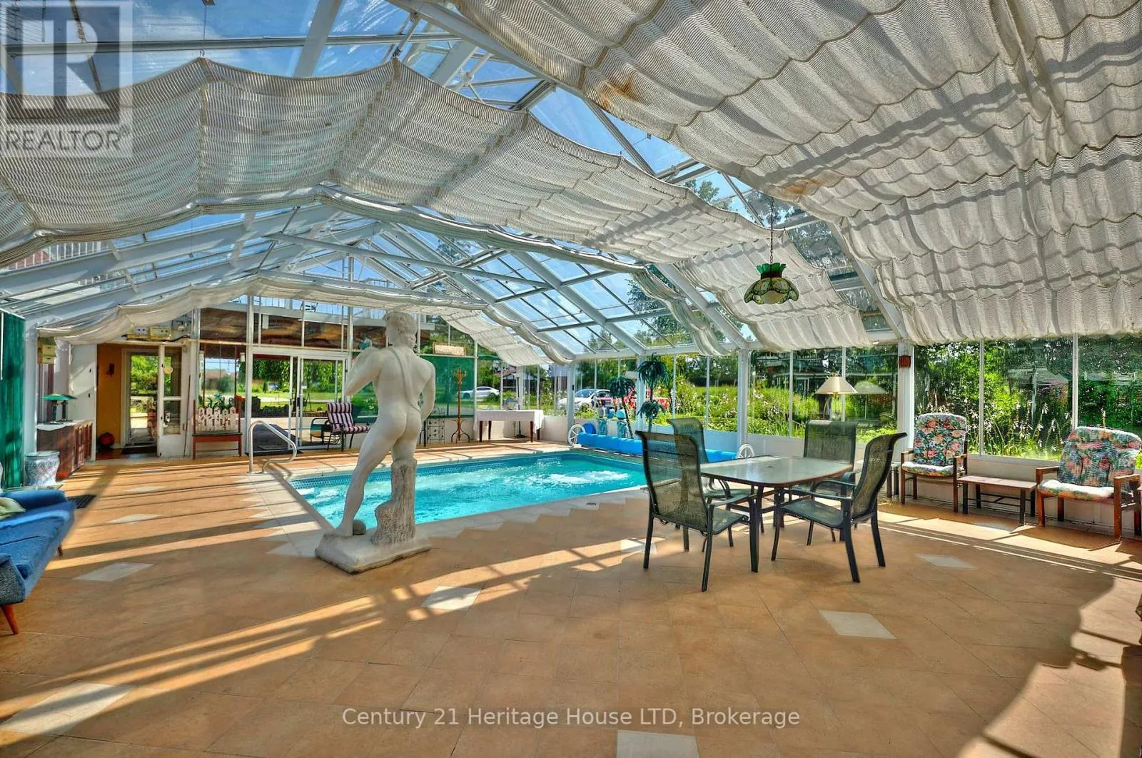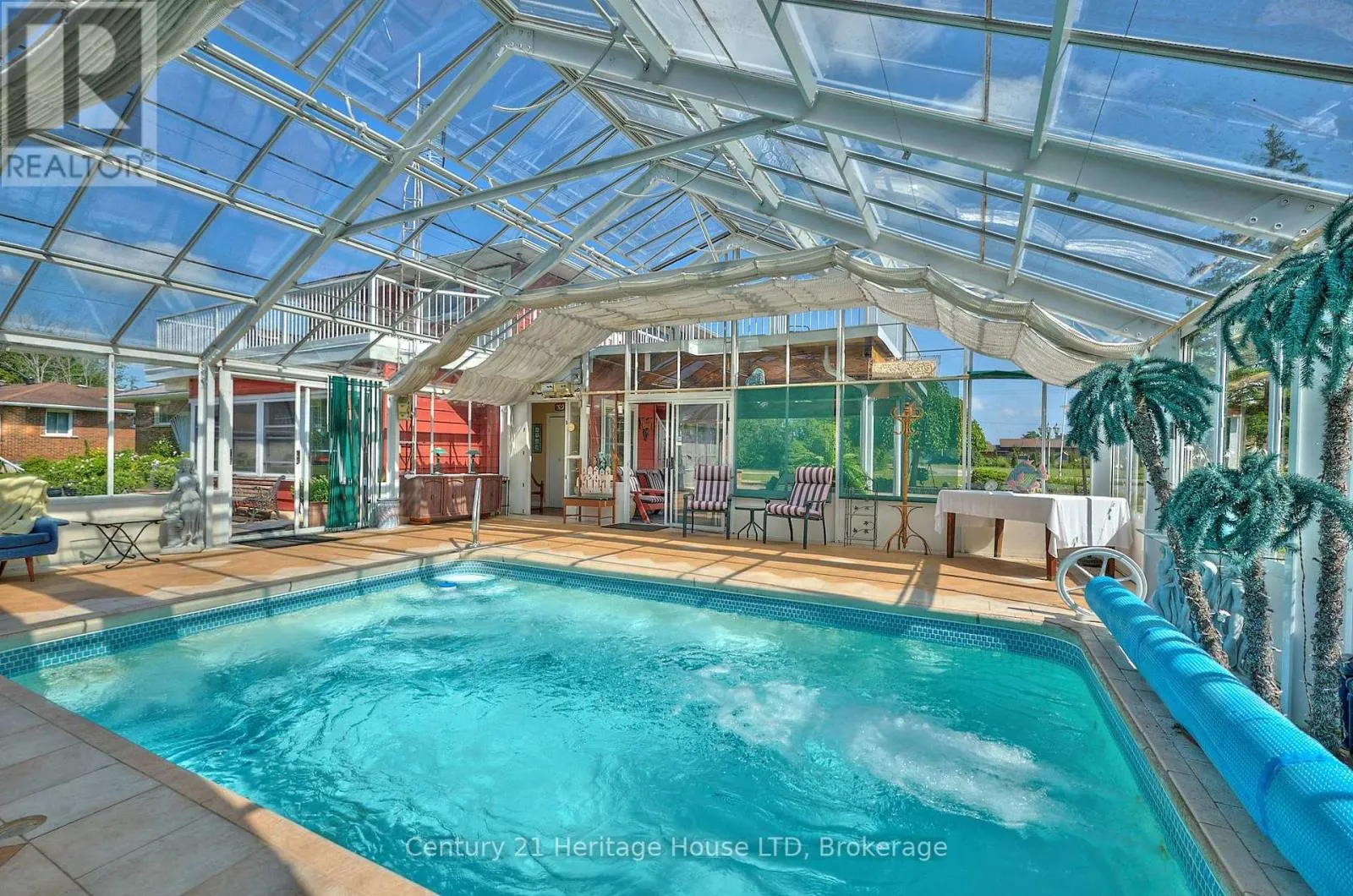 Cross Streets: Niagara River Parkway. ** Directions: Head North on Niagara River Parkway. Turn South on Warwick Avenue to Houck Crescent. Spacious 1.5 Storey Home on Nearly 5 Acres with In-Law Suite & Indoor Pool. Discover exceptional space, flexibility, and location just steps from the scenic Niagara River. This 2,700+ sq. ft. home sits on nearly 5 acres and features a rare, fully equipped upper-level in-law suite ideal for multi-generational living or rental income.The main floor offers a warm, functional layout with a gas fireplace in the living room, formal dining area, granite kitchen, three cedar-lined bedrooms, and a large family room leading to a bright three-season sunroom.The in-law suite includes a spacious living area, eat-in kitchen, generous bedroom, 5-piece bath with laundry hookups, and a massive private balcony. The finished basement includes a rec room with wood-burning fireplace, partial bath, and laundry area. Outside, enjoy resort-style living with your own private indoor concrete pool, oversized patio, and beautifully treed lot.Additional features include hardwood floors, a metal roof, attached 2-car garage, alarm system, back-up generator, and more. Why leave home? This one-of-a-kind property offers the ultimate staycation lifestyle. Don't miss this rare opportunity! (id:27476)