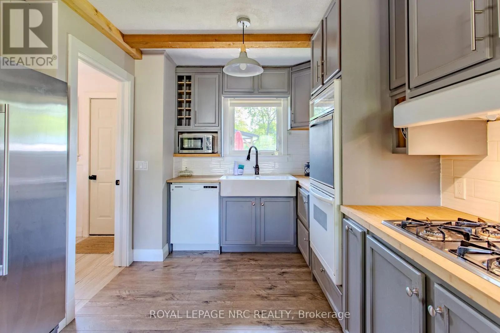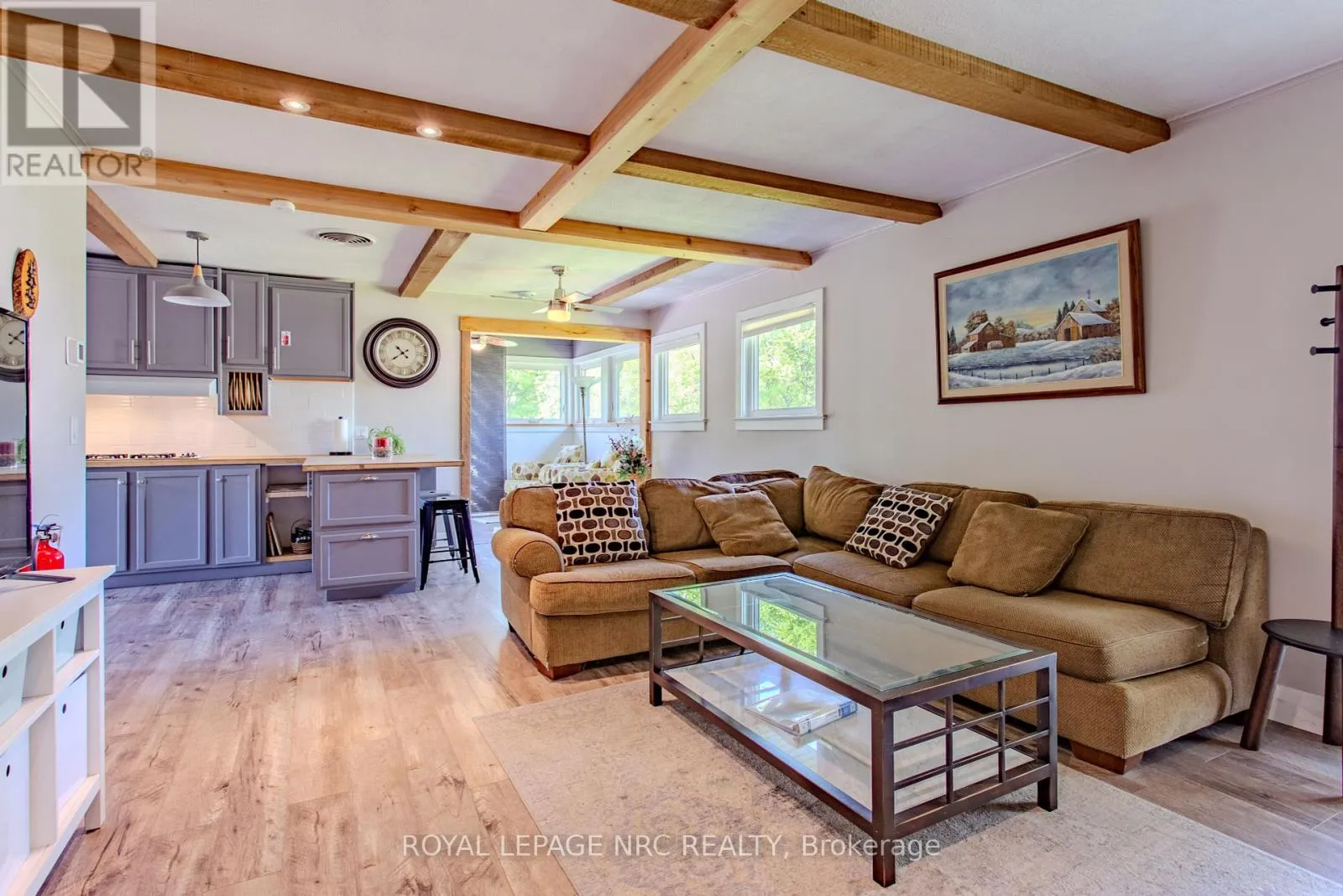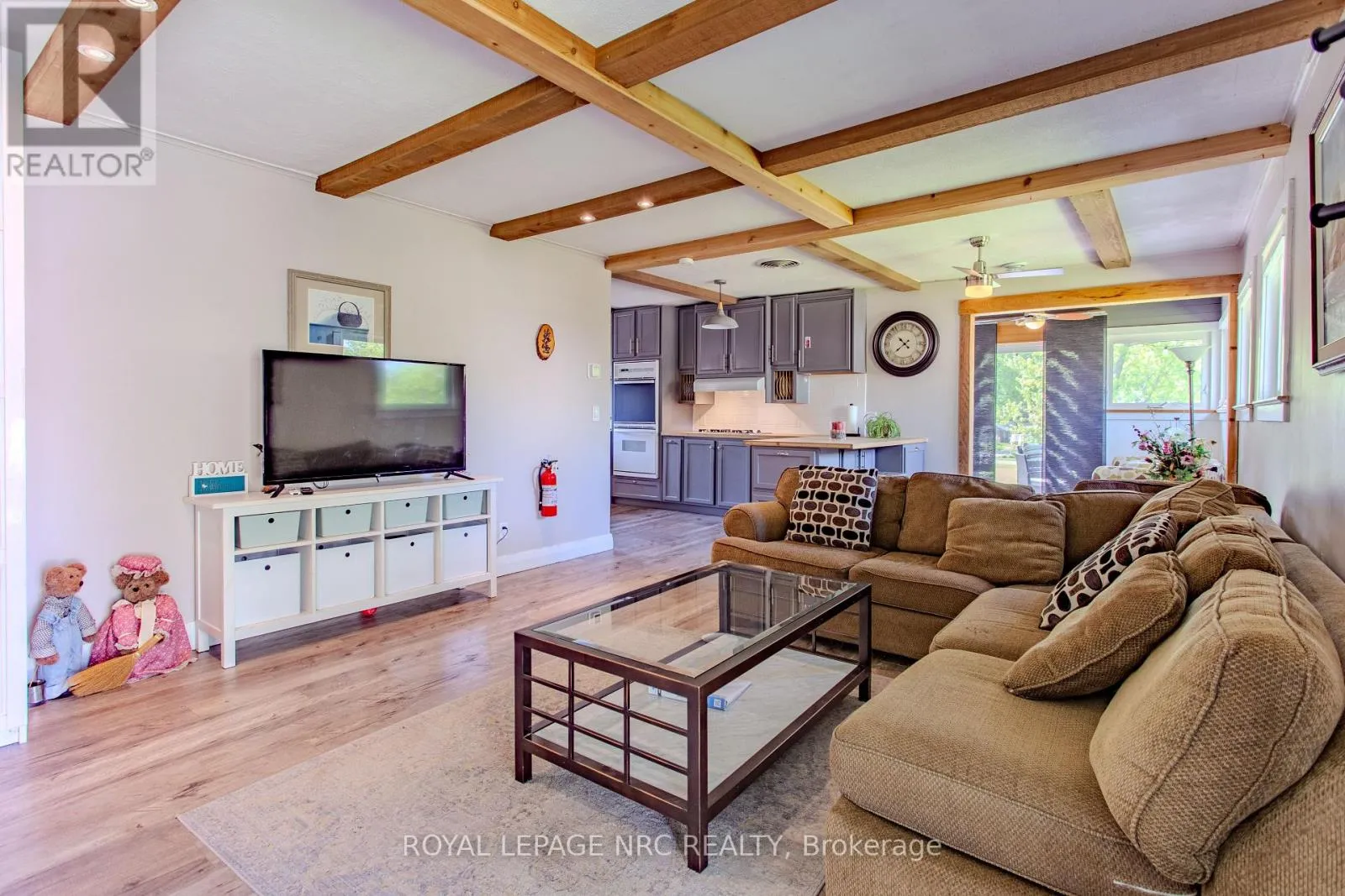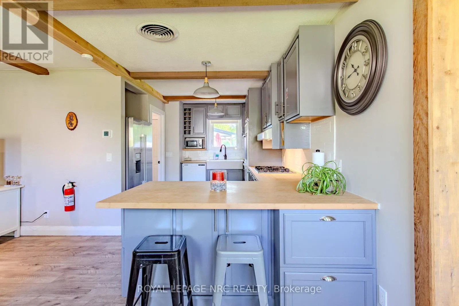 Glenspring Road A Hidden Gem in Crystal Beach! Tucked away on a quiet dead-end street, this rare find offers the perfect blend of privacy and proximity just a short 8-minute stroll to beautiful Bay Beach Park! Set on a sun-soaked 75' x 80' lot with southern exposure, this thoughtfully updated home brings together classic coastal charm and modern convenience. Step inside to an open-concept living space featuring a stylishly updated kitchen with a breakfast bar, three spacious bedrooms, and a refreshed bathroom. Warm cedar beams, pot lighting, updated flooring, and newer windows elevate the home's character throughout. The living area opens to a cozy, south-facing sunroom with original ceilings and a custom 12 patio door that leads to a sprawling 32 x 7 deck ideal for summer entertaining or peaceful mornings with coffee. The exterior features low-maintenance cedar shake siding, newer soffits and fascia, and a handy 9 x 12 shed for all your beach gear. Just a short walk to locally-owned shops, cafes, and restaurants, and a quick drive to historic Ridgeway, Fort Erie amenities, and Niagara Falls. Only 15 minutes to Buffalo and less than 90 minutes to Toronto, this is your chance to enjoy the relaxed, walkable lifestyle of Crystal Beach. Come experience the charm this beachside beauty won't last long! (id:27476)