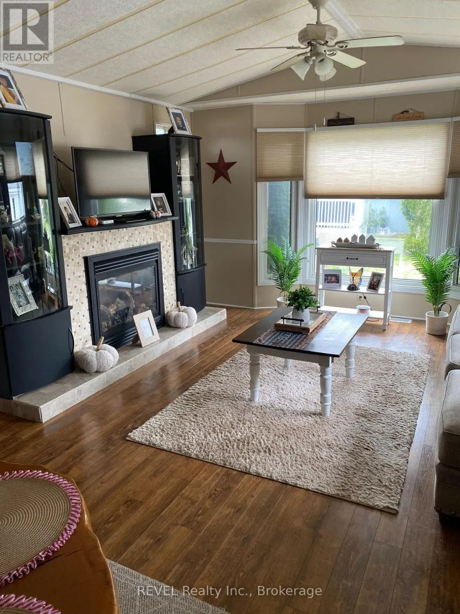 Cross Streets: Netherby. ** Directions: Once inside gate, turn right onto Black Creek Rd, turn left onto Oriole and left onto Marsh. Welcome to 350 Marsh Lane. A rare find with extras which include; large detached (24x20) 2 car garage, triple wide paved driveway, & 2 sheds, (one with electricity) and an extra-large lot with lovely landscaping. Spacious one floor living with two bedrooms, two bathrooms, living room w/fireplace, family room plus large bright 3 season sunroom and main floor laundry. New owned HWT, October 2025. Major rooms freshly painted. 350-3033 Townline Rd located in the Park Bridge Black Creek adult Lifestyle Community where residents enjoy incredible amenities which include clubhouse, indoor & outdoor pools, tennis court, sauna, shuffleboard &woodworking shop. Weekly activities include billiards, darts, yoga, bingo, poker, line dancing and more. This living incorporates independence coupled with convenience and support and located in a serene nature setting with mature trees and meandering creek. Monthly fees $955.44 per month and include land lease and taxes. Quick access to QEW, 12 min to U.S. border. (id:27476)