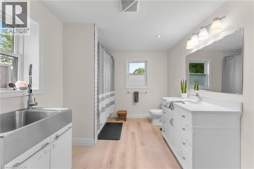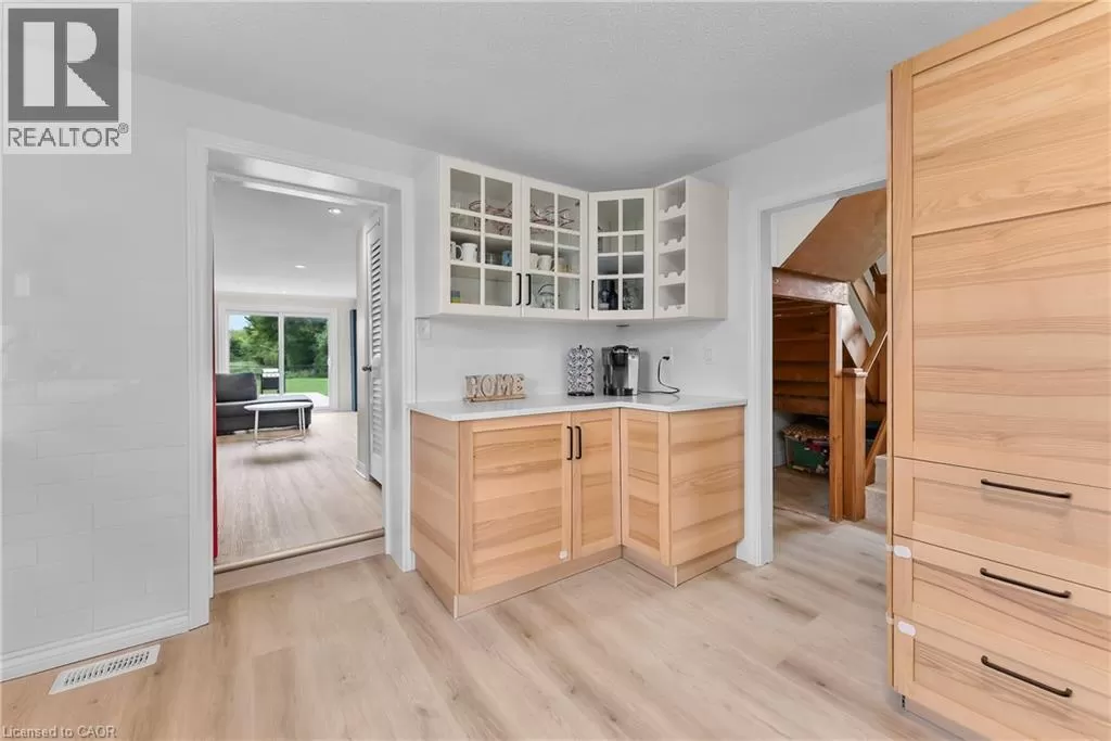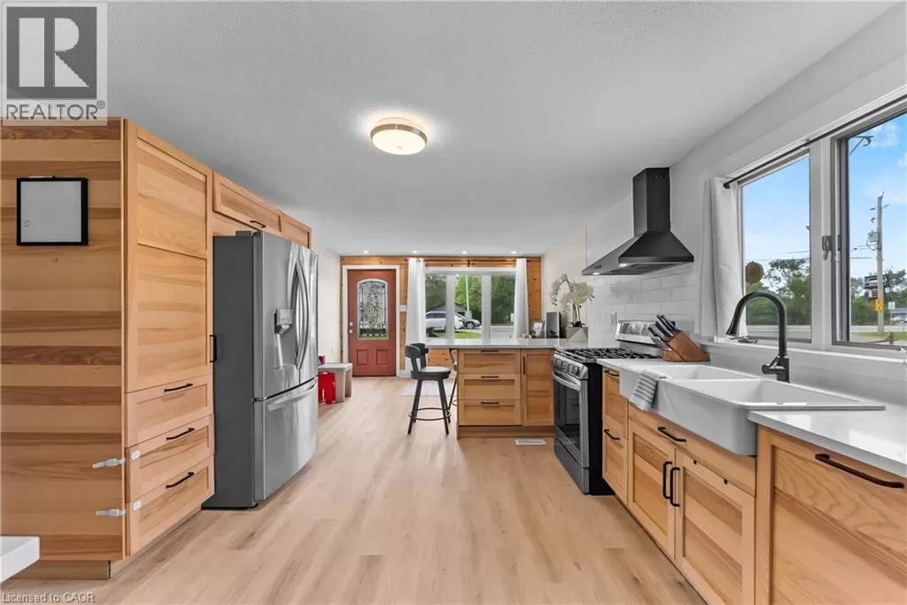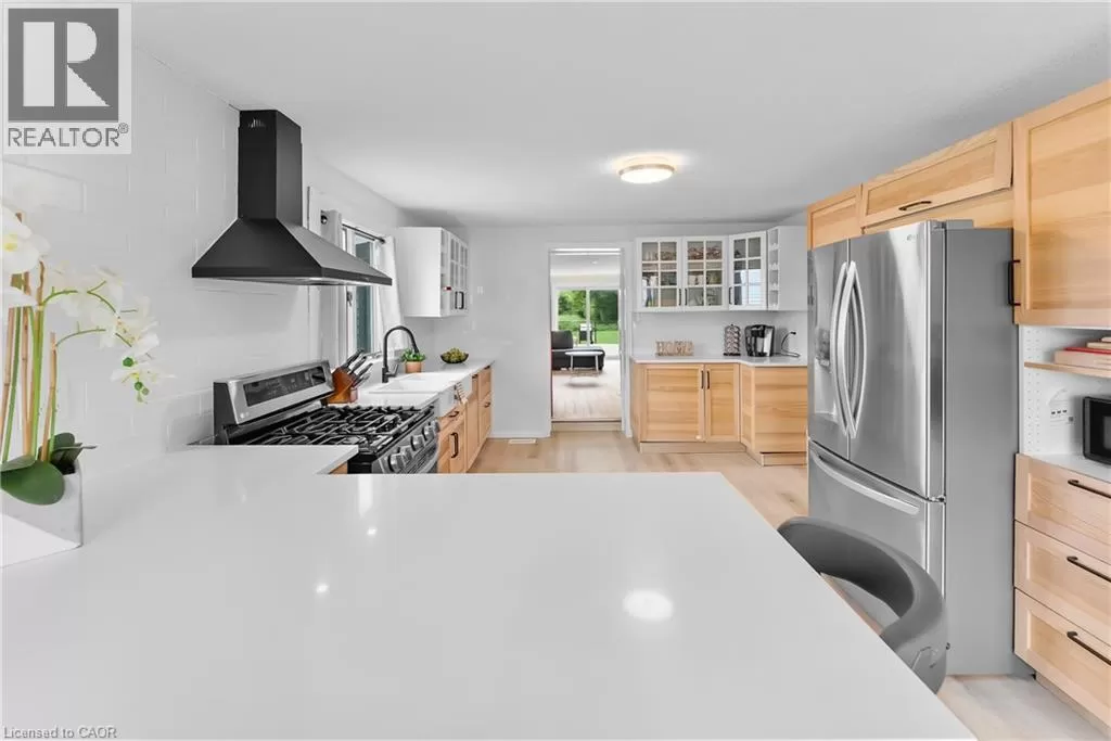 Going North on Stevensville Rd., turn left onto Netherby Rd. If you've been waiting for a home that nails the balance of country calm and modern comfort, stop scrolling. This home has no rear neighbors (just peaceful farmland), a fully fenced backyard with all the space you need to dream big, and a double car garage that's not just a garage... It's insulated, powered, and heated with a wood stove. Basically, it's the ultimate hobby zone, workshop, or hangout. Inside, everything has been redone with style. The kitchen (2022) is loaded with custom cabinetry, granite counters, updated appliances, and a breakfast bar that'll quickly become the heart of the house. The bathroom was refreshed in 2021 and even features the new washer and dryer...smart and functional. Upstairs you'll find 3 cozy bedrooms, all with fresh updates. Fast-forward to 2025: brand new flooring throughout, new baseboards, an updated electrical panel, plus a brand-new furnace, AC, and hot water tank. Translation? You can just move in and live. The best part? You get that out in the country feeling, but you're still only minutes from the QEW and schools. (id:27476)