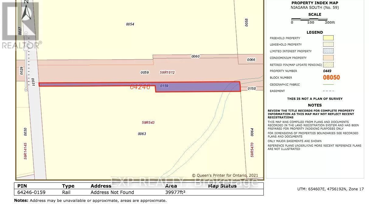 Cross Streets: Burger Rd. / Church Rd. ** Directions: right next to railroad on Burger Rd. Vacant Lot 0.92 Acres in Stevensville / Fort Erie! This 39,977 sq ft (0.92 acre) property is a non-buildable lot, zoned A1 (Agricultural), located at the corner of Church Rd and Burger Rd. Perfect for hobby farming, small-scale agricultural use, or long-term land investment.The property has road access and is conveniently located near Stevensville and Fort Erie, offering a peaceful rural setting while remaining close to major routes. Important: This lot is sold as-is. Prospective buyers are responsible for verifying all information, including permitted uses, zoning, and development potential with the Town of Fort Erie. 39,977 sq ft (0.92 acre) Zoned A1 Agricultural Non-buildable buyer to do due diligence Road access at Church Rd & Burger Rd Minutes from Stevensville, Fort Erie, Niagara Falls, and the QEW. Seller is looking to also sell the adjacent lot across the rail road together (MLS Number: X12399986). (id:27476)