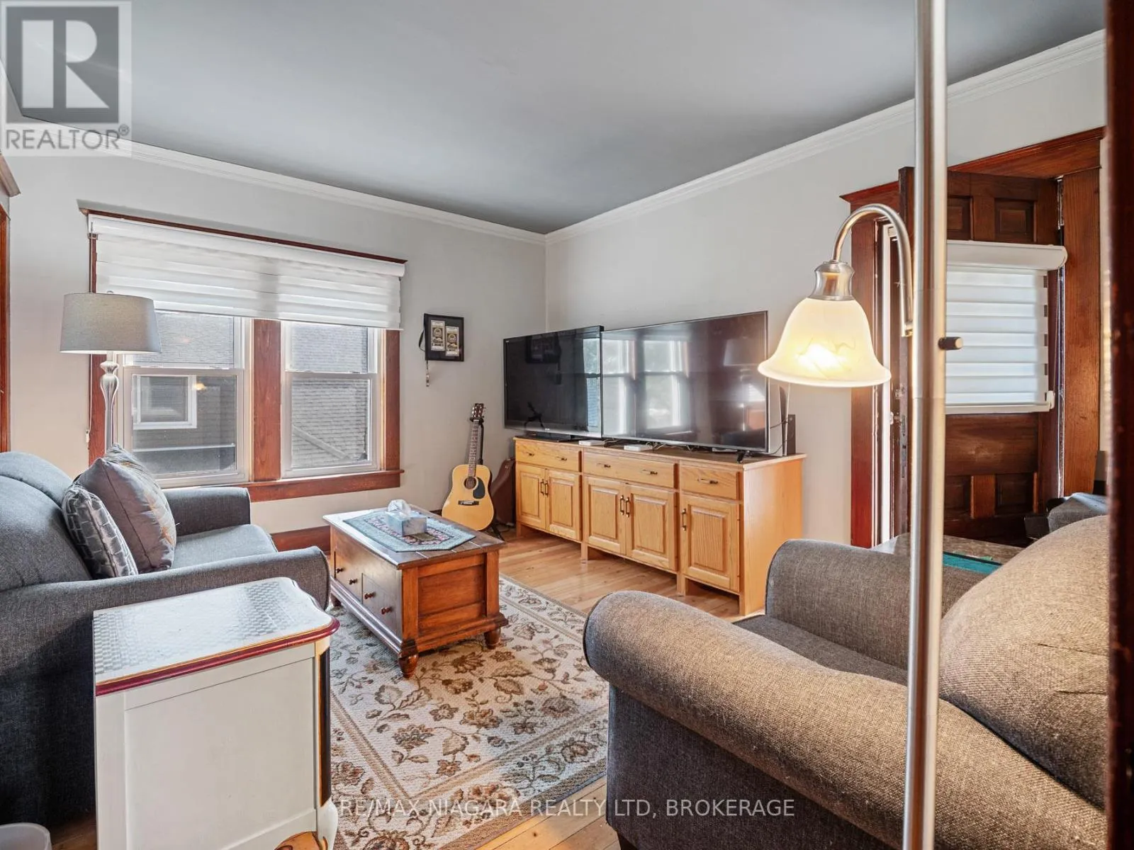 Cross Streets: CENTRAL & EMERICK. ** Directions: Central Avenue to Emerick Avenue. Welcome to a timeless residence rich in tradition and character. This beautifully crafted 2.5-storey stone and brick home sits on a generous lot just steps from the Niagara River, offering a rare blend of elegance, history, and modern comfort. Step inside to discover soaring 9-foot ceilings, gleaming wood floors, and exquisite original wood trim and doors. The inviting living room features a corner gas fireplace with oak surround, while the formal dining room seamlessly connects to both the kitchen and living area. The thoughtfully updated kitchen (2012) boasts granite countertops, crisp white cabinetry, a centre breakfast island, and tiled flooring perfect for everyday living and entertaining. A unique secondary staircase leads to the upper level, where the primary bedroom offers its own private balcony (redone in 2016). The second-floor bathroom was fully remodeled in 2018, complementing three additional spacious bedrooms. The finished third level provides a versatile retreat with skylights, a carpeted recreation room, office area, and ample storage. Outdoors, beautifully landscaped grounds frame a stunning in-ground pool (18' x 38', up to 9.5 ft deep) with a brand-new liner installed in 2023 along with a new heater (2023), creating a private oasis for relaxation and gatherings. A fenced backyard and single detached garage complete the exterior. This meticulously maintained home has seen numerous updates, including a new roof (2016), furnace (2018), re-done driveway (2016), flooring (2014), balcony, windows, and more ensuring peace of mind for years to come. Blending timeless craftsmanship with modern updates, this captivating home is the perfect opportunity to own a piece of Fort Eries charm. (id:27476)