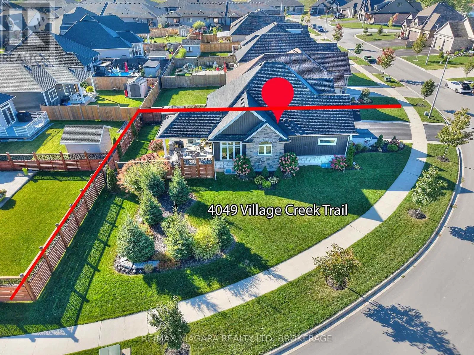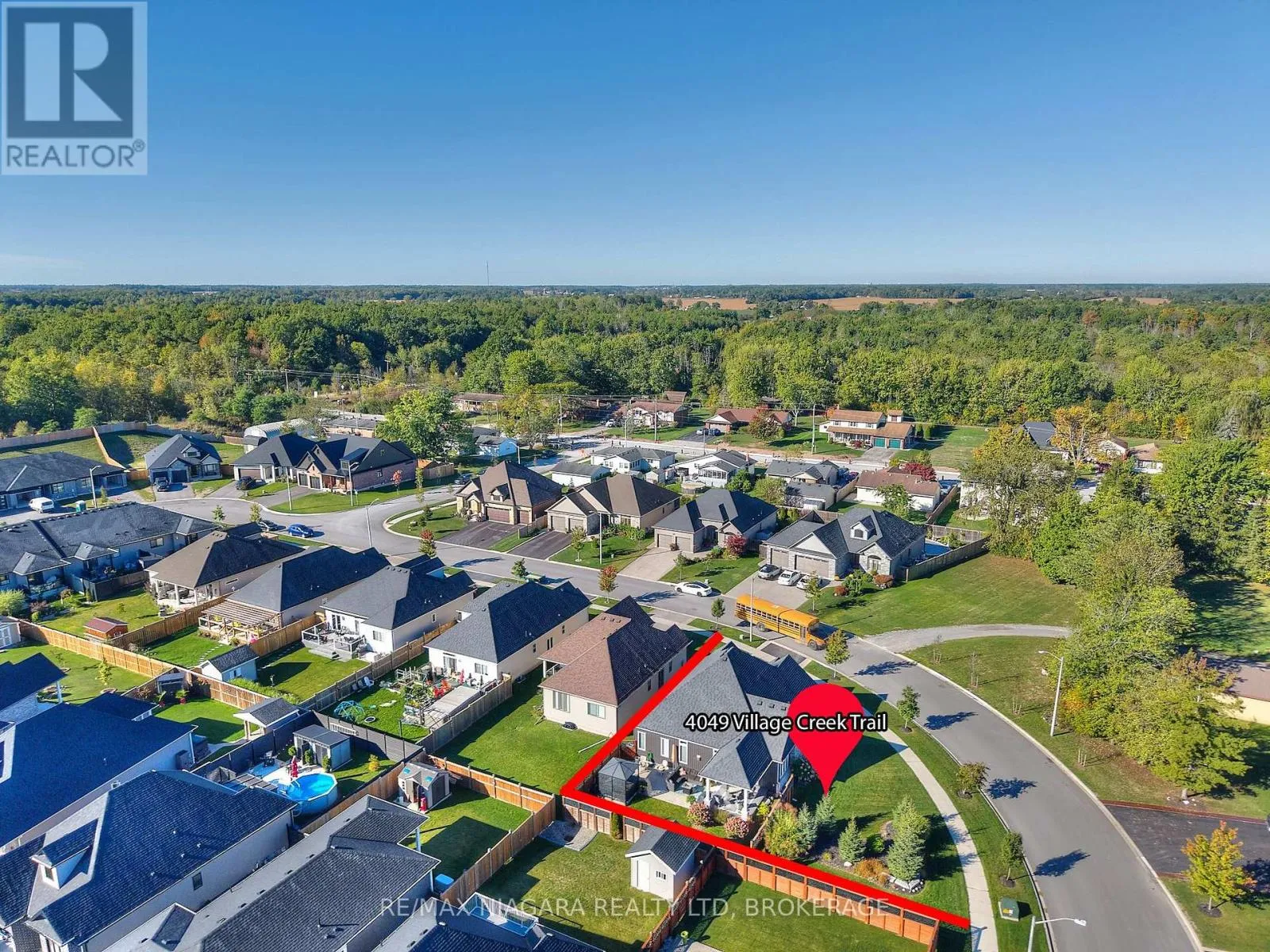 Cross Streets: Old Mill Rd / West Main St. ** Directions: Take West Main Street, turn south on Old Mill Rd and West on Village Creek Dr. Welcome to 4049 Village Creek Trail. This picturesque 7-year-old bungalow is set on a beautifully landscaped corner lot in one of Stevensville's most sought-after communities. This striking home catches the eye with its timeless curb appeal, featuring stone and vertical siding, rich colour contrasts, wood grain textures, and bold front pillars. The lush, rounded lot is surrounded by manicured lawns and perennial gardens, creating a peaceful, private retreat. Step into the backyard and discover multiple areas designed for relaxation and entertaining, including a 15' x 11' covered concrete deck, a spacious 26'6" x 13' concrete patio, and a 6-seat hot tub with a gazebo perfect for enjoying warm summer nights or crisp fall evenings. Inside the open-concept great room is bright and inviting, featuring engineered hardwood floors, vaulted ceilings, quartz countertops, and a gas fireplace with an elegant surround. The kitchen includes a centre island with breakfast bar seating, stainless steel appliances, and sliding doors leading directly to the back deck. The main floor features a primary bedroom complete with a walk-in closet and 4-piece ensuite, plus a second bedroom with ensuite privilege to the main 3-piece bath. The finished basement expands the living space with a cozy recroom, a third bedroom, a 3-piece bathroom, a functional office area, plus plenty of room for storage. Ideally located just a short walk from Stevensville Mini Park and the Conservation Club, where you can enjoy walking trails, nature views, and fishing. This home is a true balance of comfort, style, and nature. Whether you're relaxing indoors or entertaining outdoors, 4049 Village Creek Trail offers the lifestyle you've been waiting for. (id:27476)