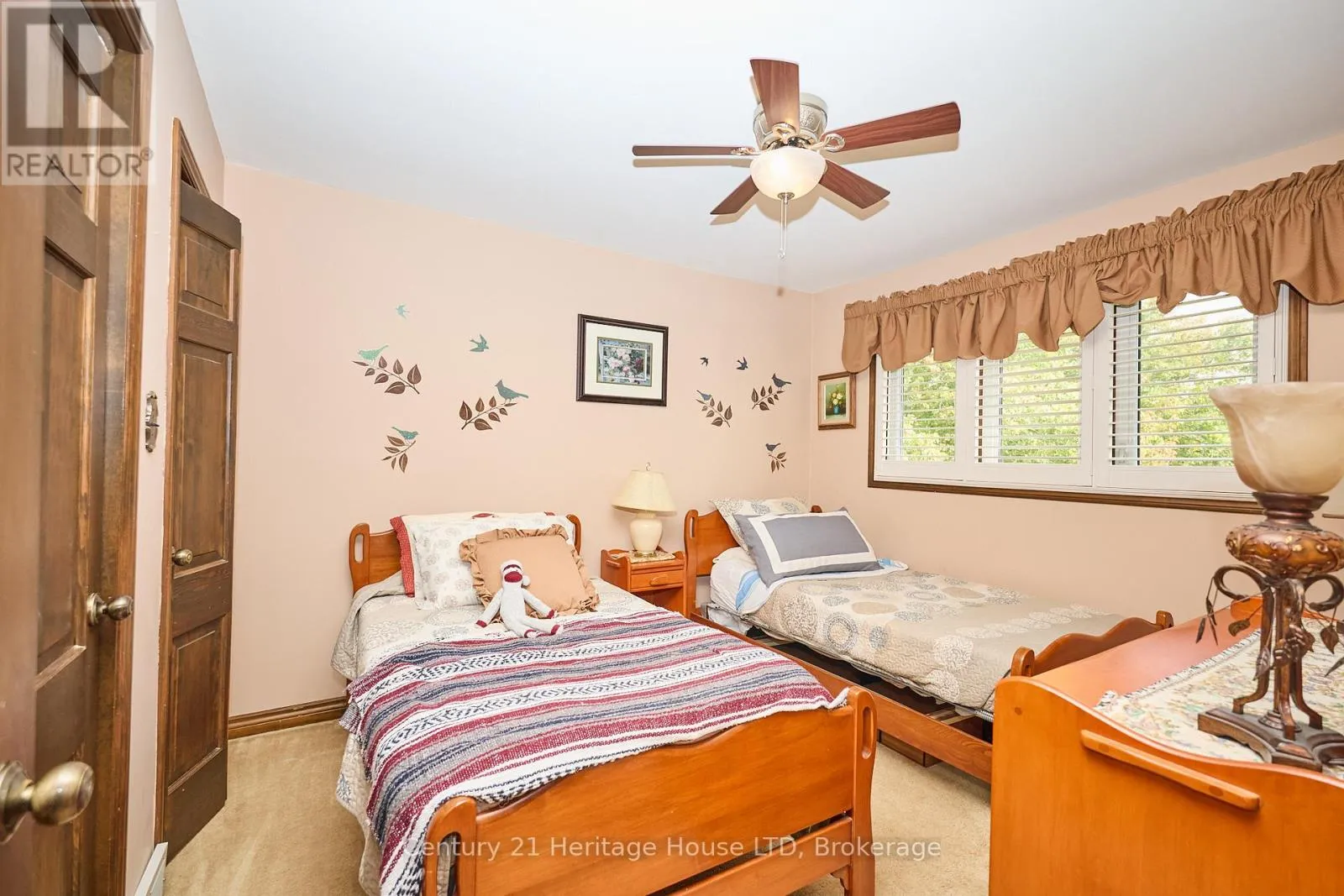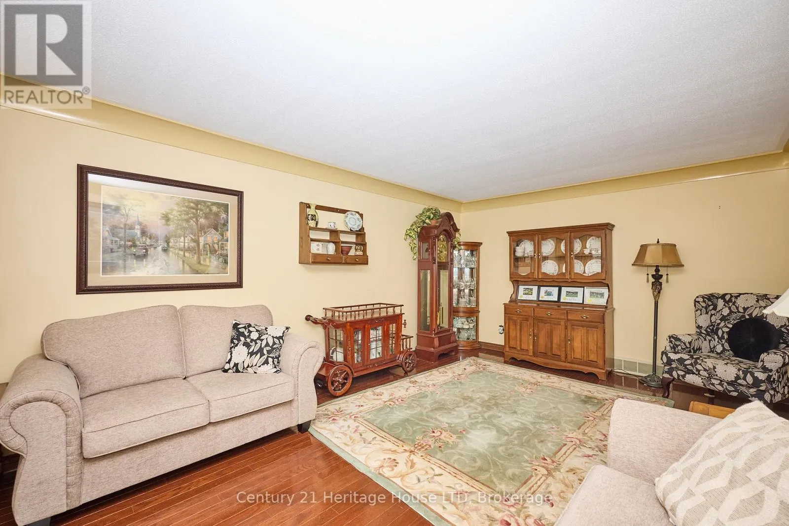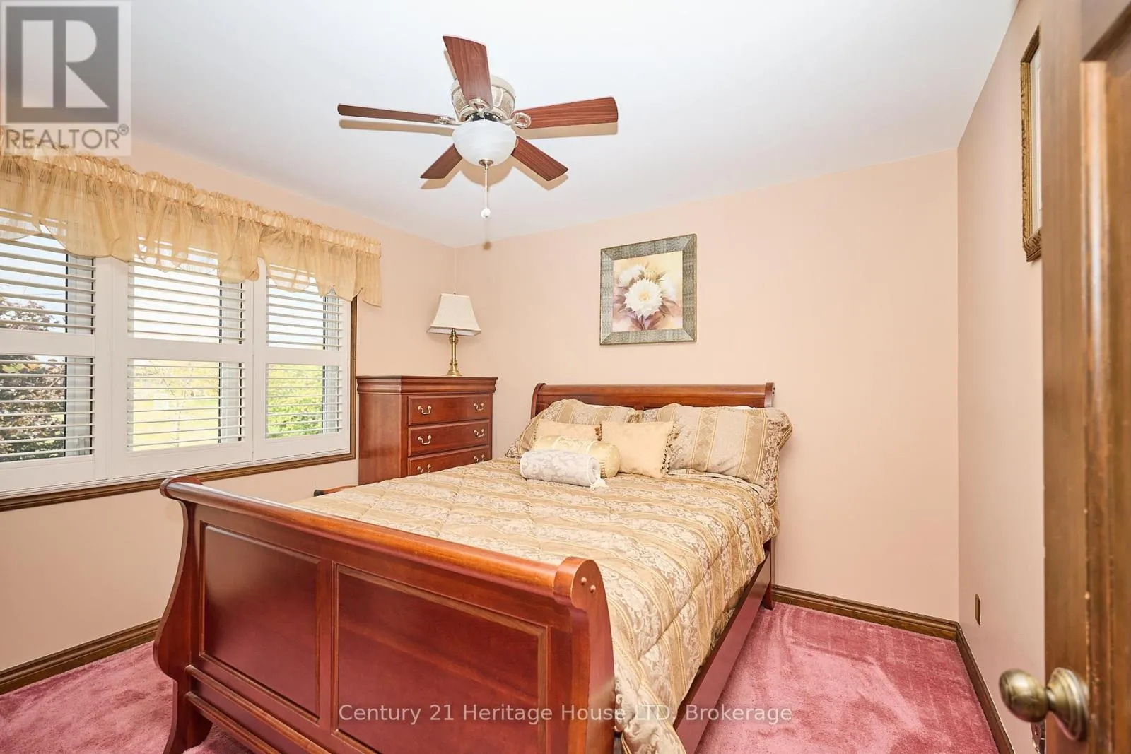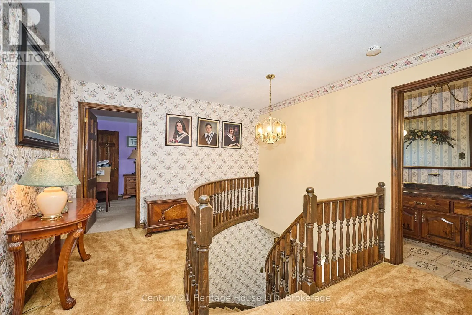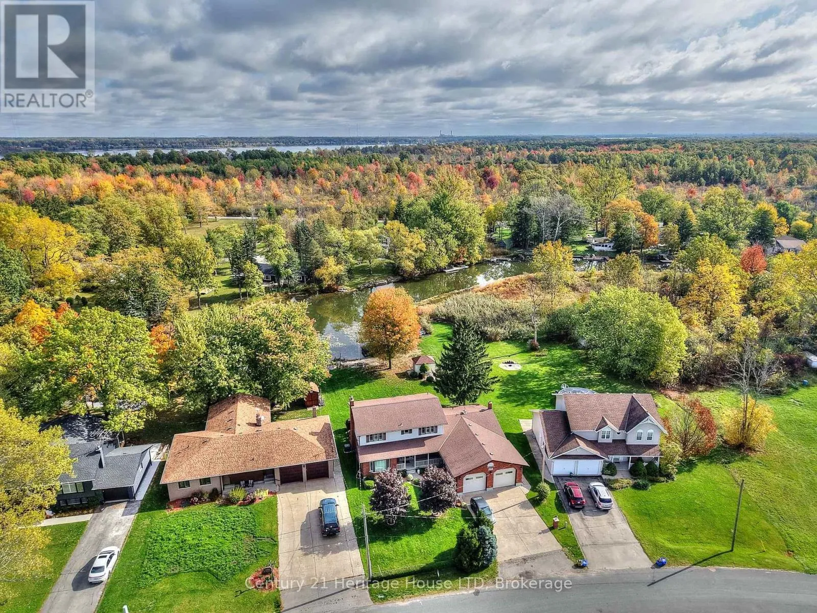 Cross Streets: Baker Road. ** Directions: North on Netherby Road. East on Baker Road then South on River Trail. Discover the charm of creekside living in this spacious 4-bedroom, 4-bath, 2-storey home nestled along the scenic Black Creek. A welcoming covered front porch leads into a bright foyer with a curved staircase to the upper level. The main floor features gleaming hardwood floors, wood doors throughout, and stylish California shutters. The family room offers a cozy gas fireplace and sliding doors to the large rear deck perfect for relaxing or entertaining. Enjoy a formal living room and dining room for gatherings, and a bright eat-in kitchen with plenty of cabinetry and hard-surface counters. A main-floor laundry room and 2-piece bath add everyday convenience. Upstairs, the primary suite includes a 3-piece ensuite and walk-in closet. Three additional bedrooms each offer double closets and share a spacious 5-piece bath with double vanity. The finished lower level provides even more living space with a recreation room, 3-piece bath, workshop, and a second walk-out. Additional features include an updated roof, windows, furnace, and A/C; a concrete driveway; and an attached 4-car garage (double wide and double deep) with walk-out access and gas powered heater in the main garage. Outside, enjoy a shed by the creek and a private U-shaped dock/deck ideal for your morning coffee, evening chats, or docking your boat. This rare property offers the perfect blend of comfort, space, and creekfront tranquility! (id:27476)