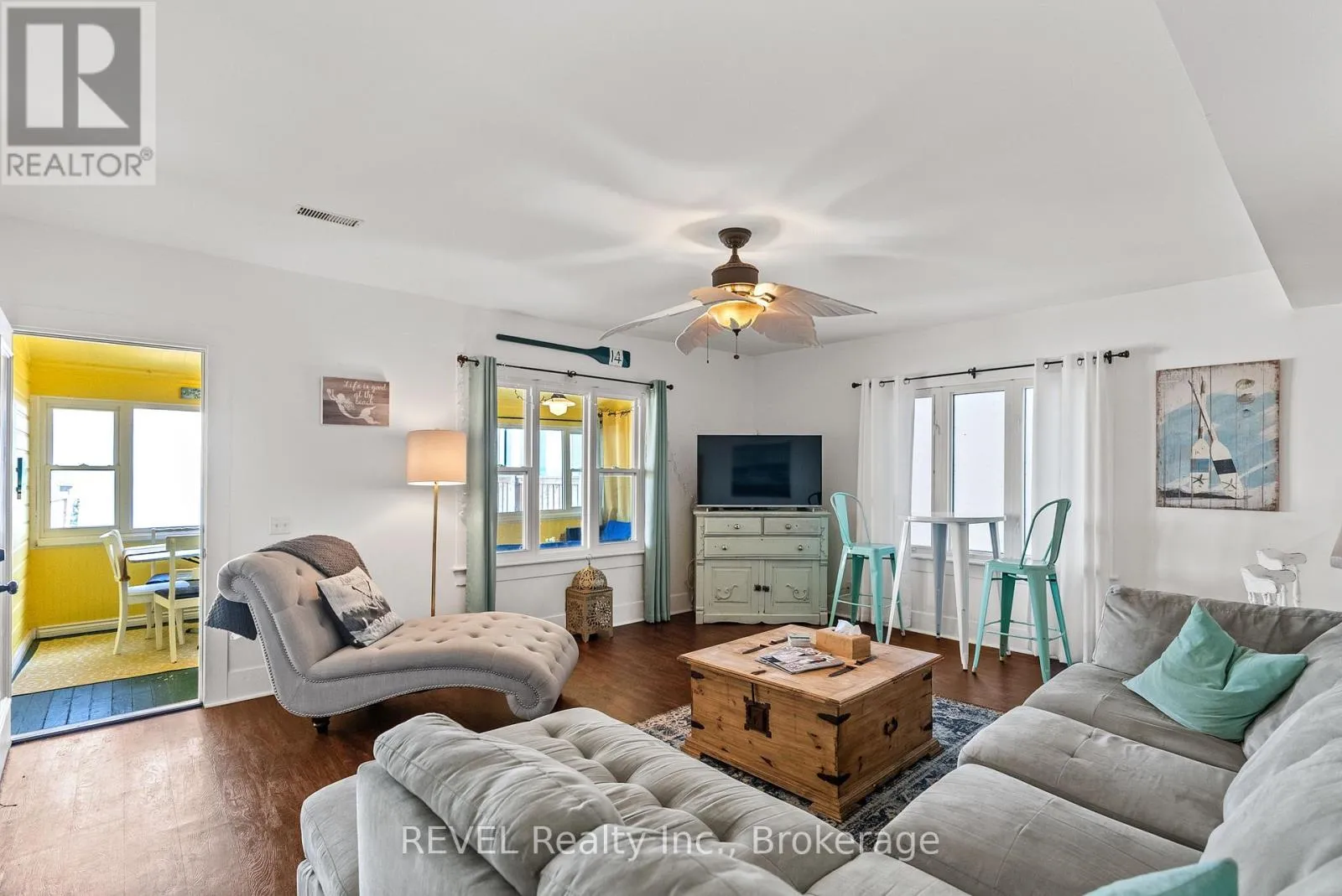 Cross Streets: Ridgeway Road. ** Directions: From Ridgeway Road, turn left onto Terrace Lane. This charming 2-bedroom, 2-bathroom home offers a rare opportunity to own a low-maintenance waterfront retreat with stunning views of Lake Erie. Light-filled and full of coastal charm, it features a breezy sunroom that opens onto a spacious back deck, perfect for relaxing or entertaining with the sound of the waves in the background.Enjoy peace of mind with recent updates including insulation (2018), windows (2019), and A/C (2020). Located right by The Waterfront Park, you're just steps away from the Crystal Beach Supper Market, where you can grab a bite or sip a cold drink once a week throughout the summer while enjoying live music and mingling with locals. Its a great way to submerge yourself in the Crystal Beach community. Whether you're paddle boarding at sunrise, lounging lakeside, or strolling to the village core filled with shops and restaurants, this home offers the perfect mix of comfort, convenience, and coastal living. Even in the winters are special here! When the lake freezes, the shoreline comes alive with skating, snowmobiles, ATVs, and community gatherings right on the ice. Ideal as a weekend getaway, year-round residence, or turn-key Airbnb investment property. Lake life in Crystal Beach is truly magical, in every season. Book your showing today! (id:27476)